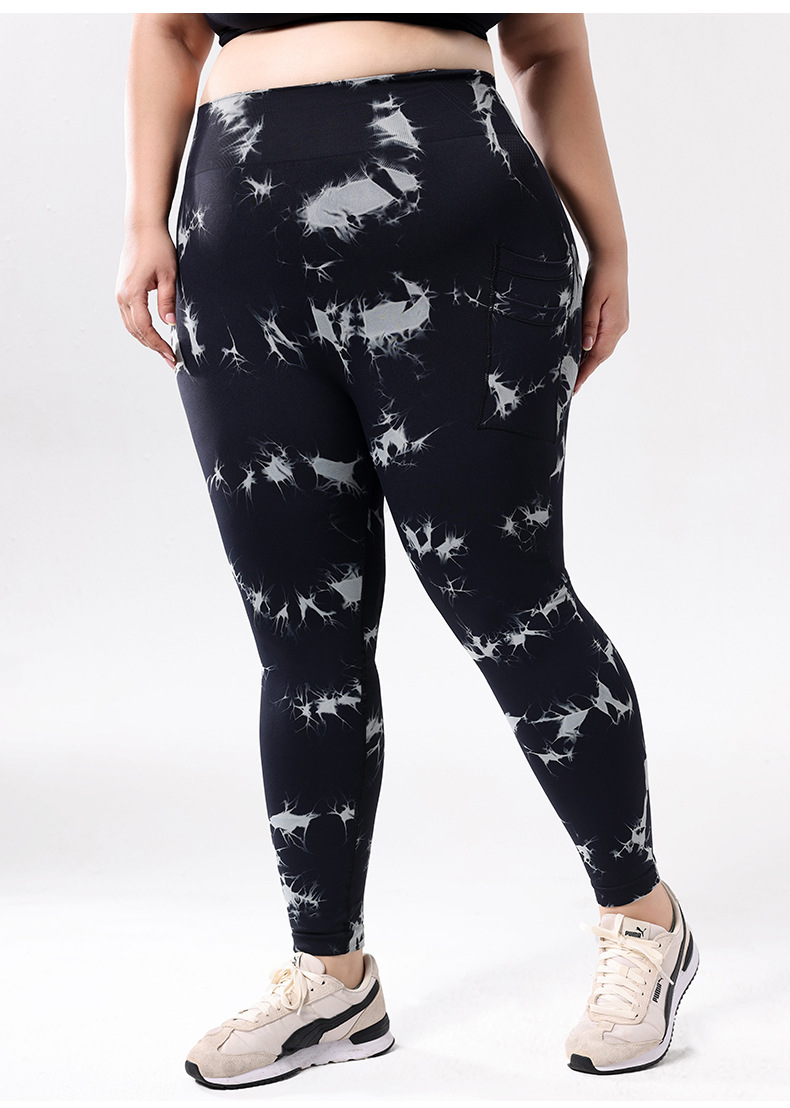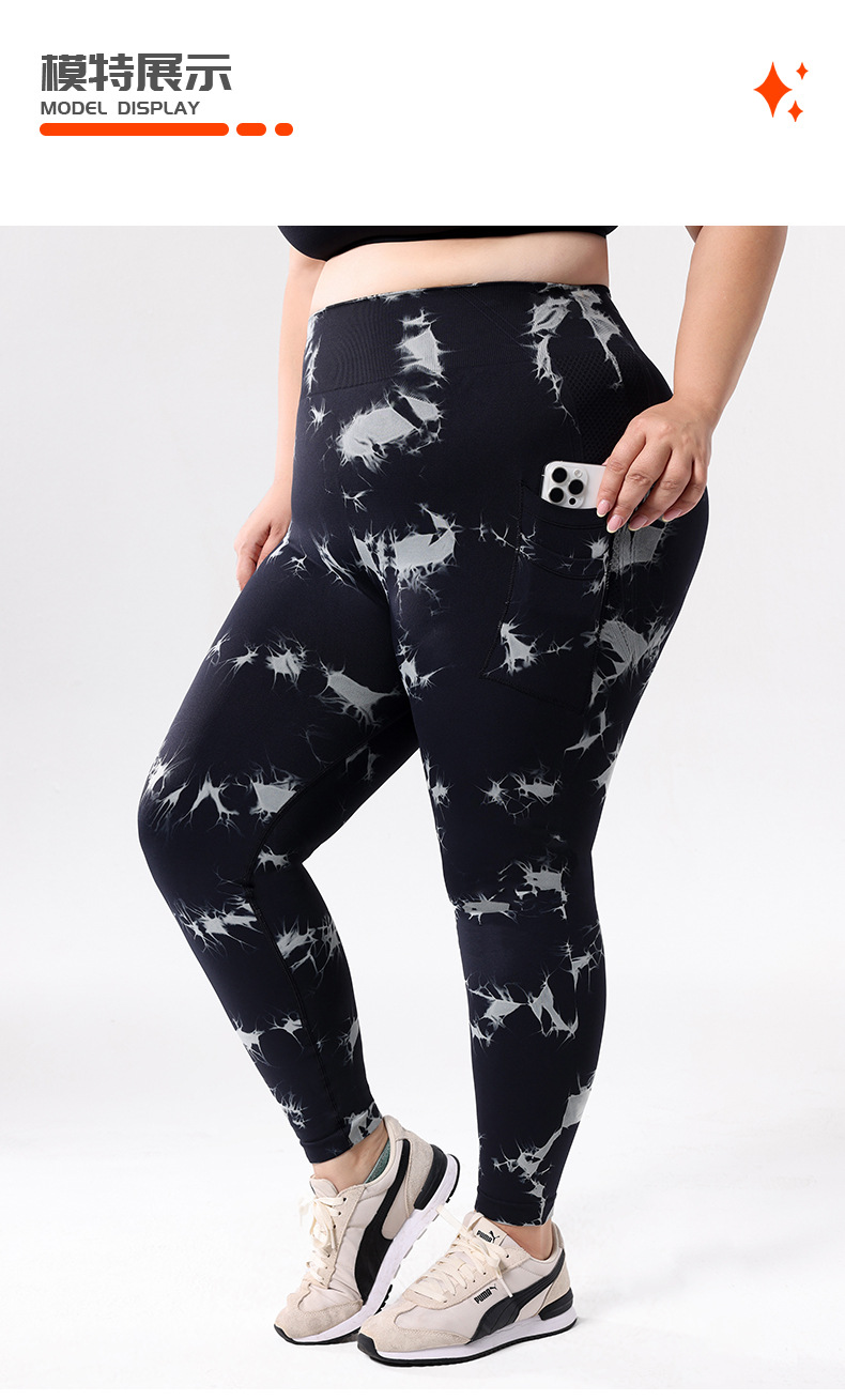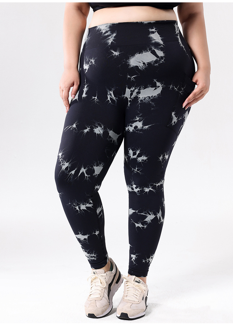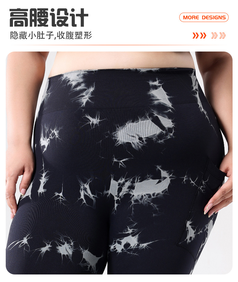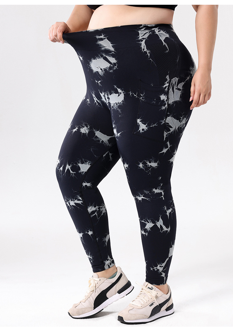 Europa y los Estados Unidos de tamaño grande con bolsillo atado, teñido, pantalones de calzada de cintura alta, leggings deportivas, pantalones de compresión para correr