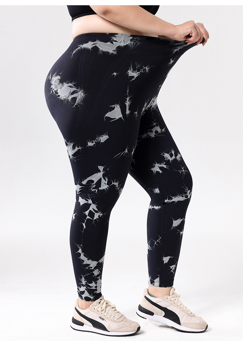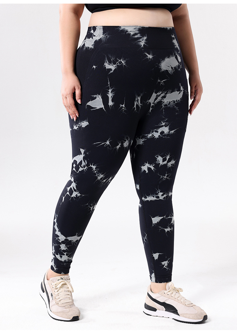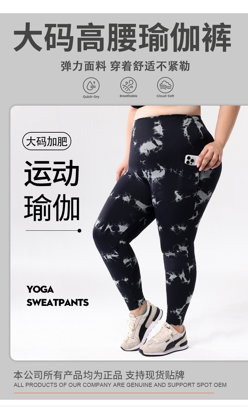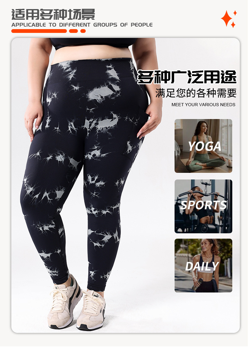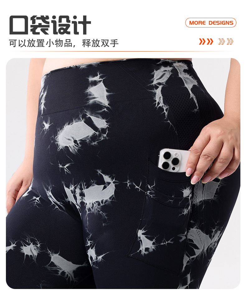 Europa y los Estados Unidos de tamaño grande con bolsillo atado, teñido, pantalones de calzada de cintura alta, leggings deportivas, pantalones de compresión para correr