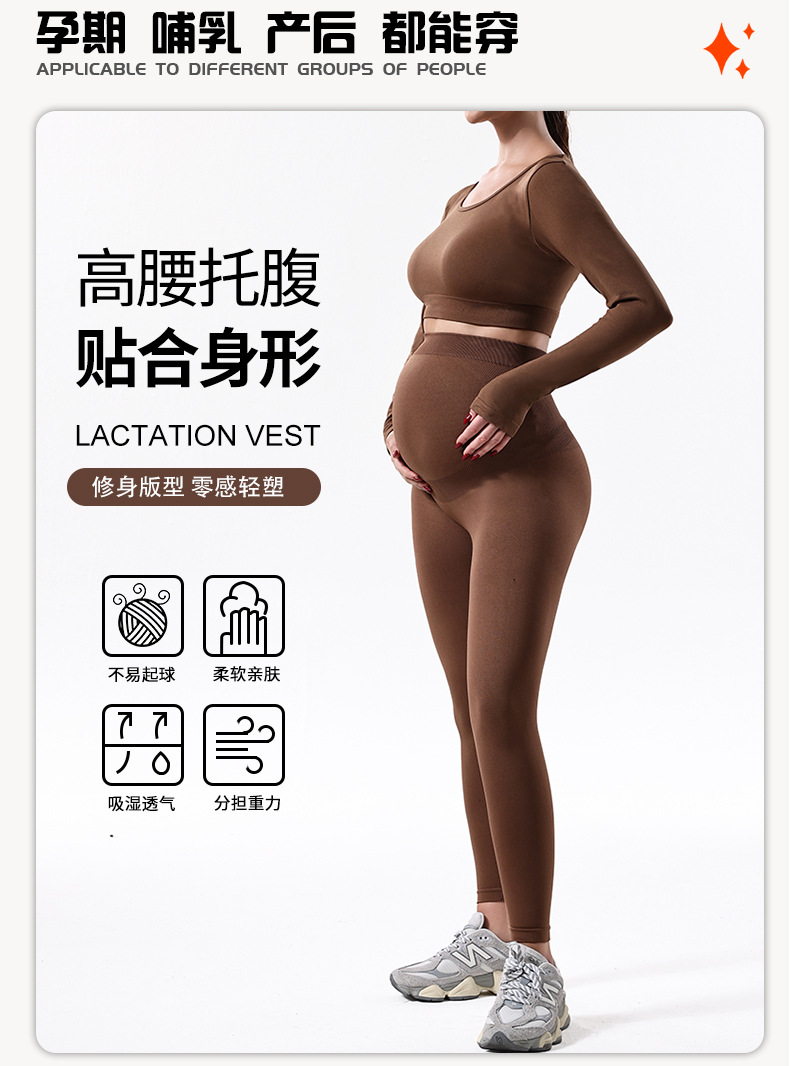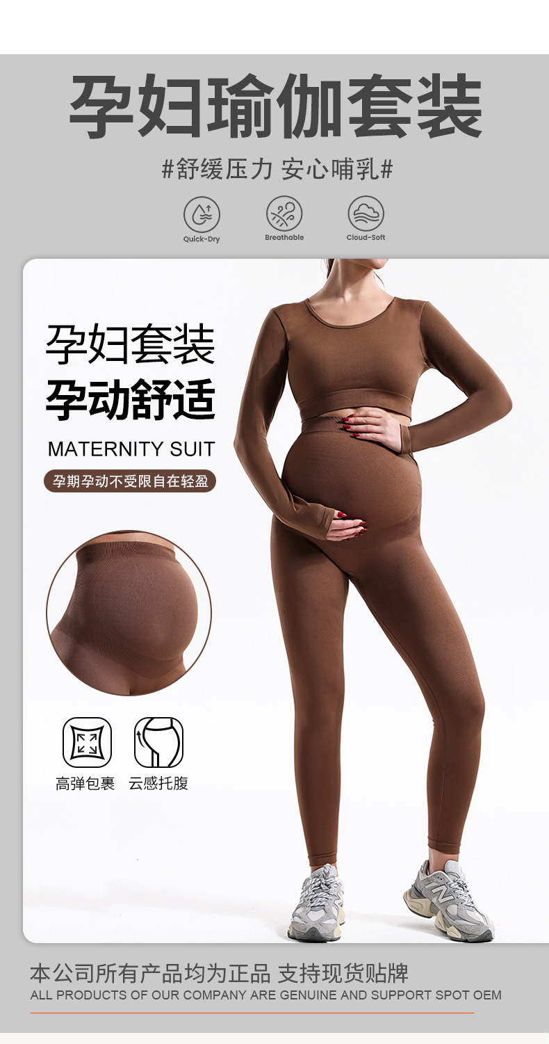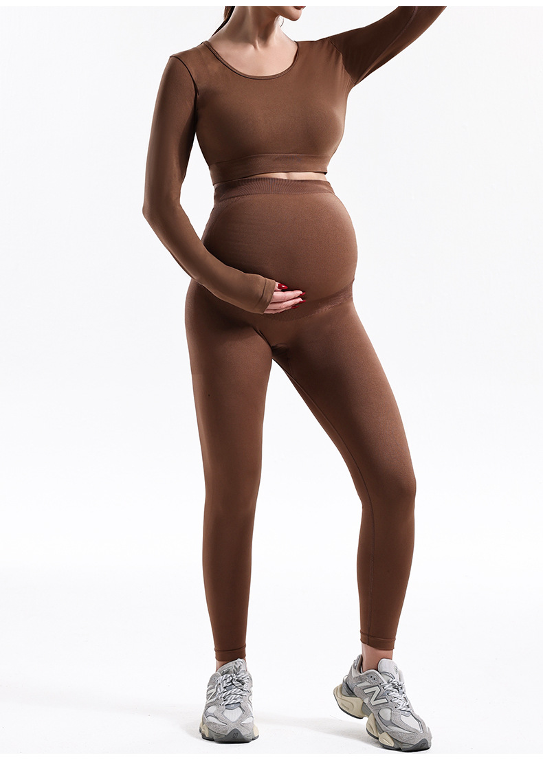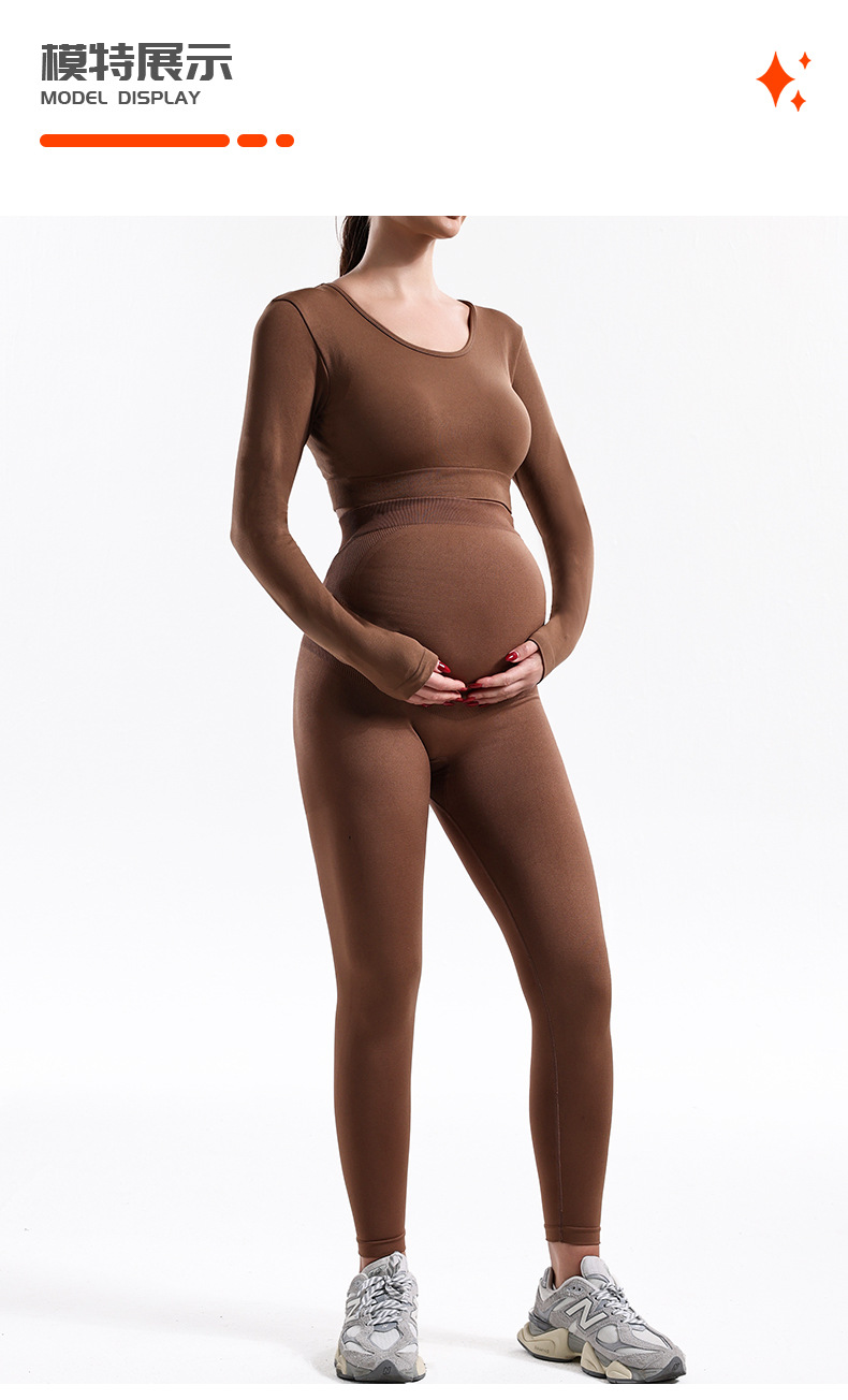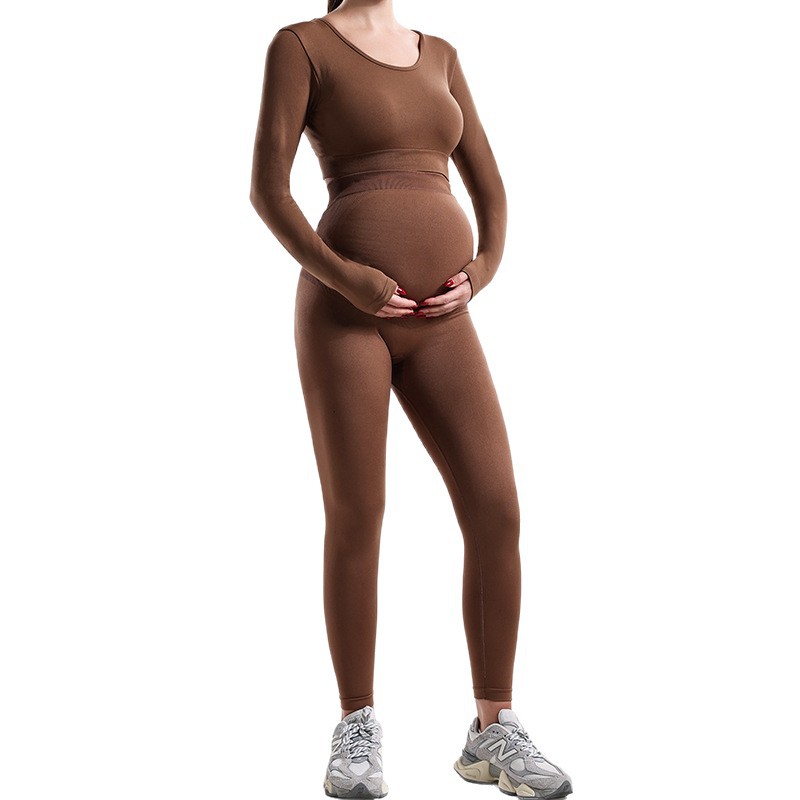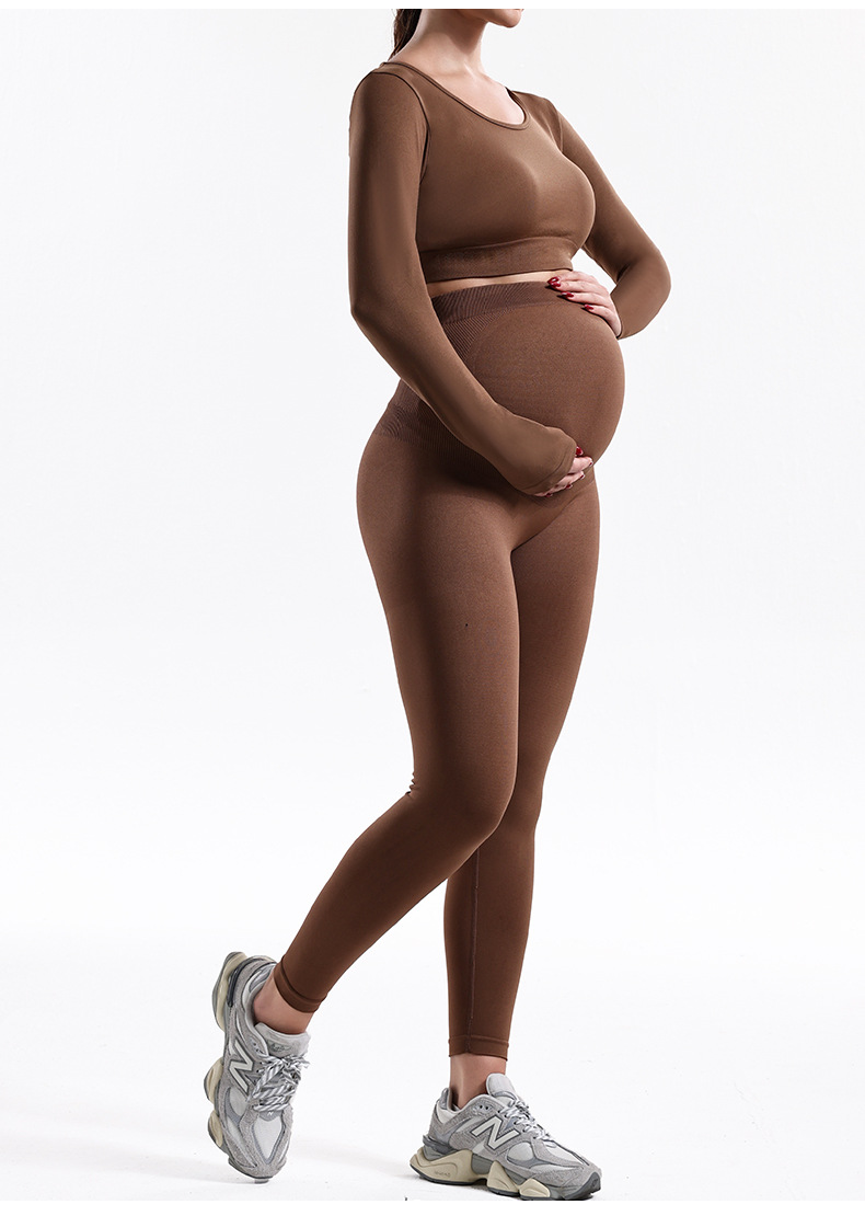 Trajes de embarazo de otoño y invierno transfronterizos para mujeres, pantalones de embarazo de yoga de cintura alta, chaqueta de manga larga de base sólida