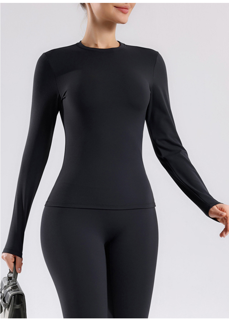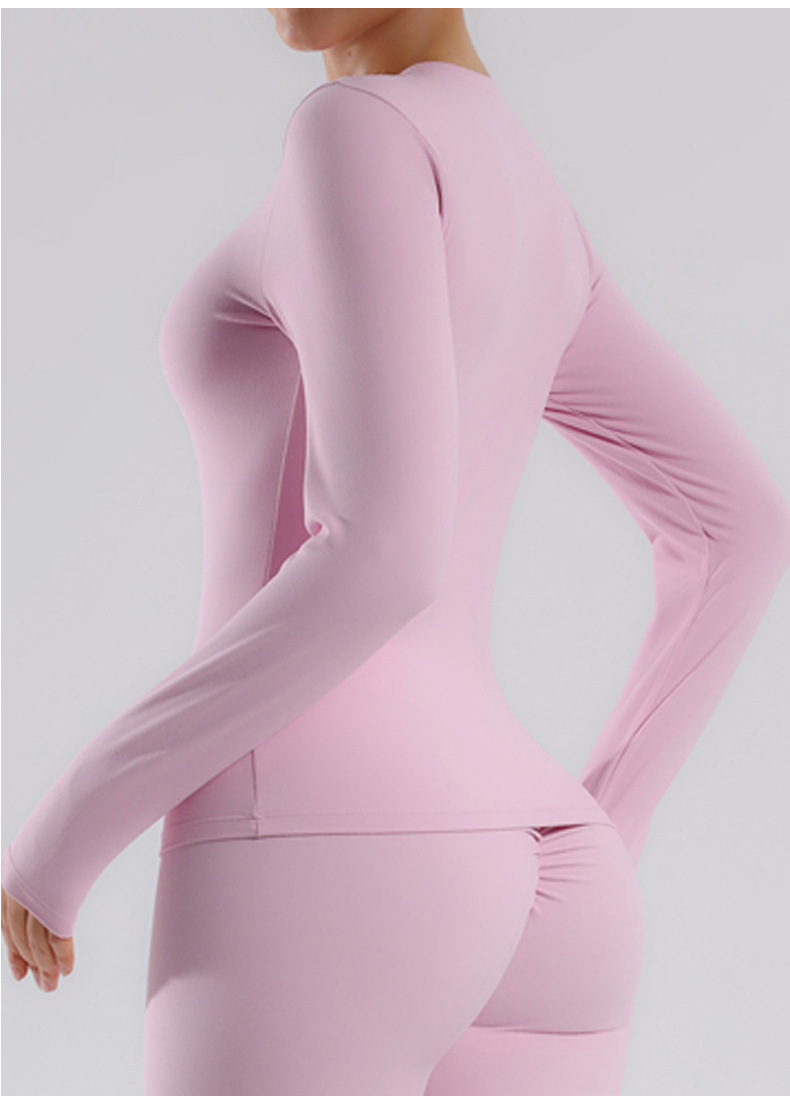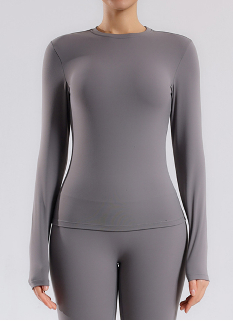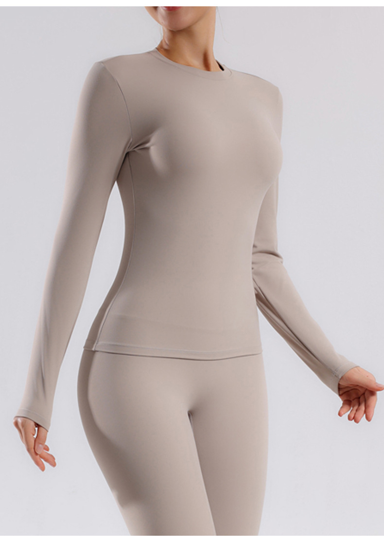 Europa y América dos lados abrasivos desnudos ropa de yoga de mangas largas mujeres de alta intensidad correr pilates ropa de ejercicio de mangas largas