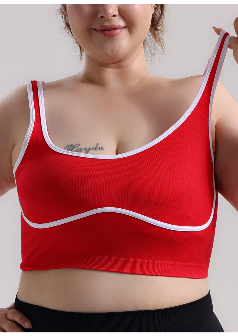 Chaleco deportivo trasero de belleza sin anillo de acero de gran tamaño de color contrastante para mujer, chaleco de yoga deportivo de recolección a prueba de golpes y a prueba de golpes