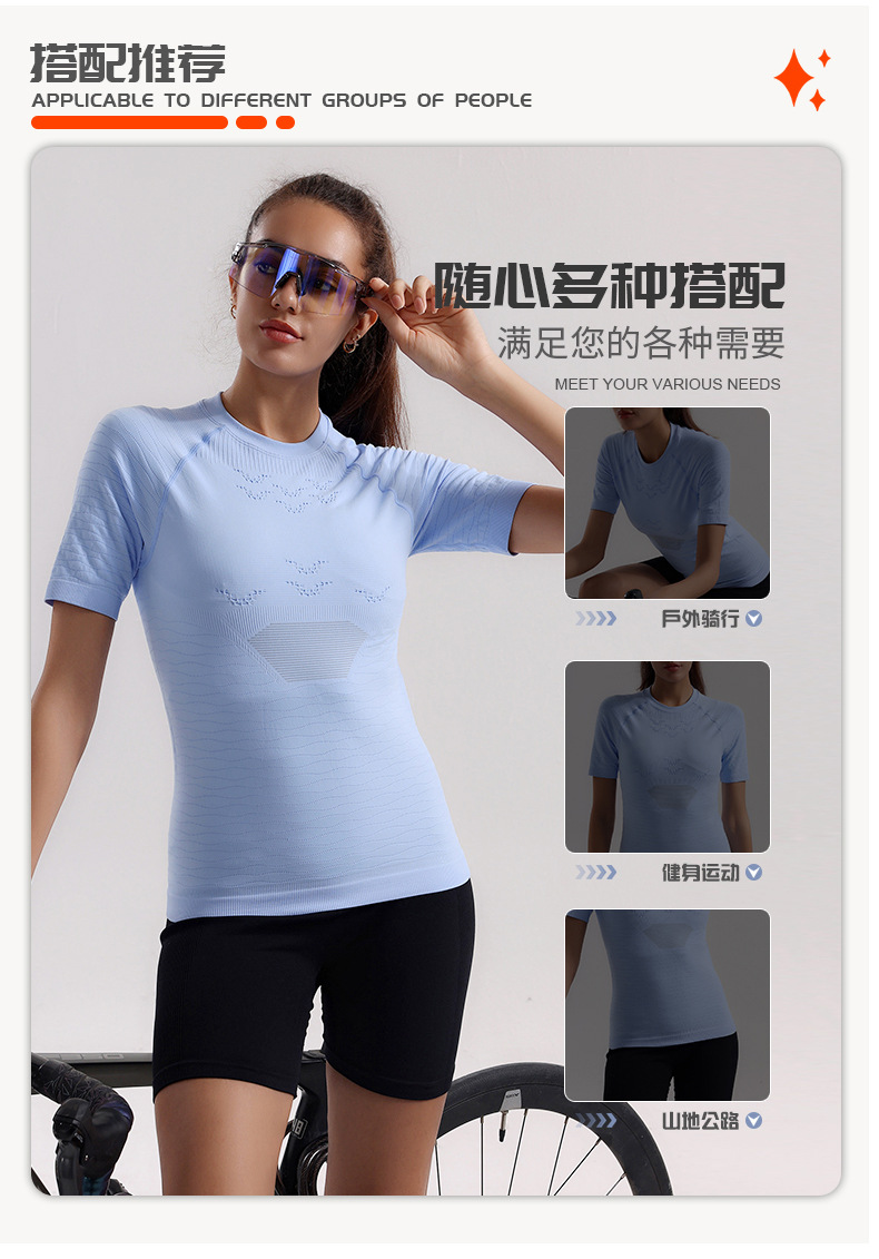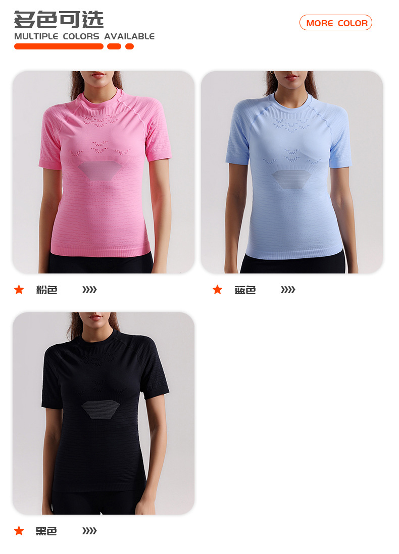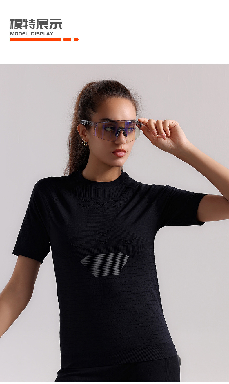 Verano fitness yoga ciclismo manga corta mujer correr al aire libre transpiración absorción de humedad sudor compresión camisa deportiva