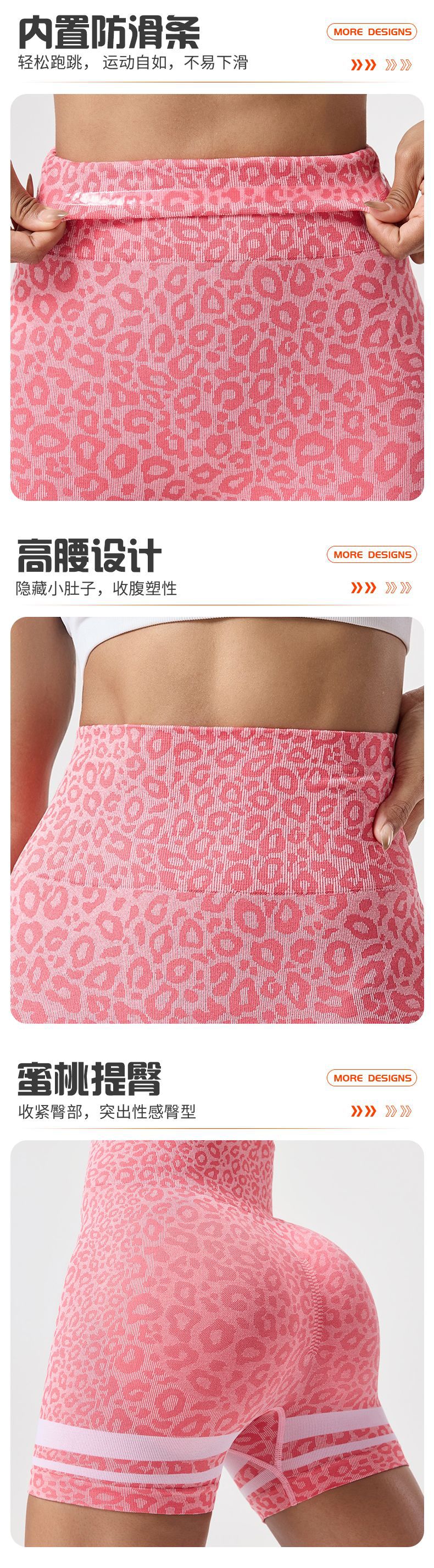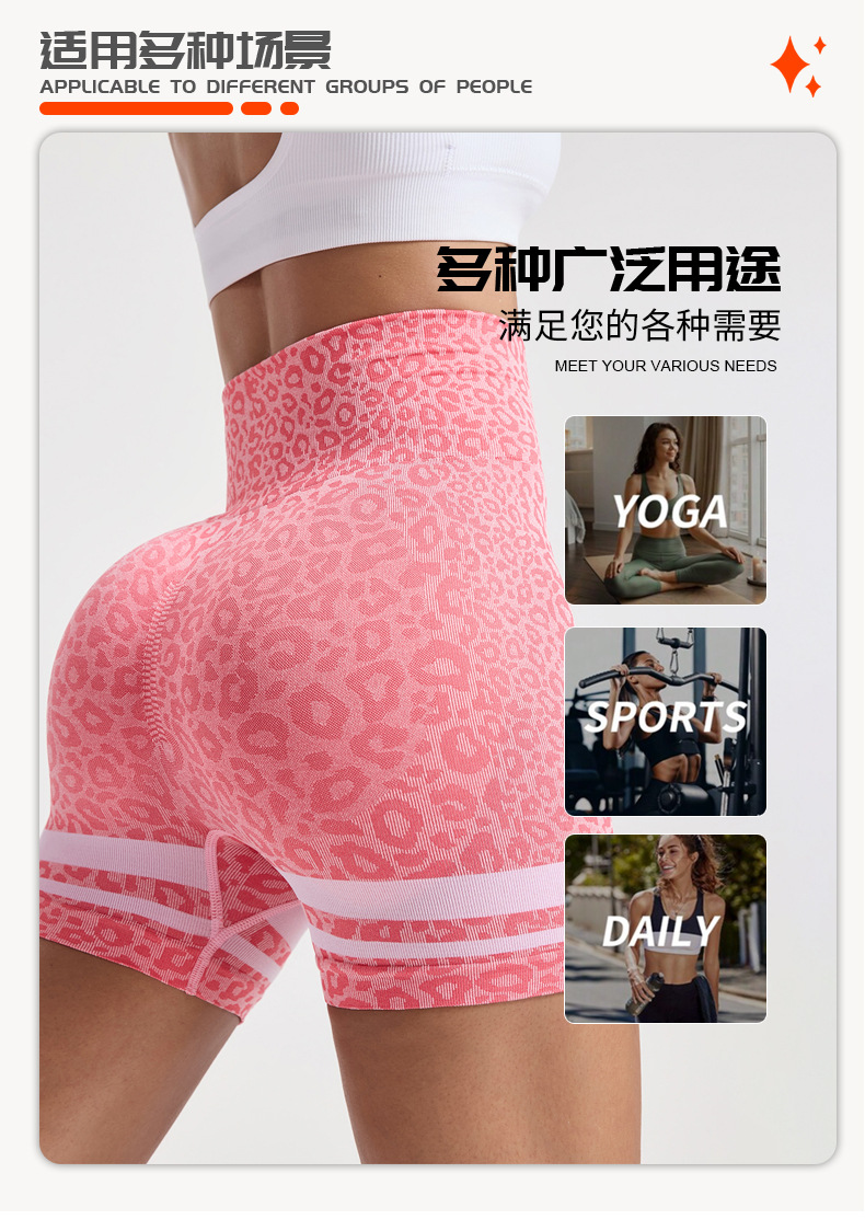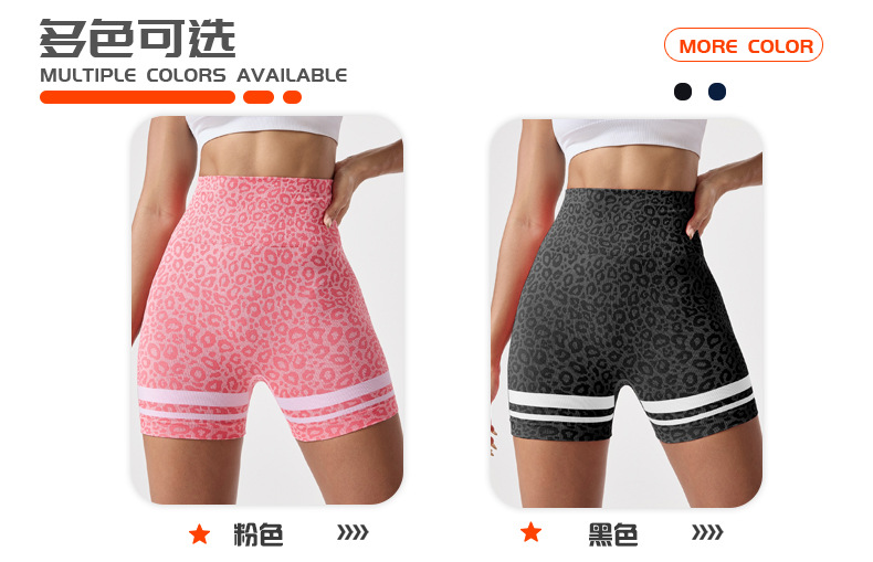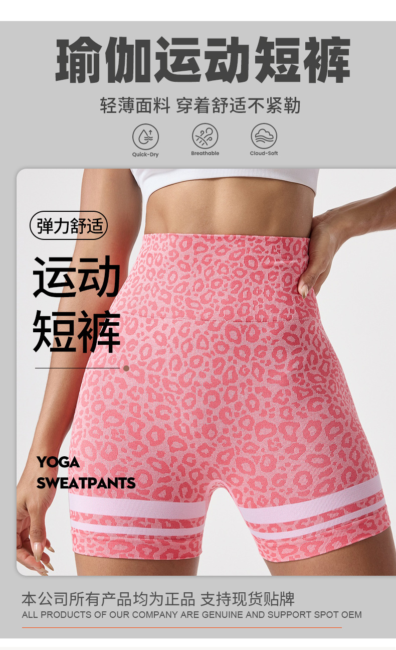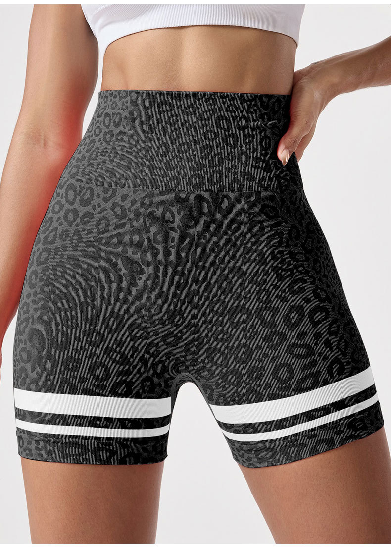 Pantalones cortos de yoga sin costuras de cintura alta con estampado de leopardo de color en contraste
