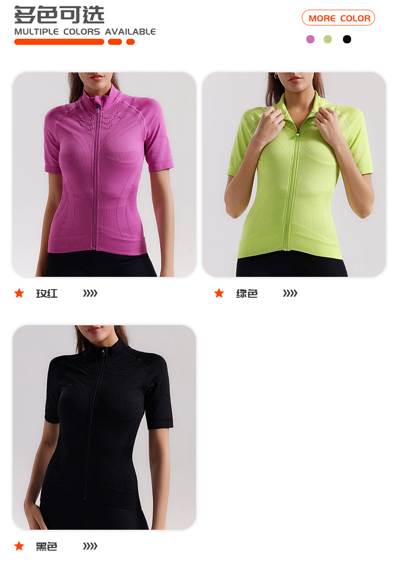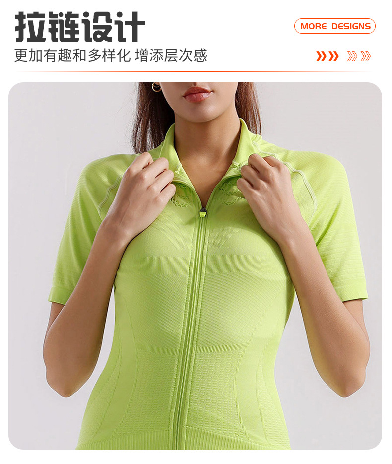 Verano fitness deportes yoga ciclismo manga corta mujer cremallera cuello alto transpirable de secado rápido compresión con bolsillo camiseta ajustada