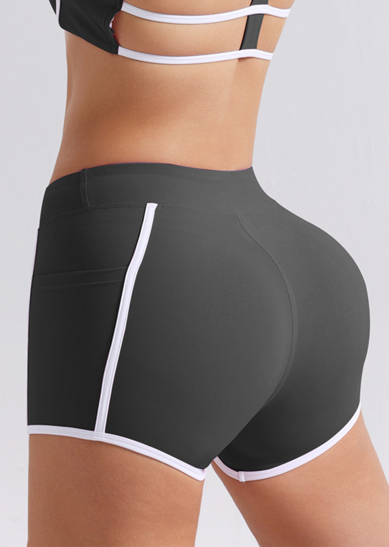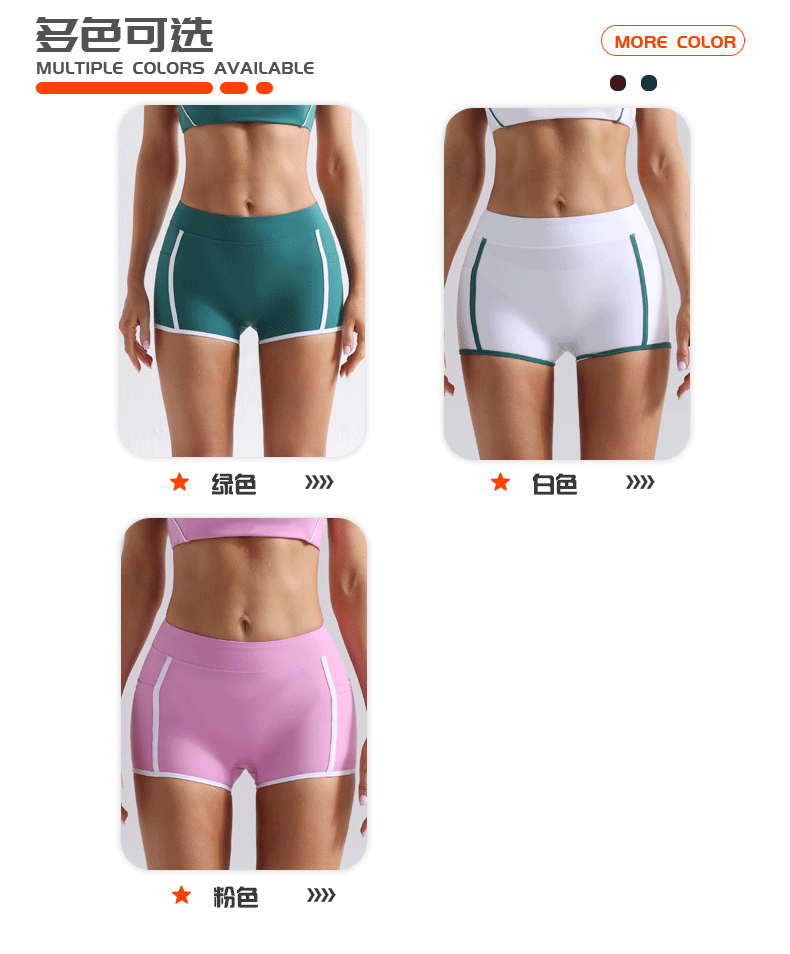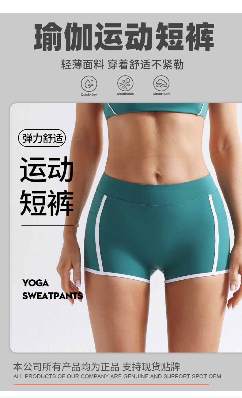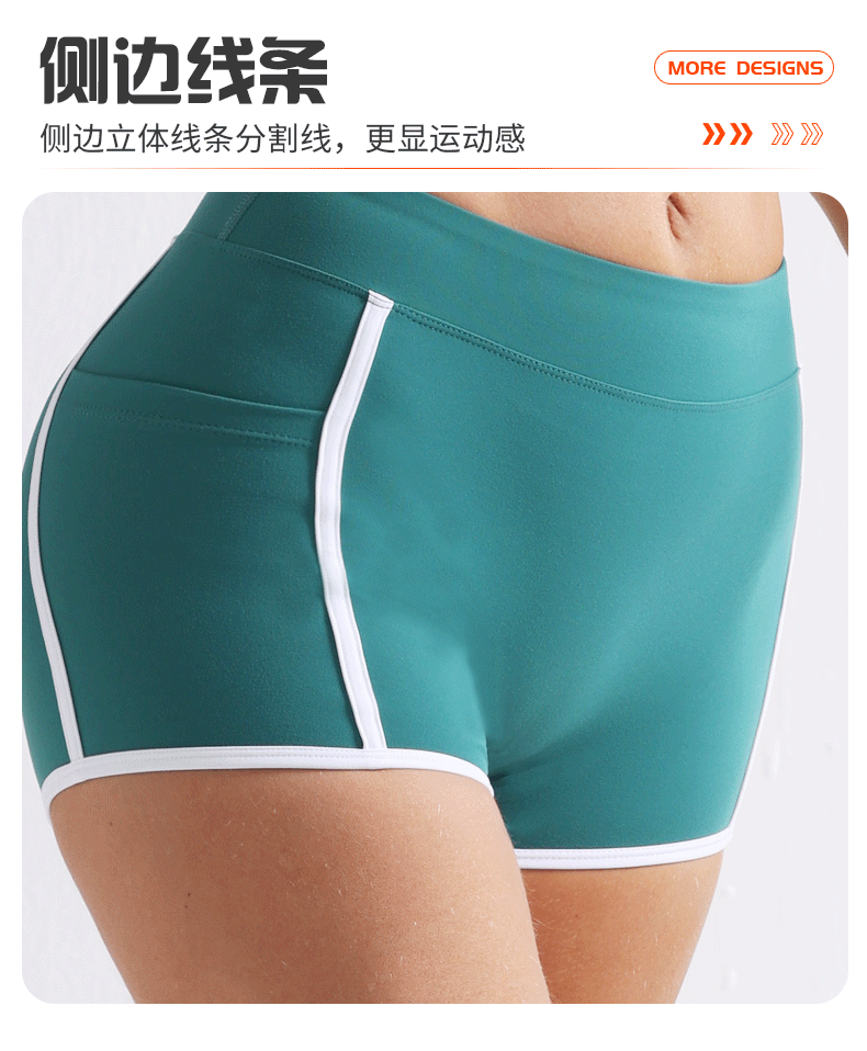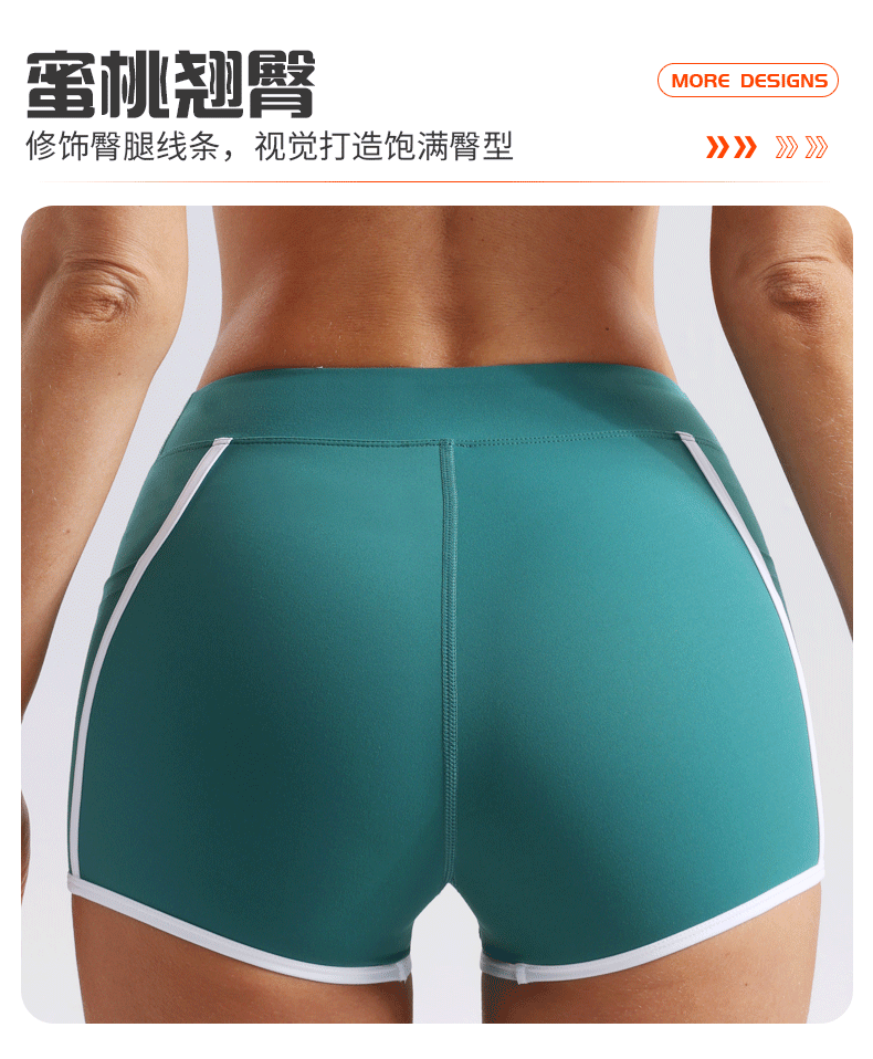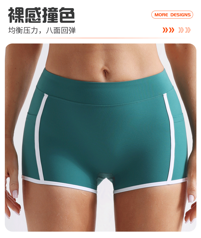 Nuevos pantalones cortos de yoga de cadera deportiva de bolsillo con cinturón de color desnudo