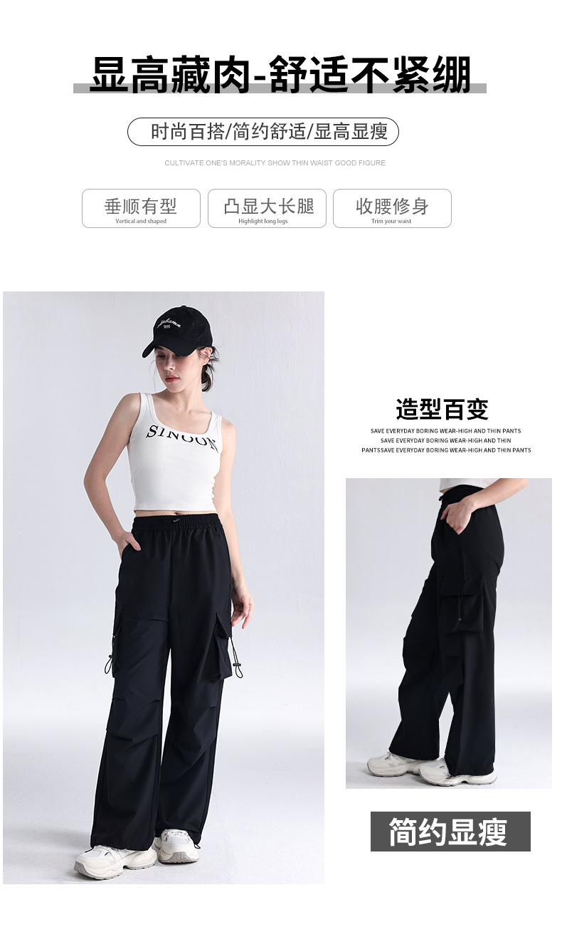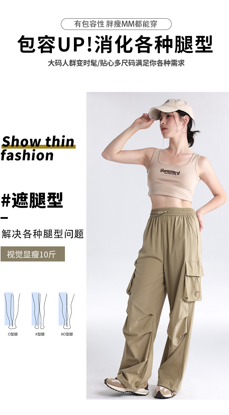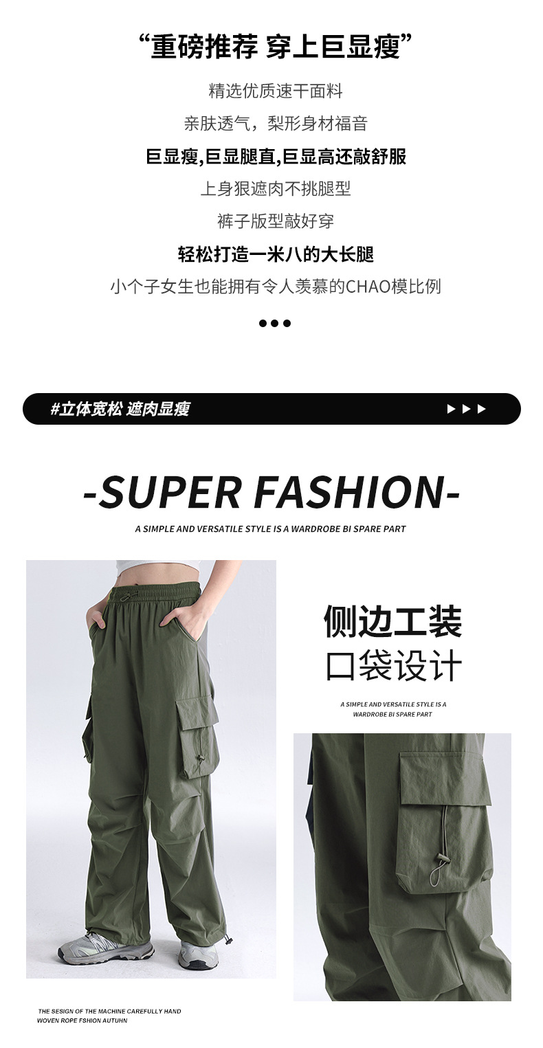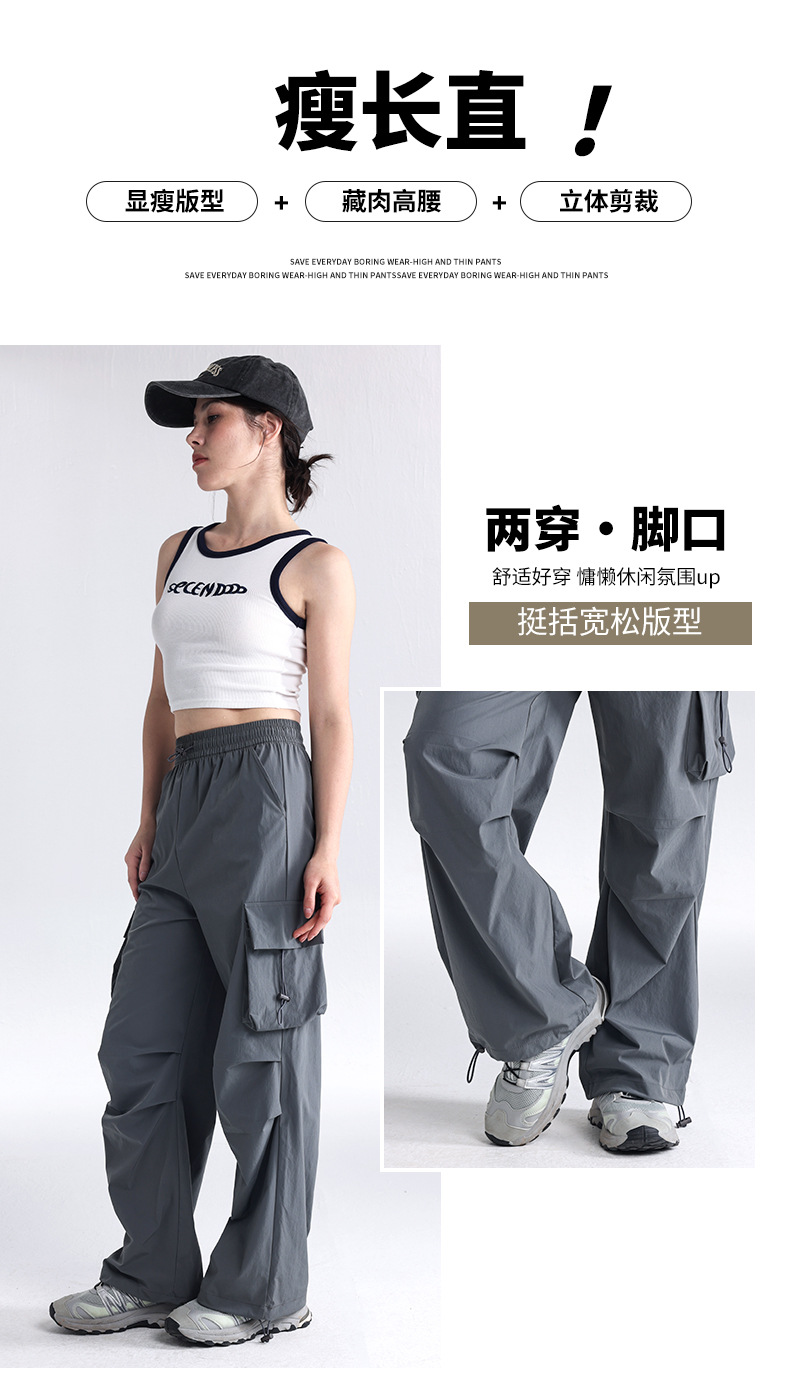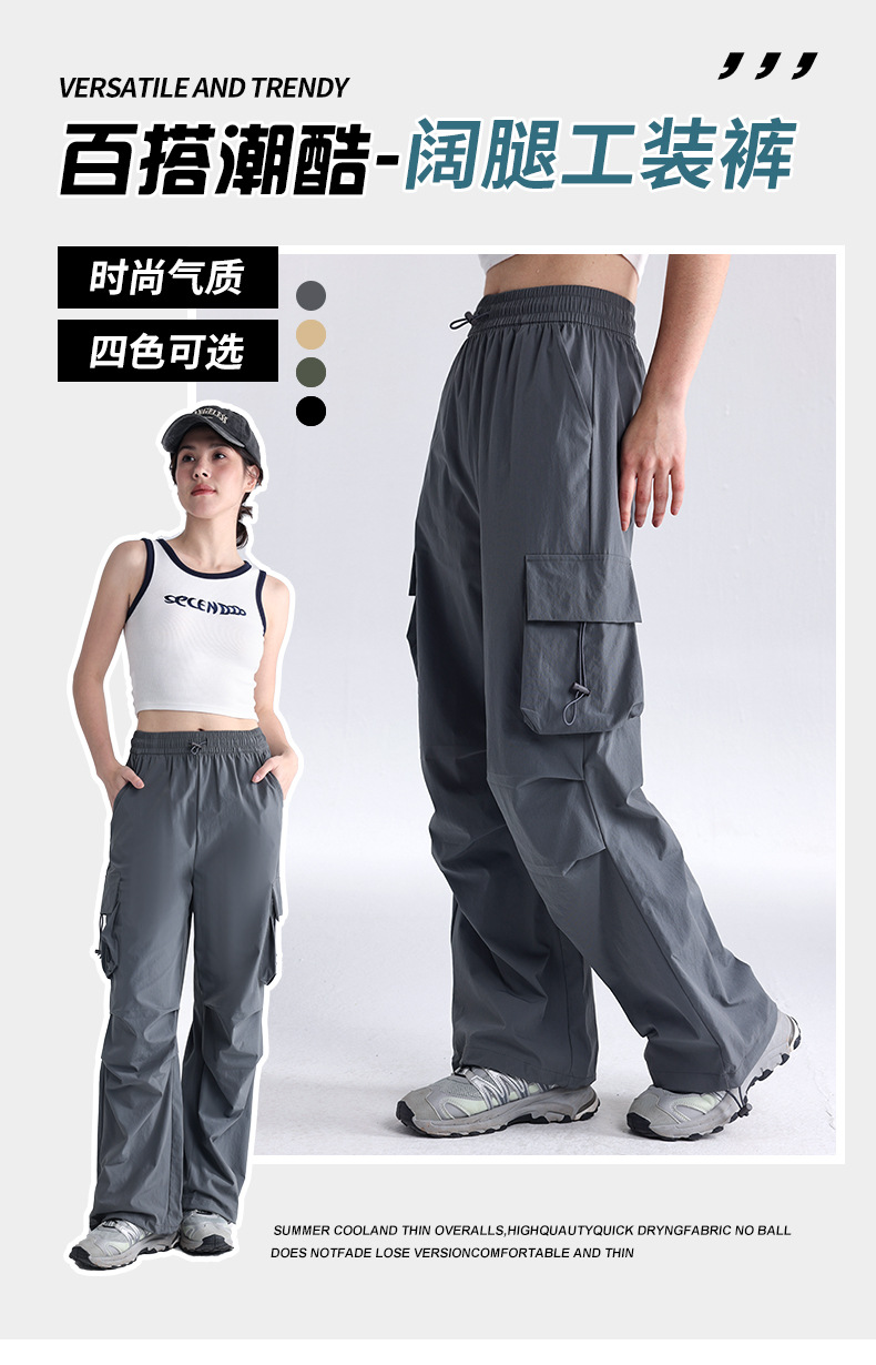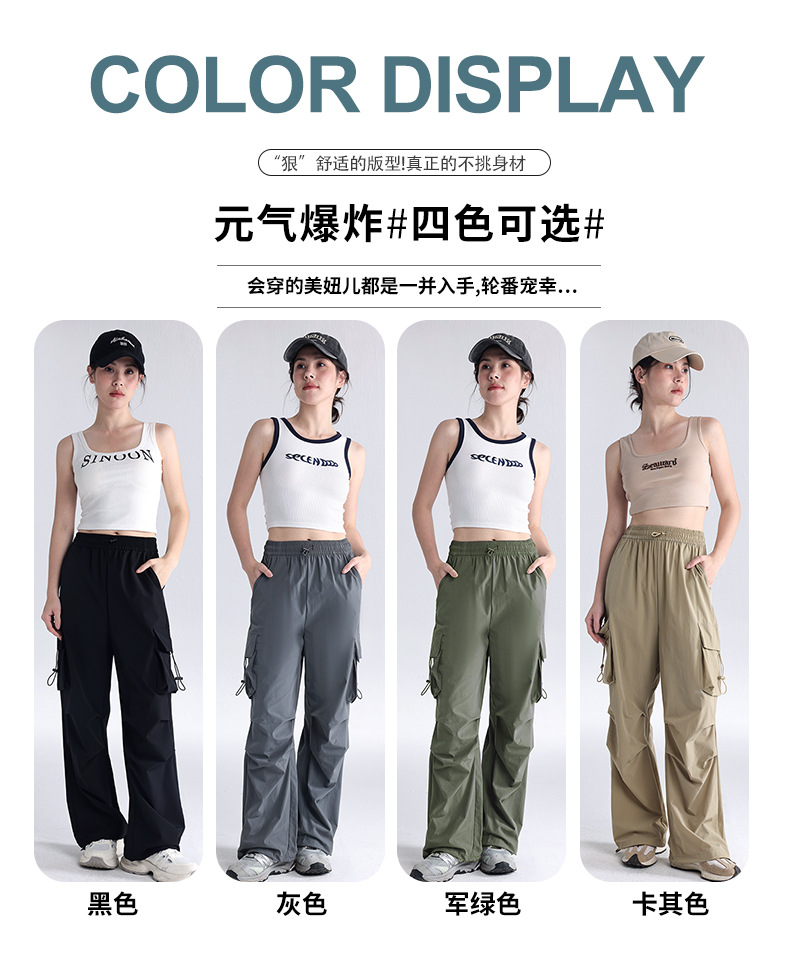 Nuevos monos de pierna ancha de secado rápido, pantalones de montañismo con paracaídas de verano americano para mujer, pantalones deportivos y de ocio con pies sueltos