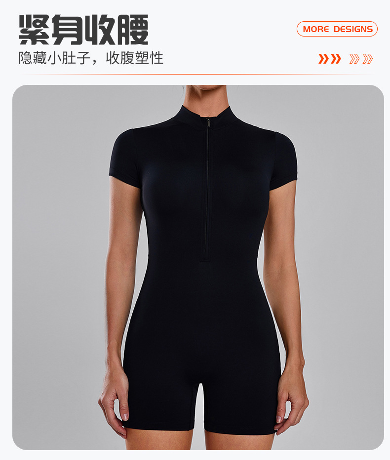 2025 primavera y verano con cremallera de mangas cortas mujeres desnudas sensación de fitness ajustado camiseta deportiva de mujeres caderas sexy abdomen