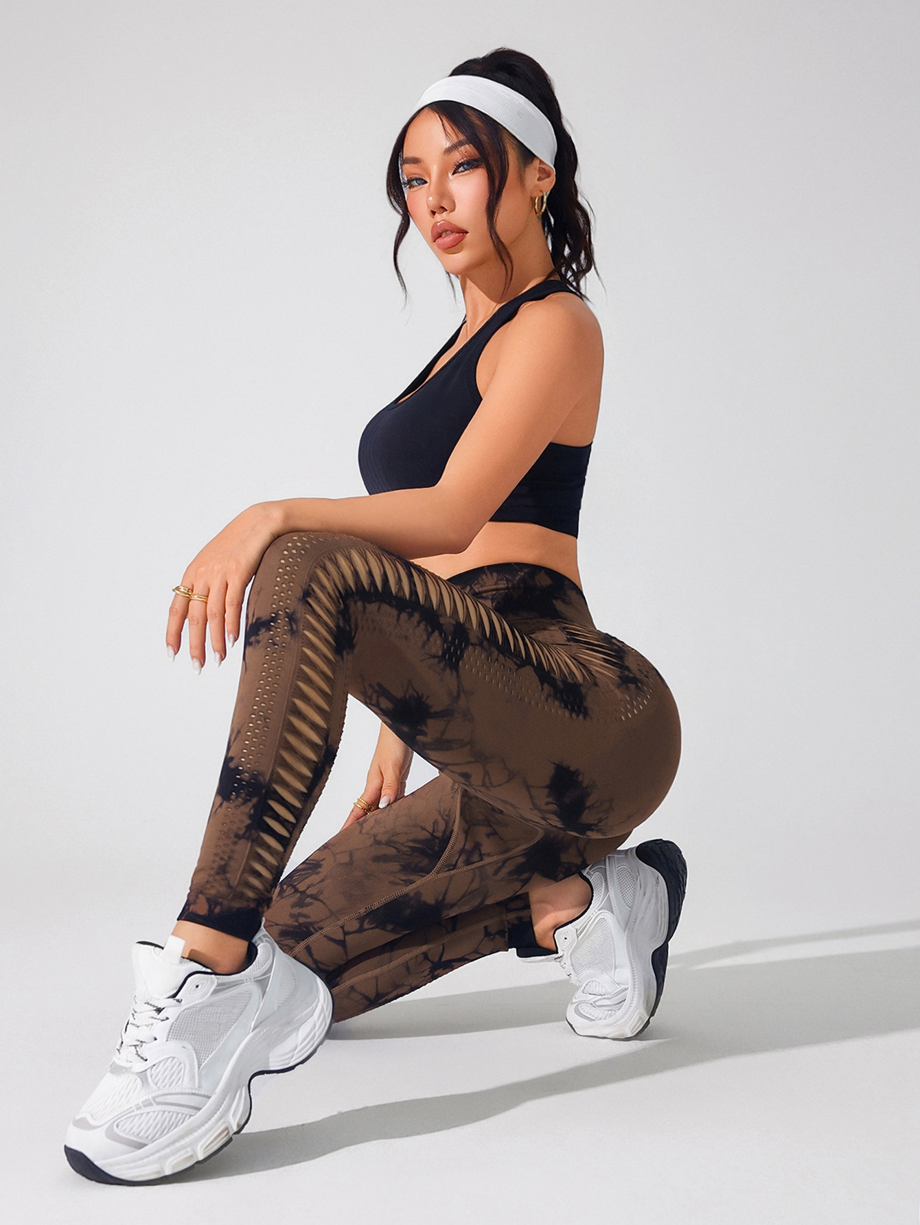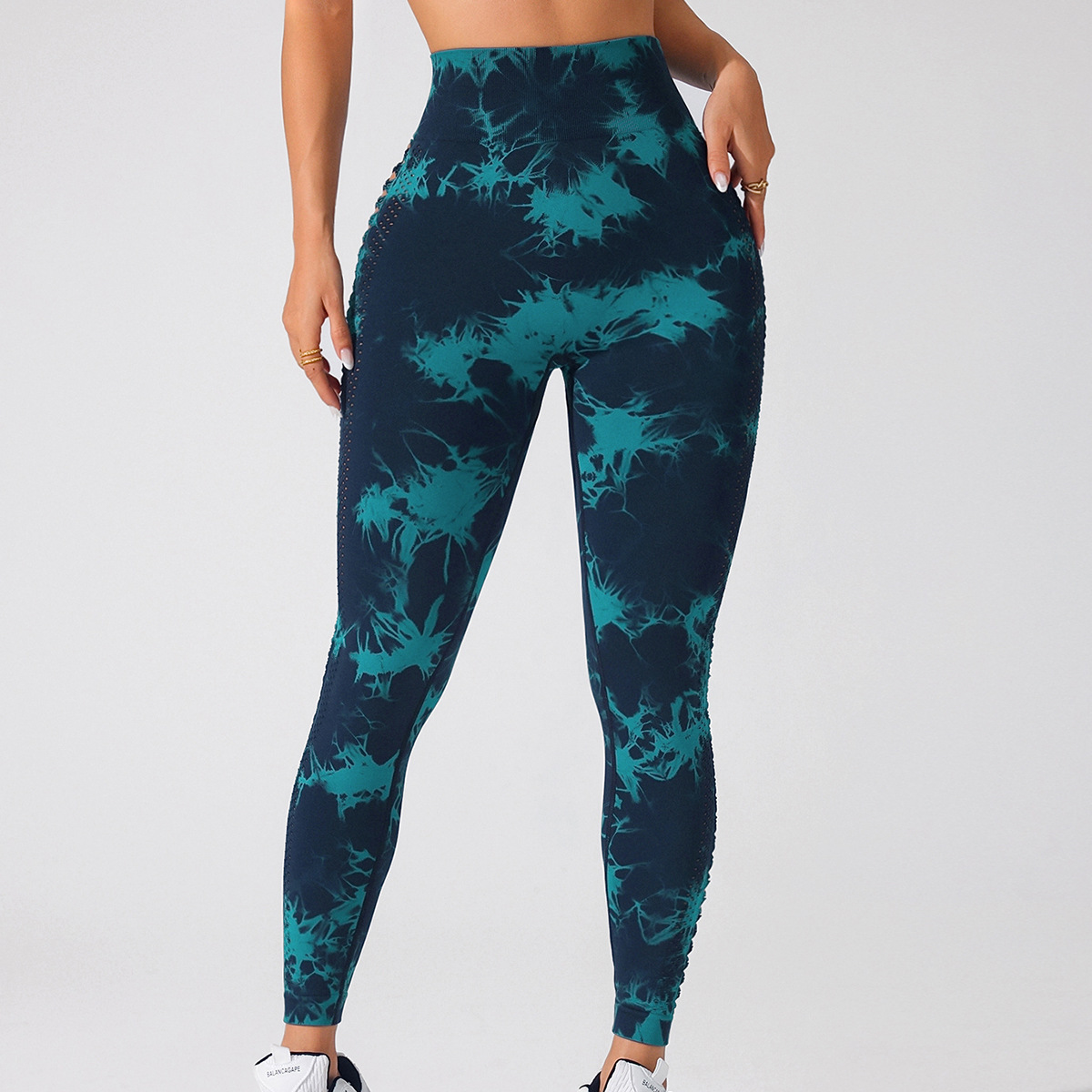 2025 primavera y verano tiñido sin pimples de cintura alta mujer apertado y rápido secado deportivo base de mel桃 caderas pantalones de gimnasio mesh