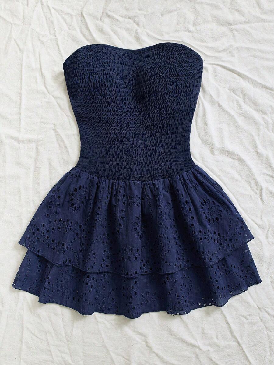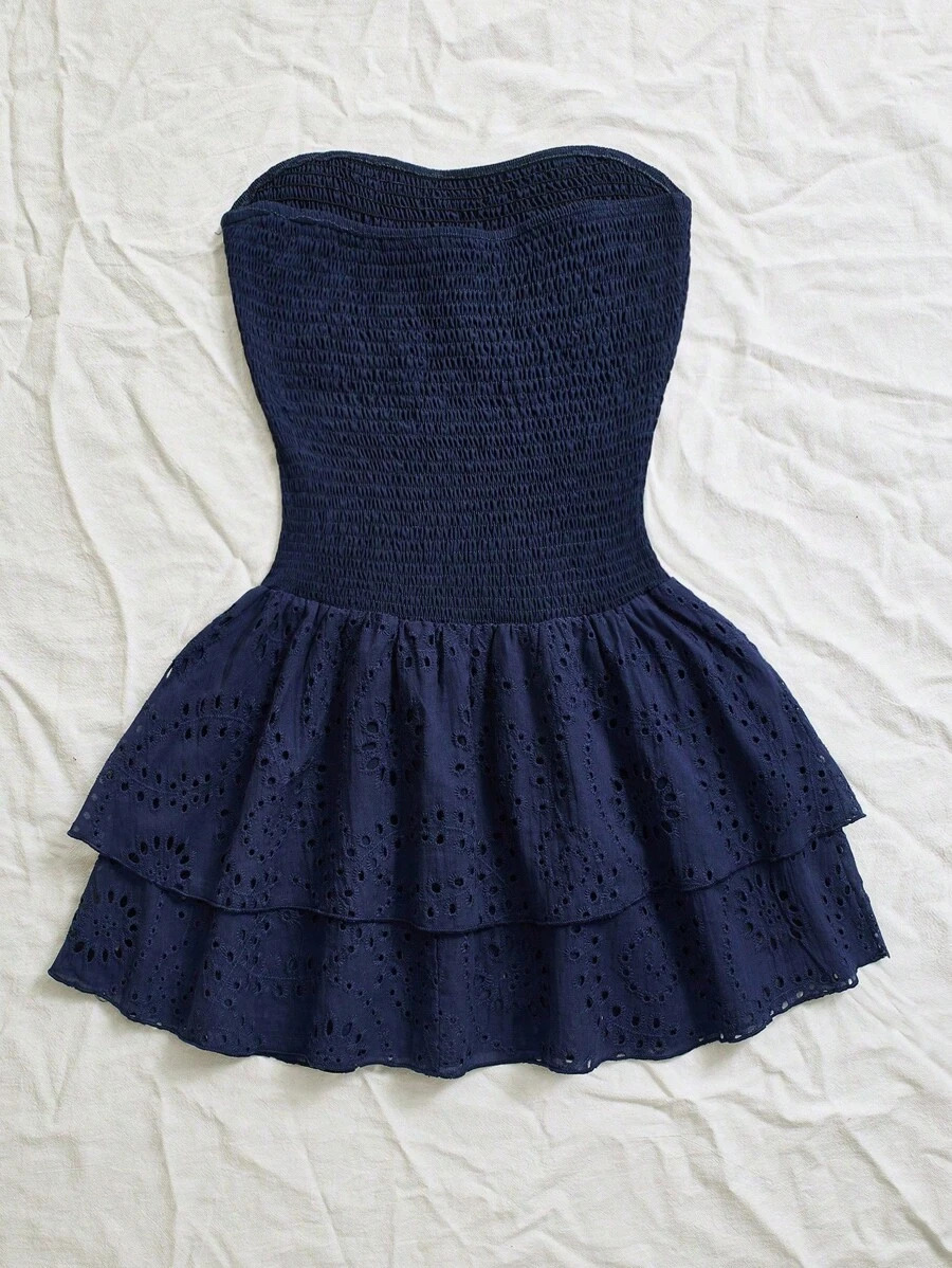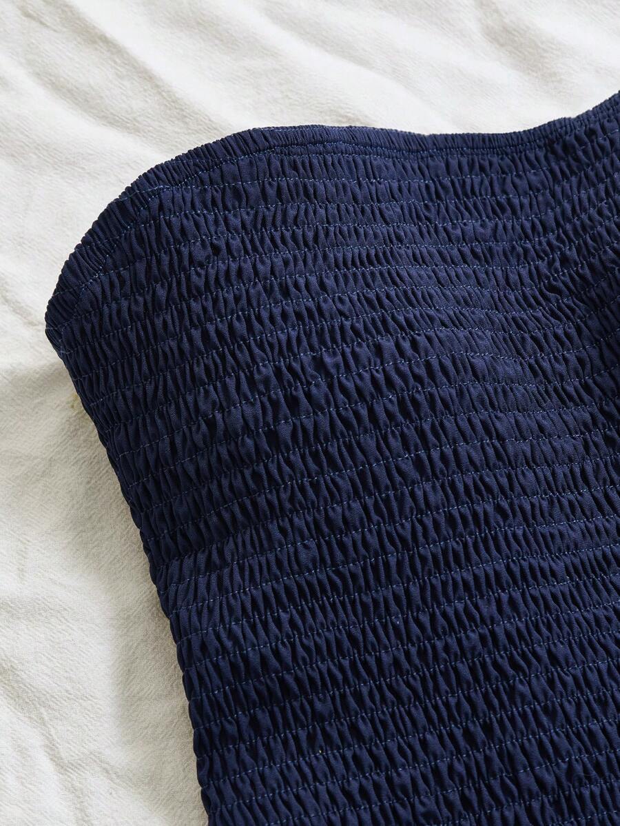 D 85074 comercio exterior Aliexpress moda transfronteriza azul navy pliegue sin correa de hombro bordado agujero sexy