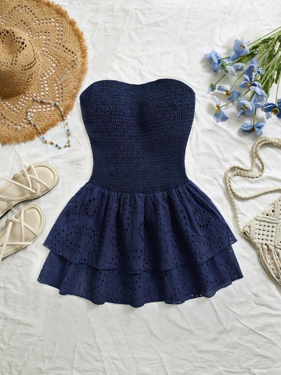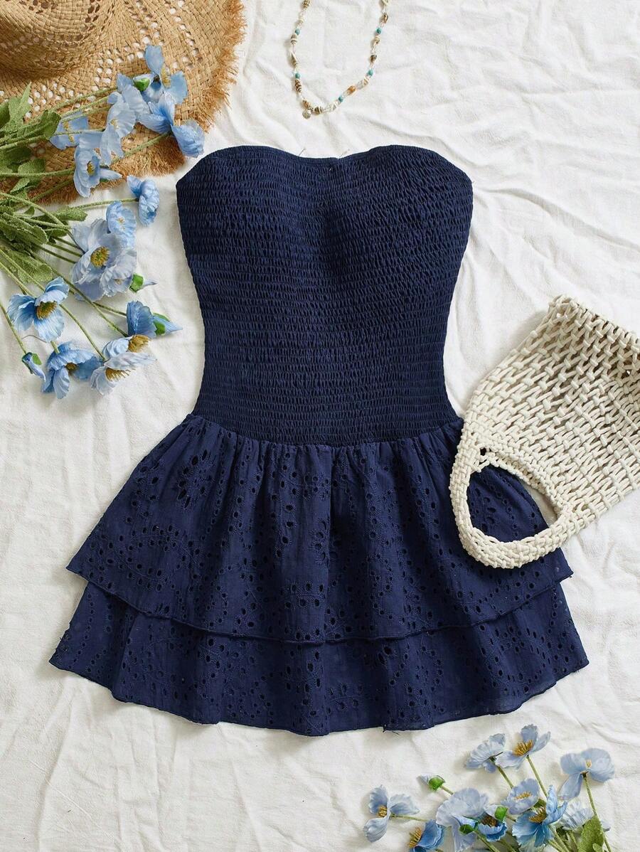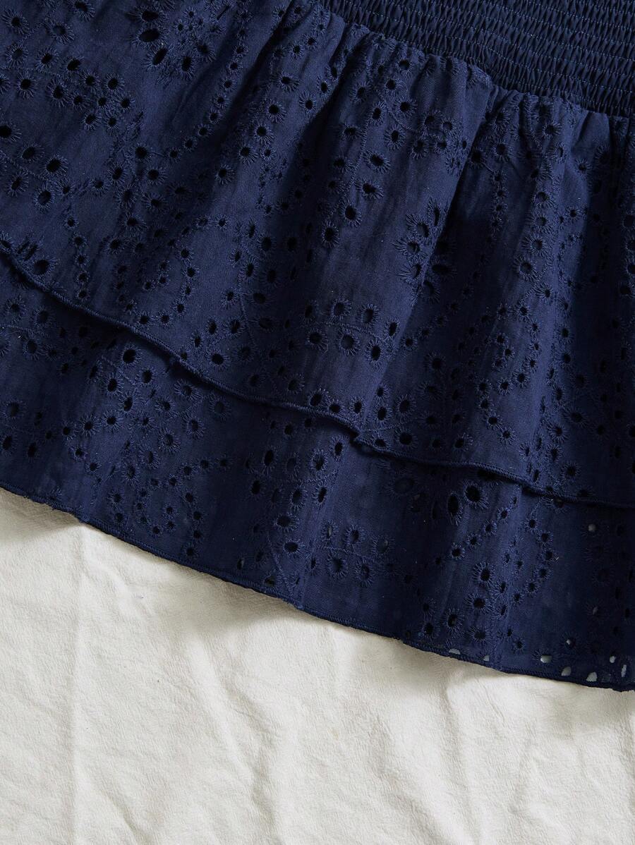 D 85074 comercio exterior Aliexpress moda transfronteriza azul navy pliegue sin correa de hombro bordado agujero sexy