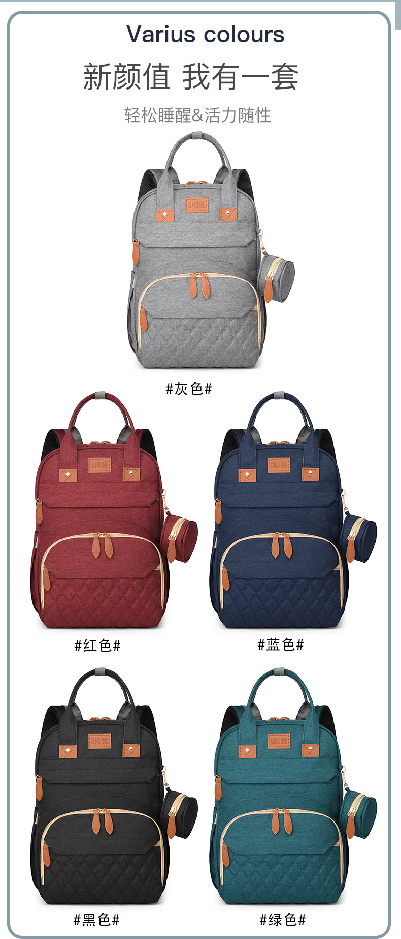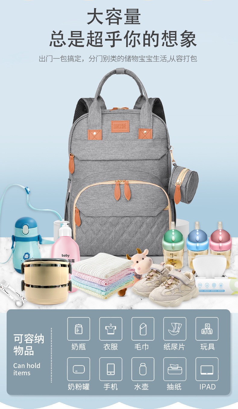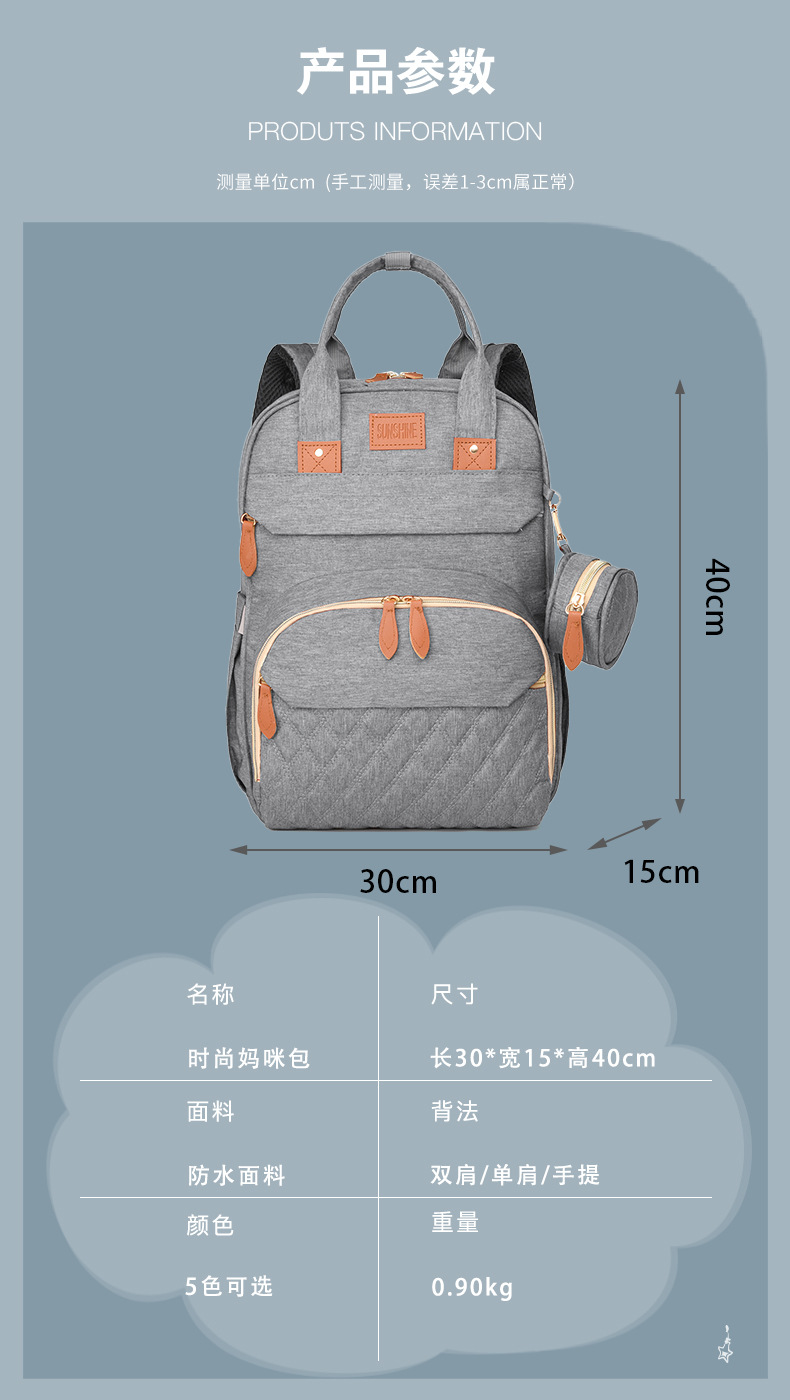 Luz de color sólido clásico ocio bolsas de madre y bebé de color sólido moda versátil para salir ocio viaje mujer mochila de hombro