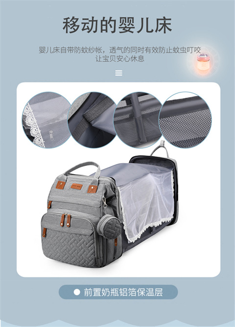 Bolso multifunción para mamá bebé portátil 2025 nuevo hombro de gran capacidad bolsa de cama para madre y bebé a prueba de insectos con sombra ligera