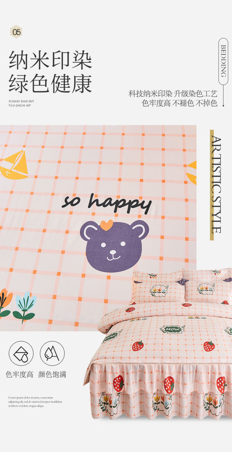 | Especificaciones de tamaño | 120 * 200 [una sola cama], 180 * 200 [una sola cama], 180 * 220 [una sola cama], 150 * 200 [una sola cama], 200 * 220 [una sola cama], 120 * 200 [una sola cama + 2 fundas de almohada], 180 * 220 [una sola cama + 2 fundas de almohada], 150 * 200 [una sola cama + 2 fundas de almohada], 180 * 200 [una sola cama + 2 fundas de almohada], 200 * 220 [falda de cama + 2 funda de almohada] |