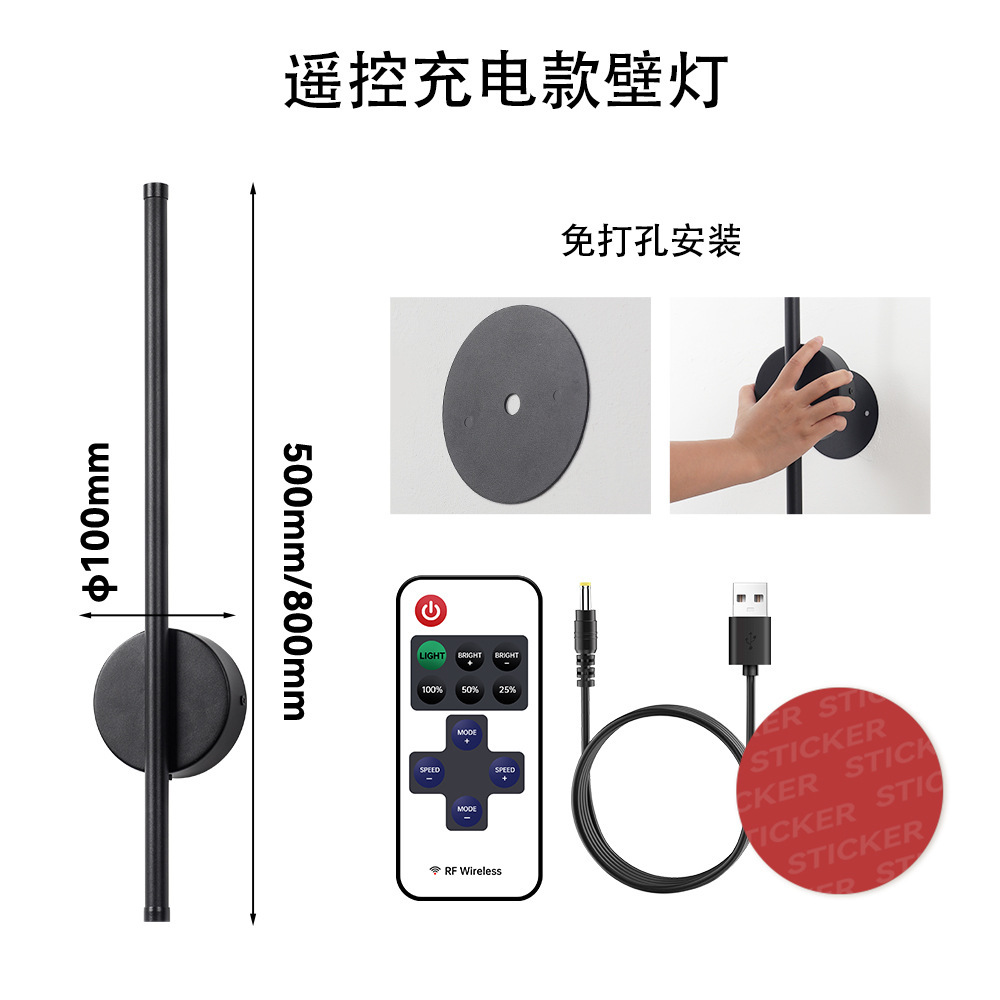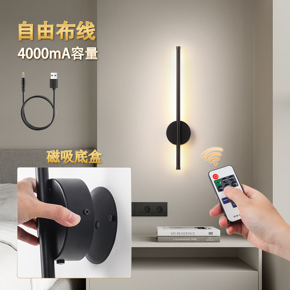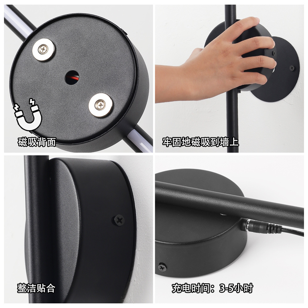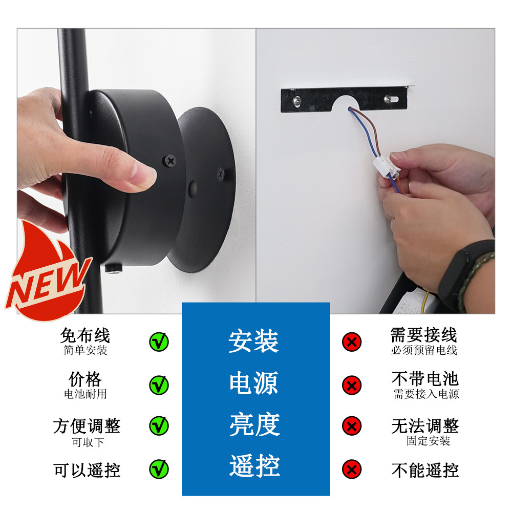 Lámpara de pared LED sin cables, recargable, con batería de ultra larga duración, giratoria, con control remoto, regulable en tres colores, directamente de fábrica.