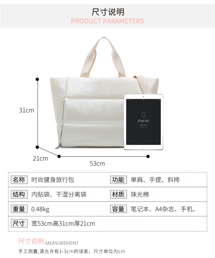 Transfronterizos algodón perlada bolsa deportiva de fitness mujer secos y húmedos separación bolsa de yoga de natación portátil de hombro bolsa de viaje