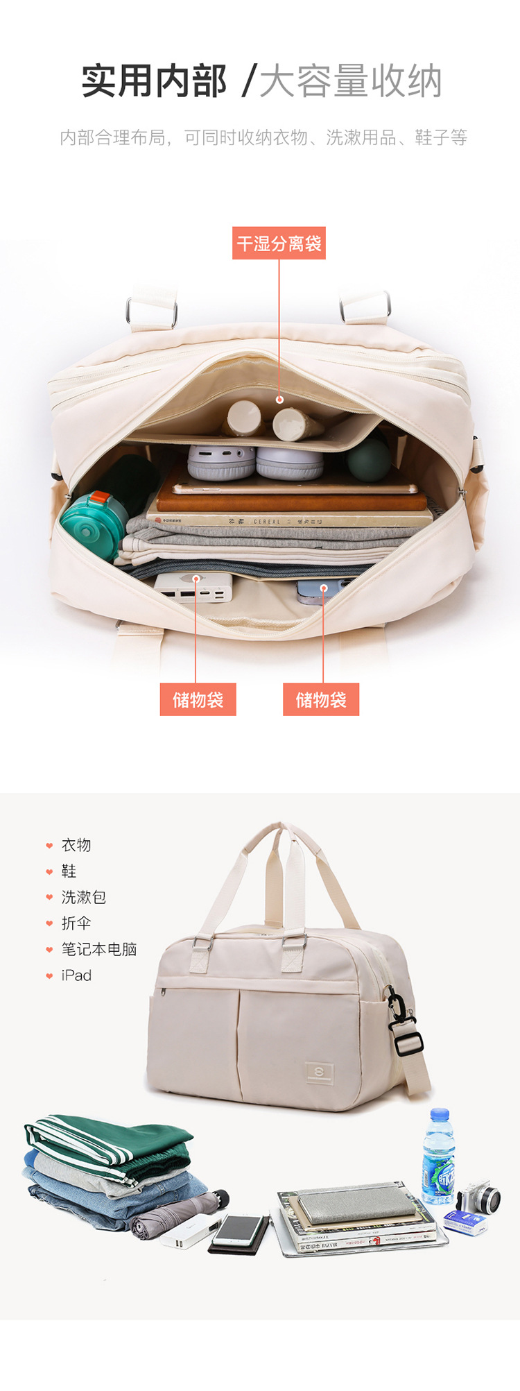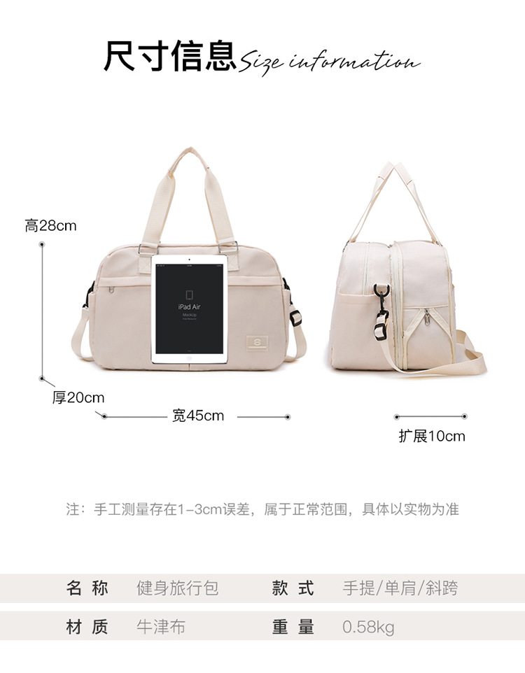 Bolsa de viaje portátil simple de gran capacidad bolsa de ocio bolsa de ejercicios bolsa de yoga bolsa de equipaje ligera multifuncional para mujeres