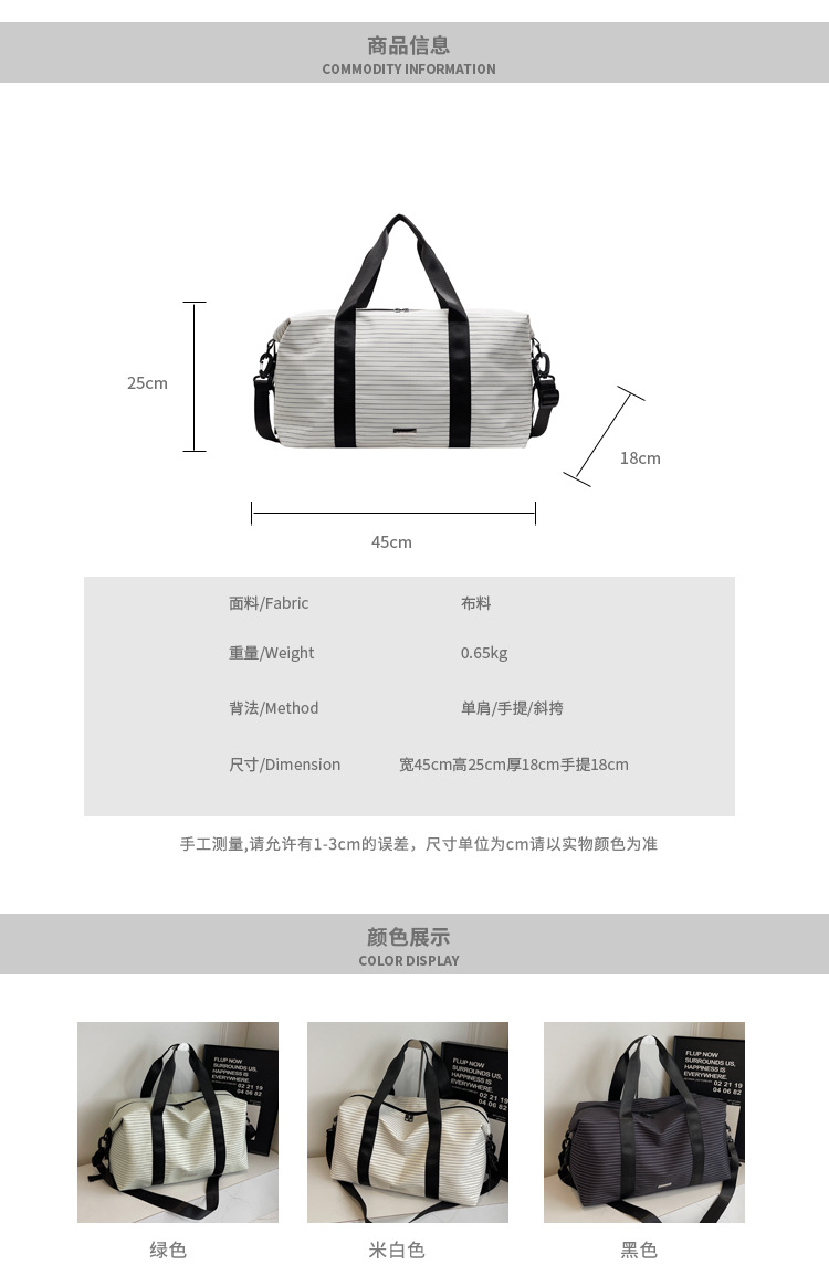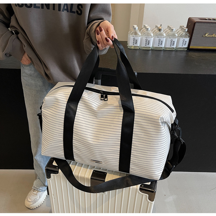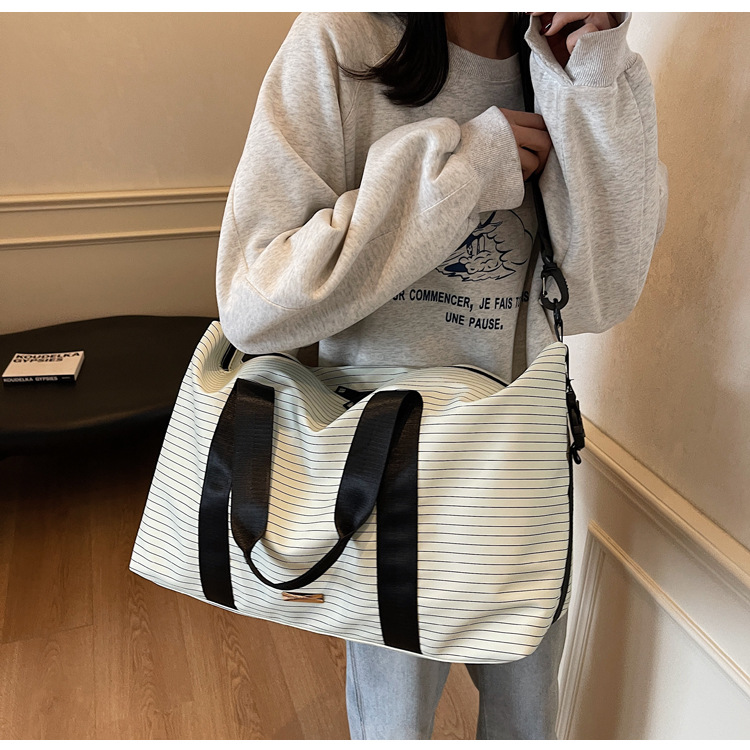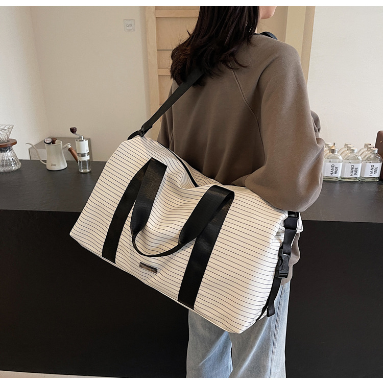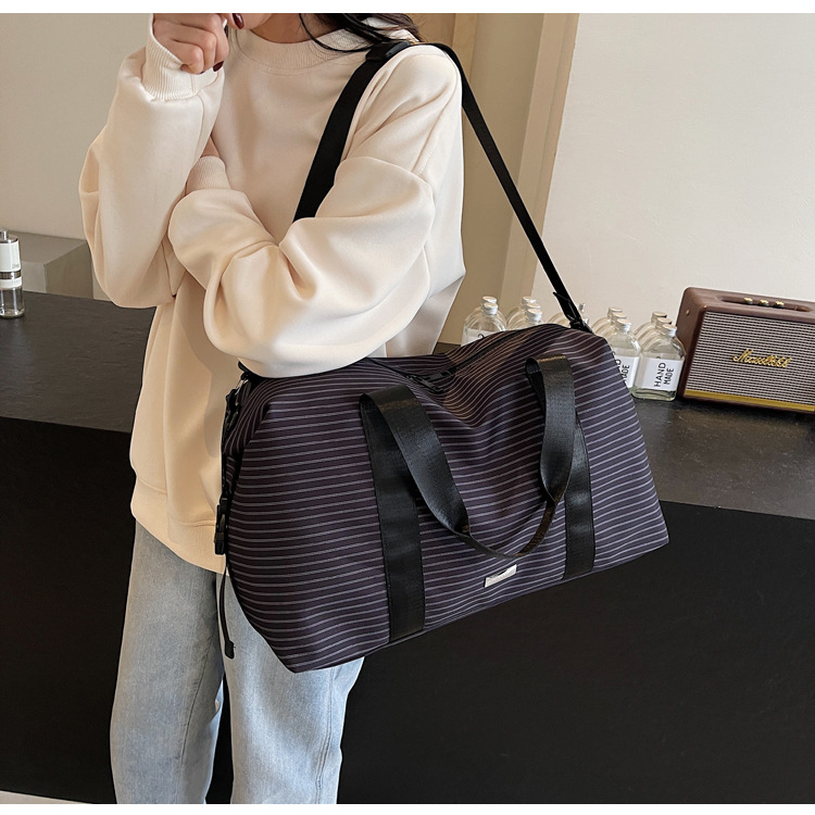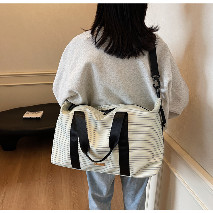 2025 nuevo paquete de viaje portátil a rayas de gran capacidad bolsas deportivas de ocio bolsas de acondicionamiento de la piel ligeras bolsas inclinadas para mujeres