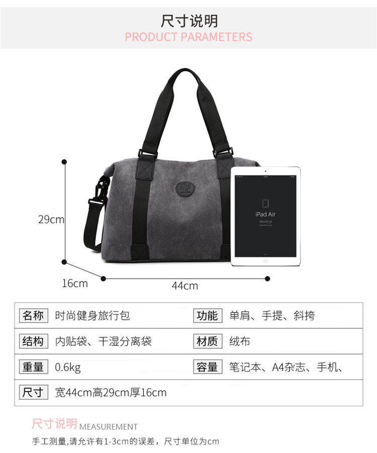 Nueva bolsa de viaje de lana 2024 verano transpirable de gran capacidad bolsa de viaje de negocios bolsa deportiva de ocio bolsa de fitness