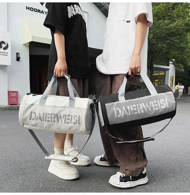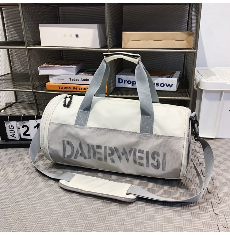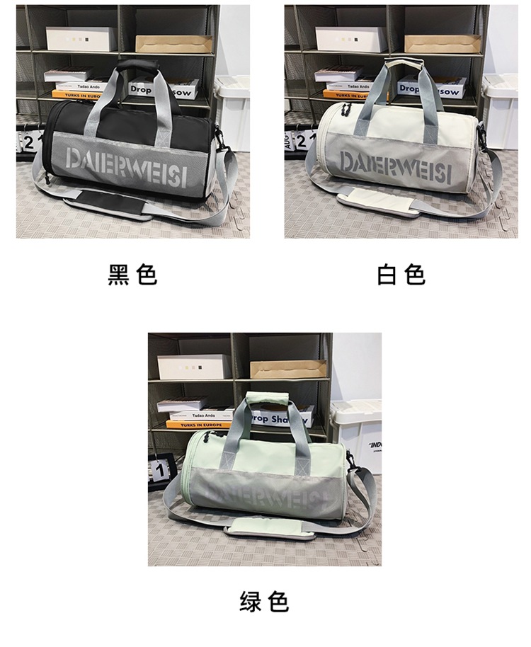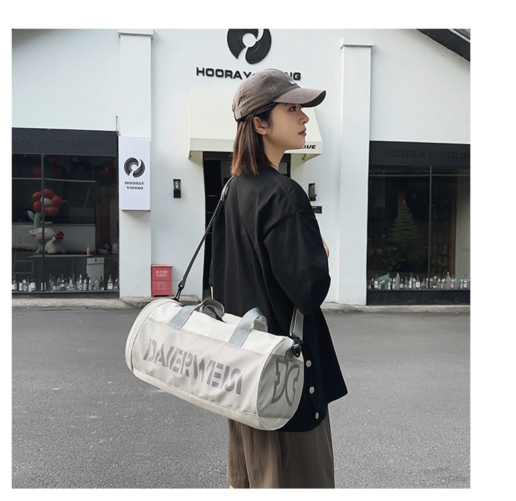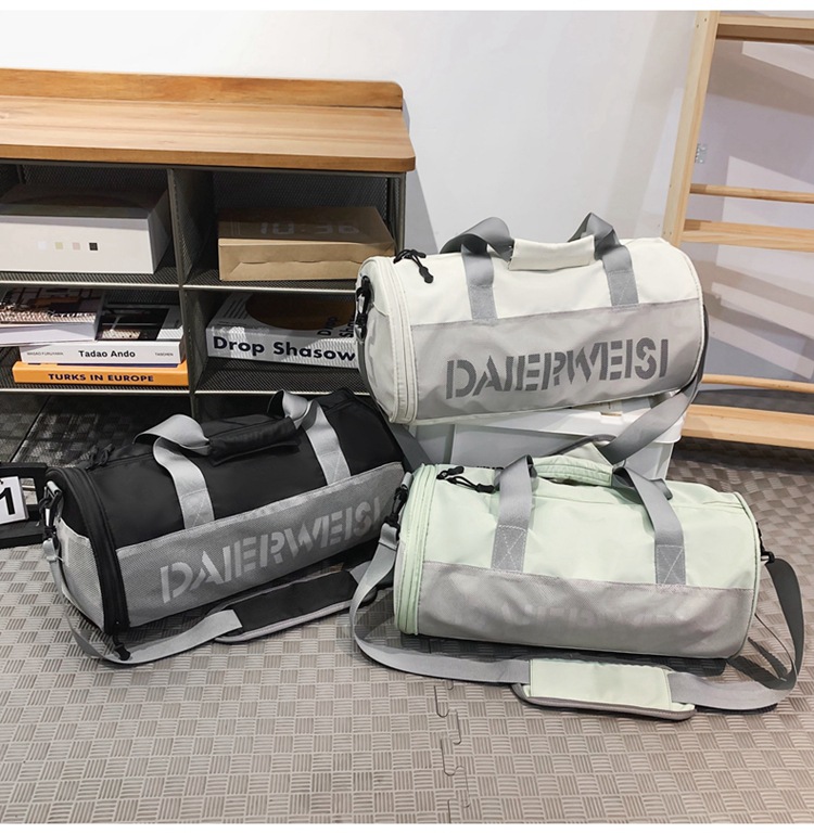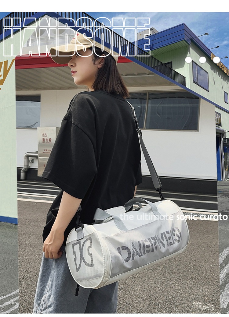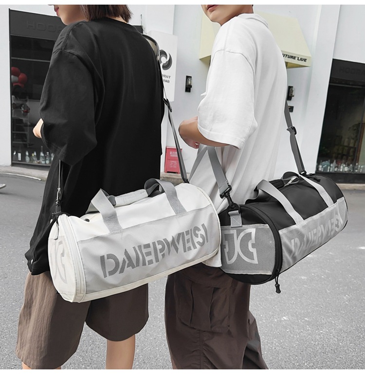 Bolsa cilíndrica simple de letras de gran capacidad nueva moda bolsa deportiva de fitness bolsa de viaje ligera a prueba de agua