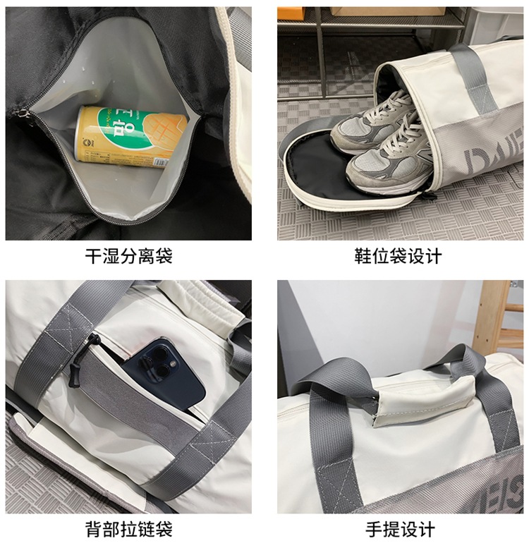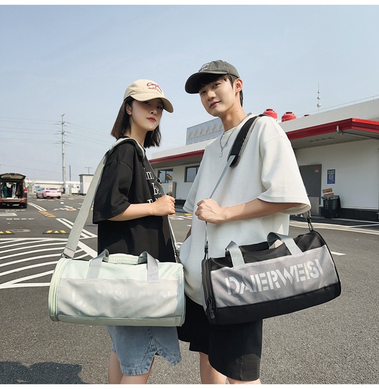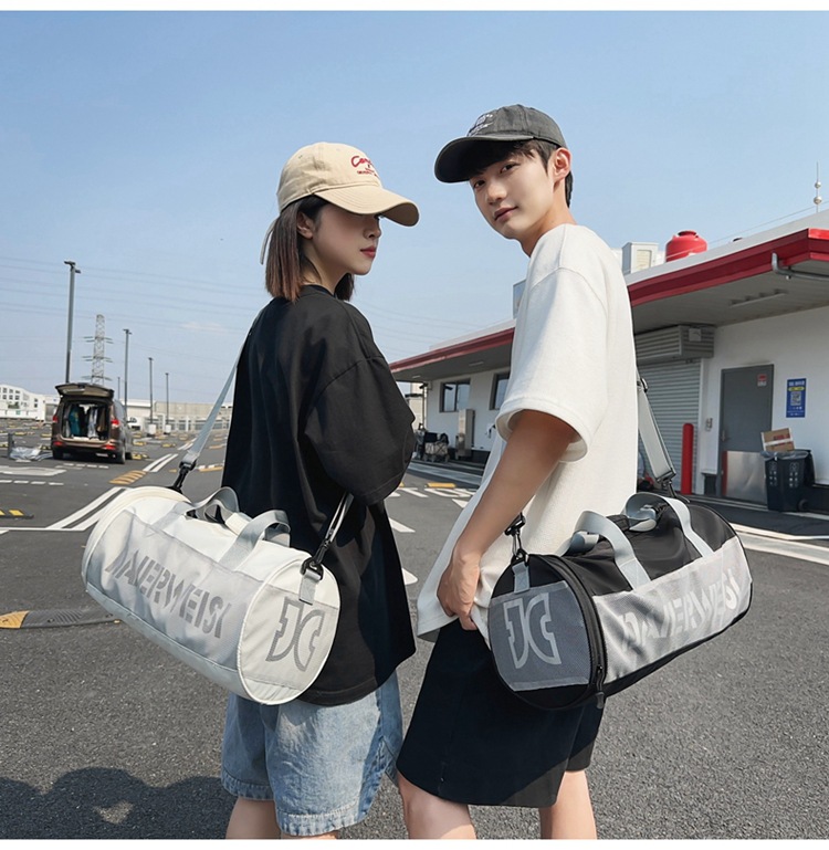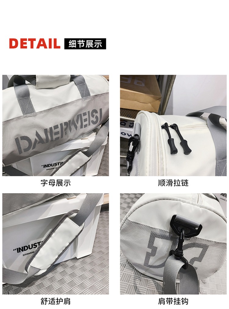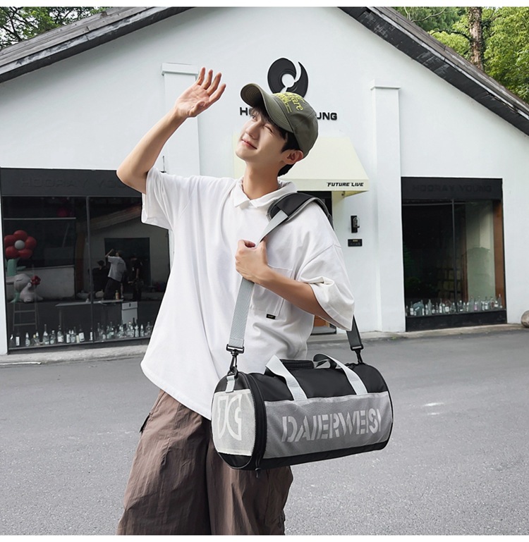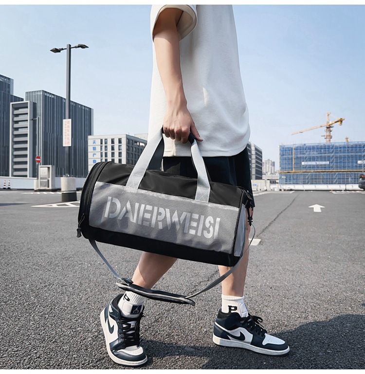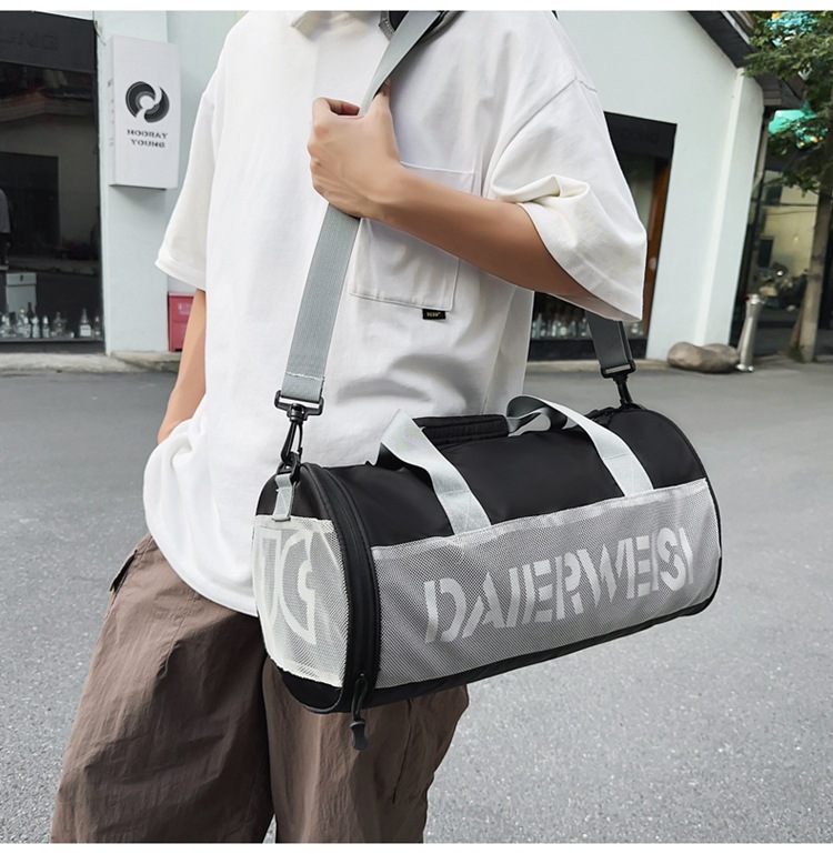 Bolsa cilíndrica simple de letras de gran capacidad nueva moda bolsa deportiva de fitness bolsa de viaje ligera a prueba de agua