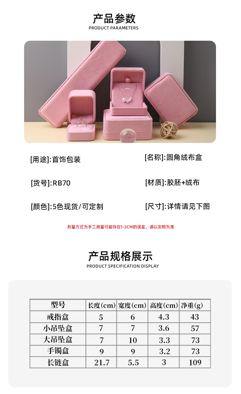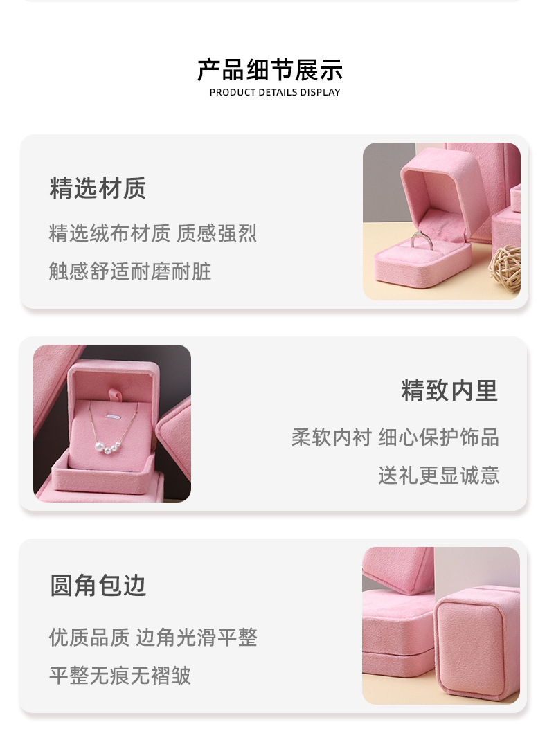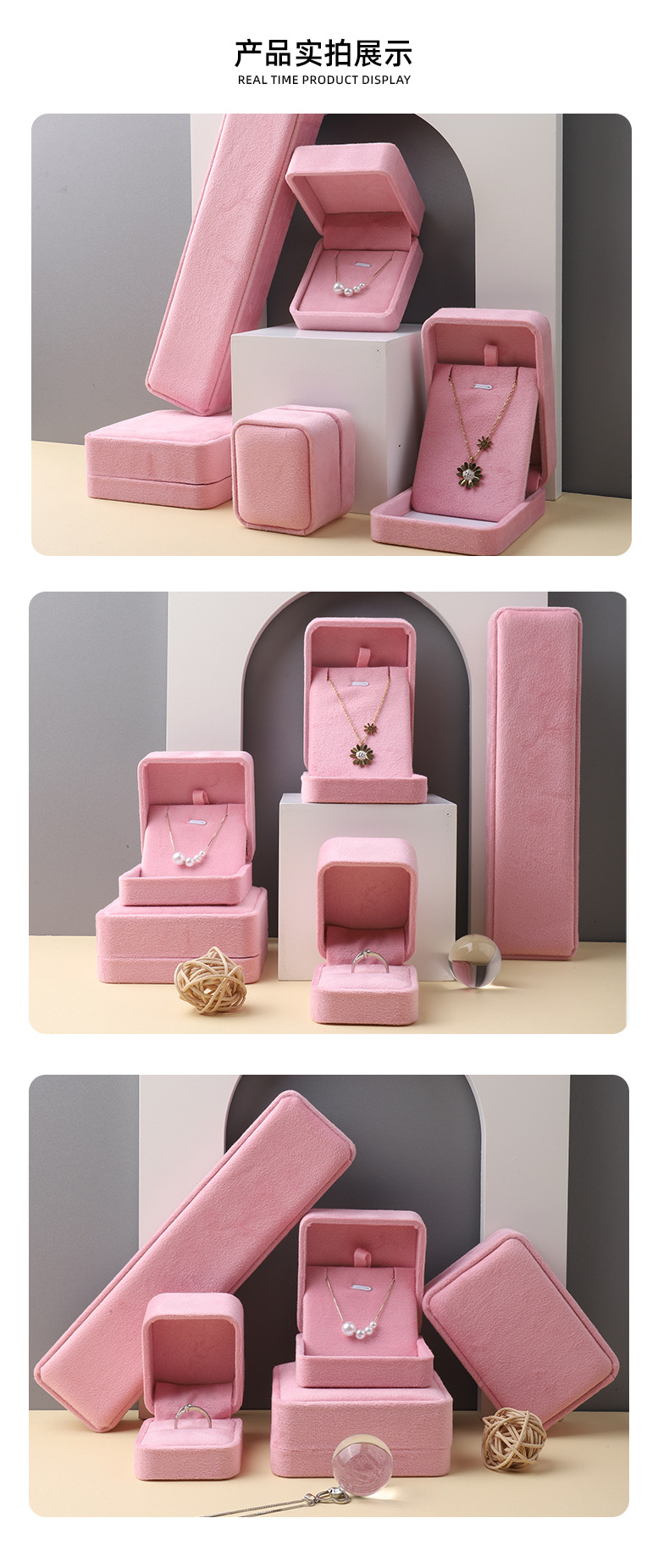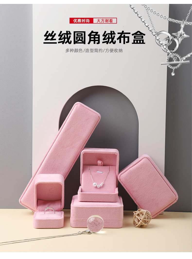 Caja de joyería de terciopelo Lisi rosa de alta calidad transfronteriza a través de anillo clásico pulsera colgante caja de embalaje de joyería redondeada