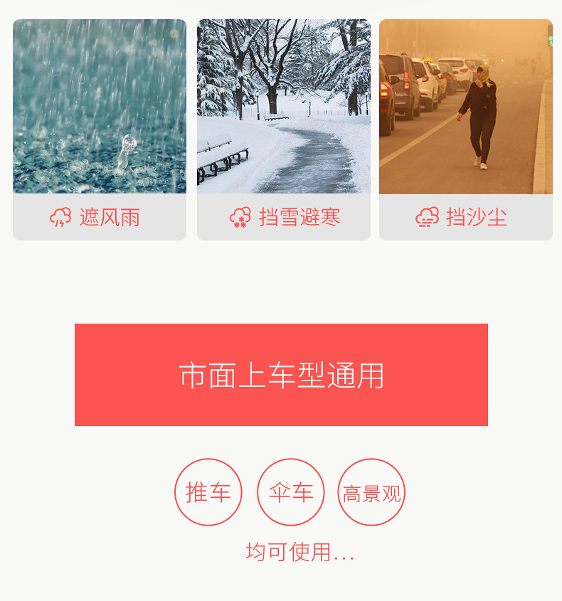 | Colores | Cubierta de lluvia transparente de malla lateral universal,Cubierta de lluvia esmerilada de malla lateral universal,Pequeño coche paraguas cubierta de lluvia (pvc) |