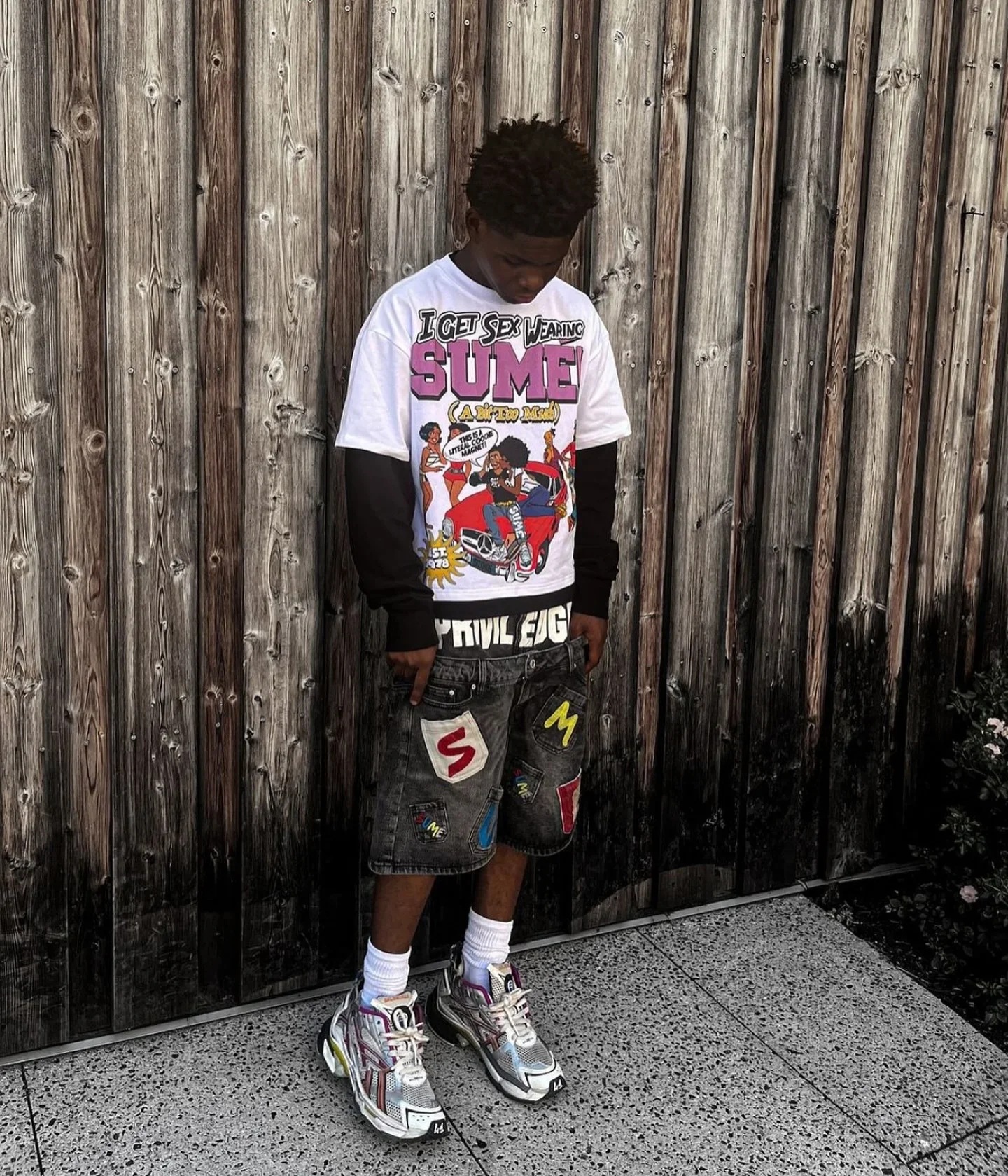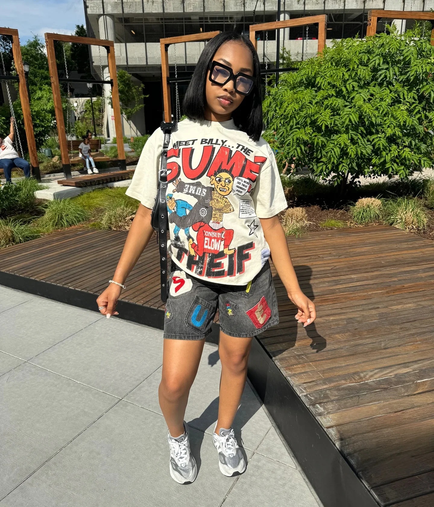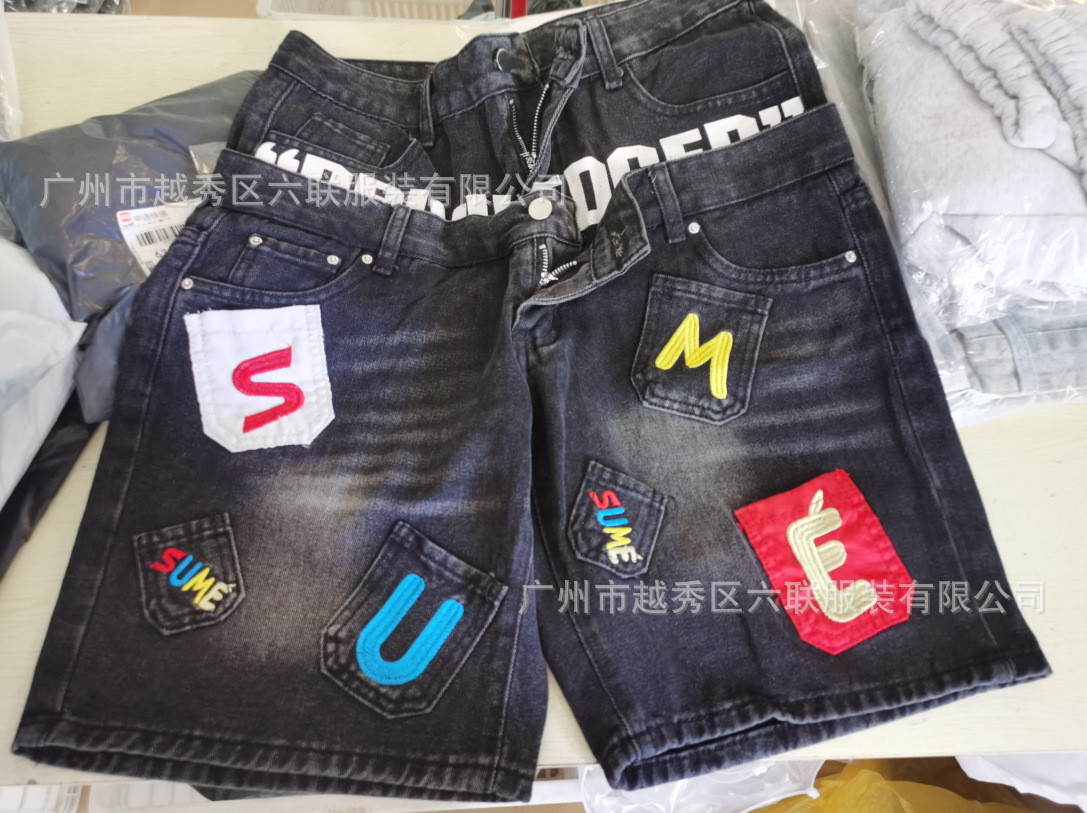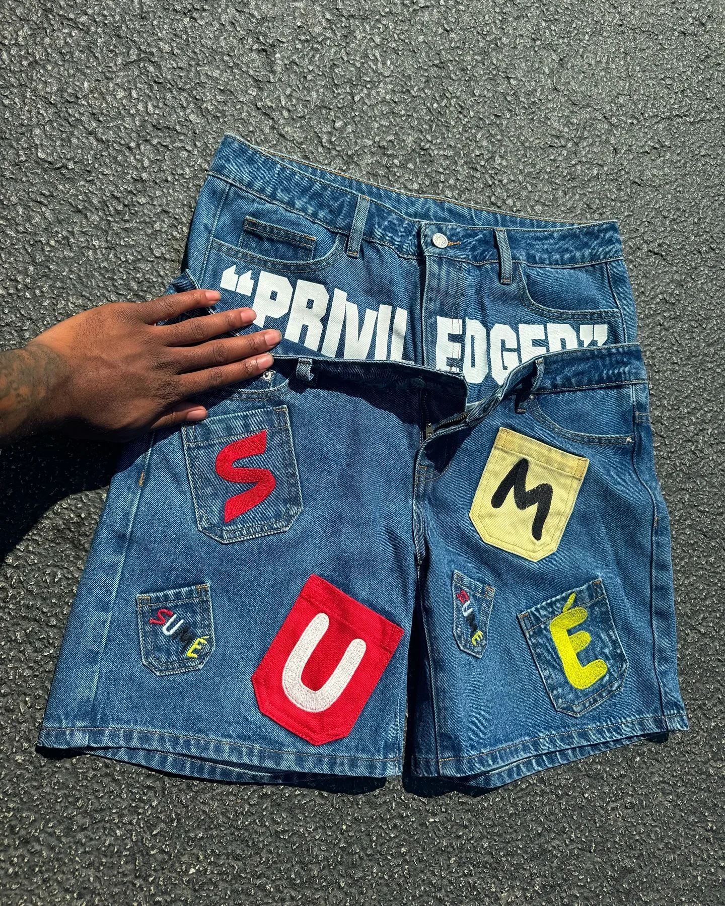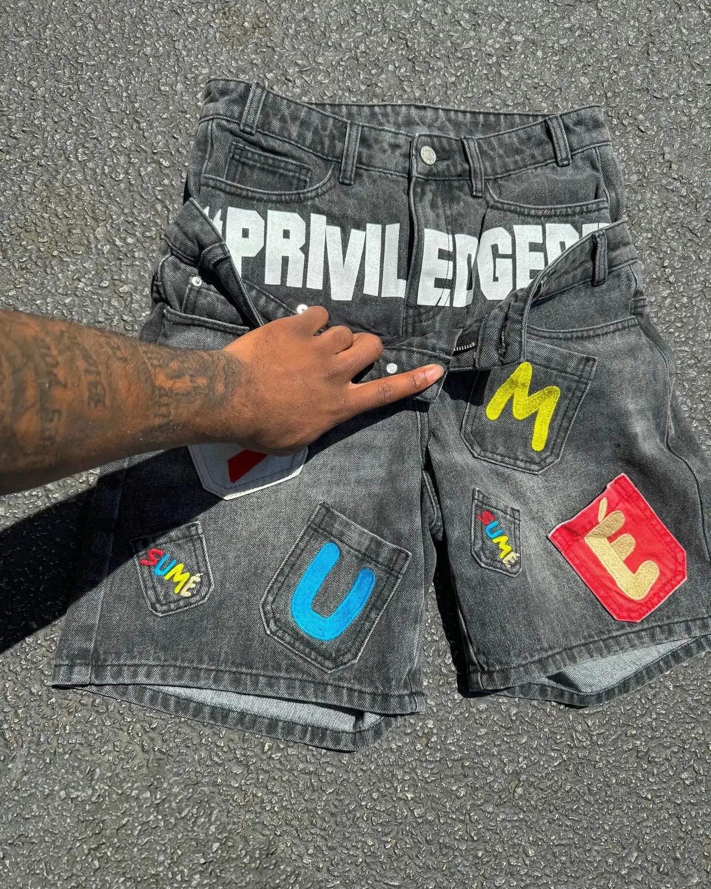 Pantalones cortos de mezclilla con costuras de letras de hip-hop europeo y americano, verano milenario, personalidad retro, moda, dos piezas de rock gótico falso