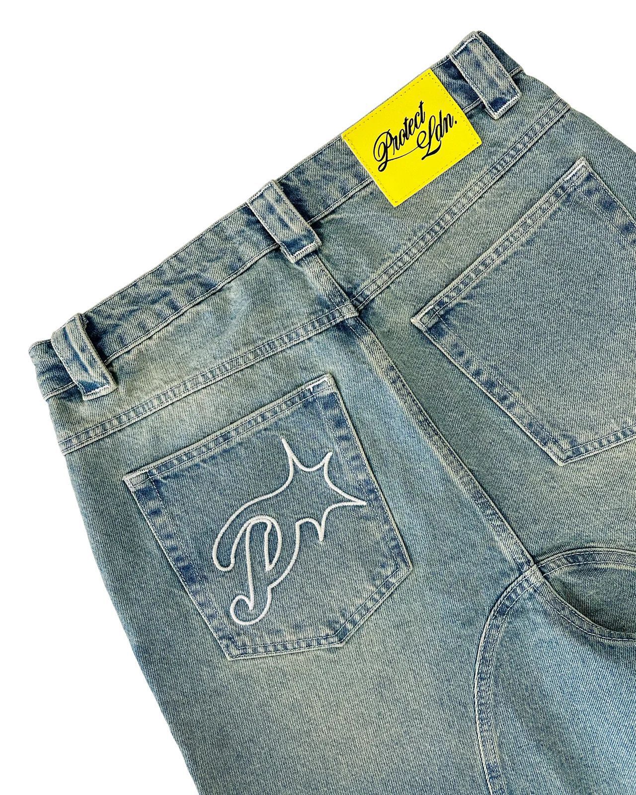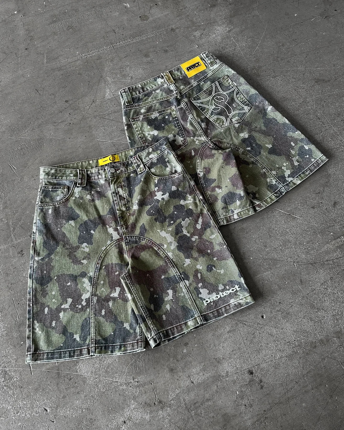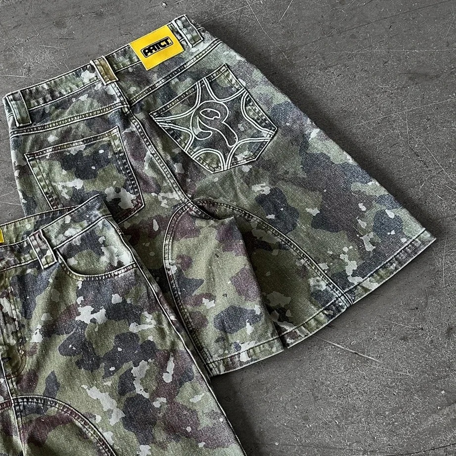 Europa y América Tren transfronterizo retro casual americano bordado callejero tendencia suelta Harajuku lavado mezclilla pantalones cortos verano