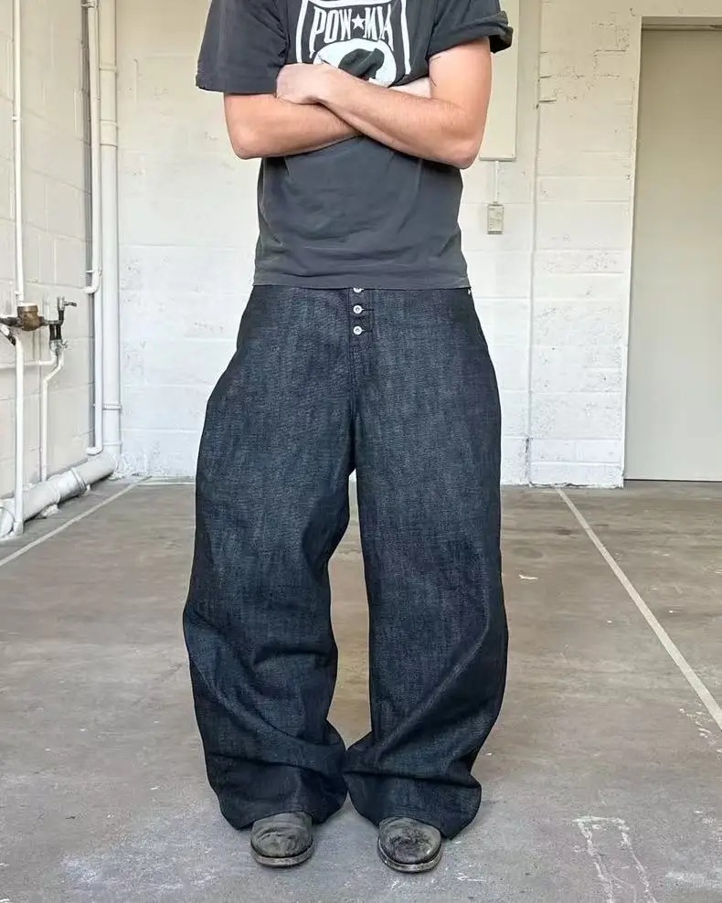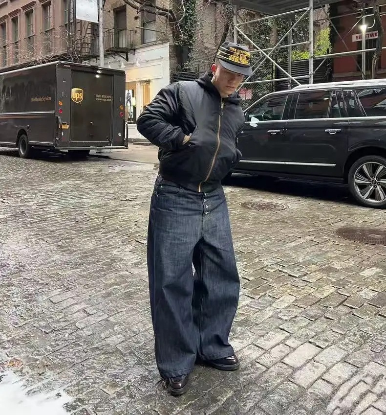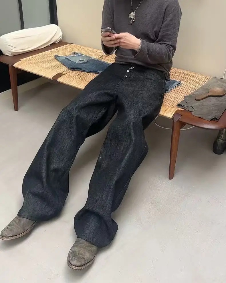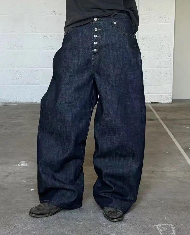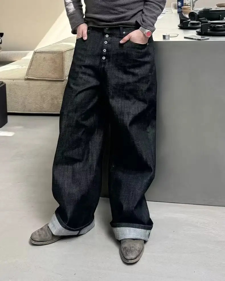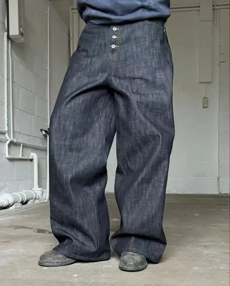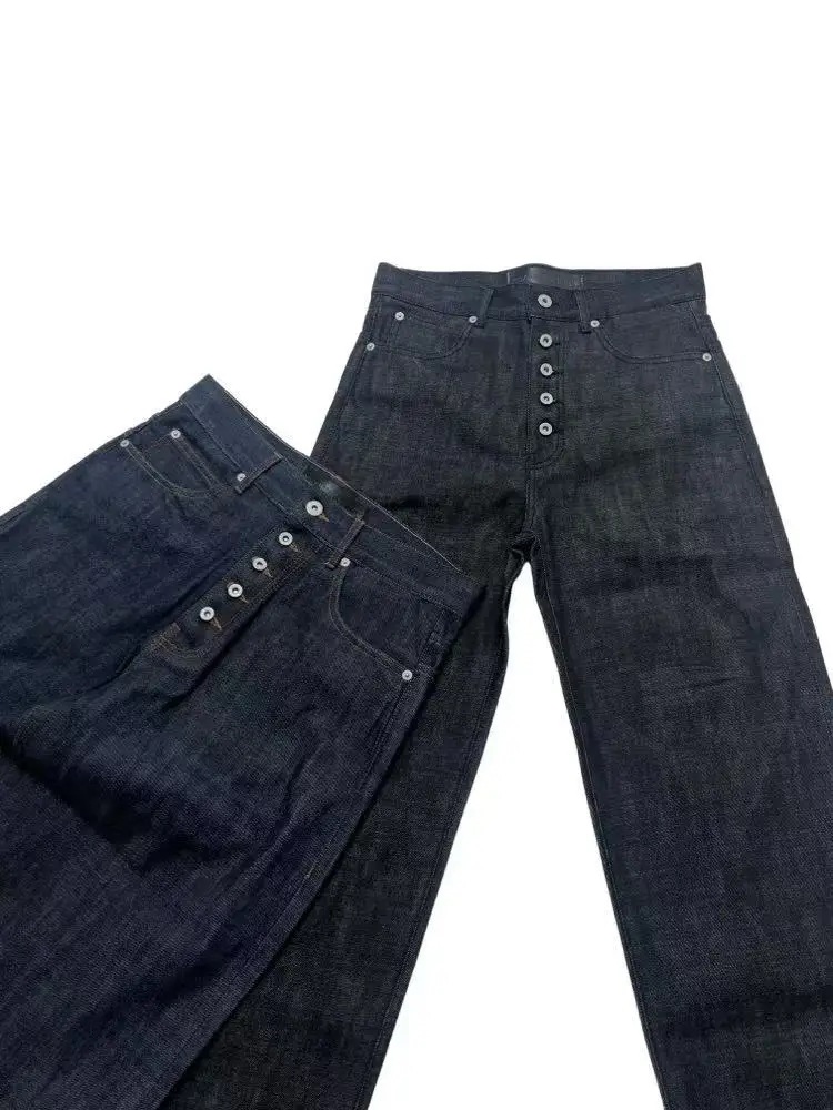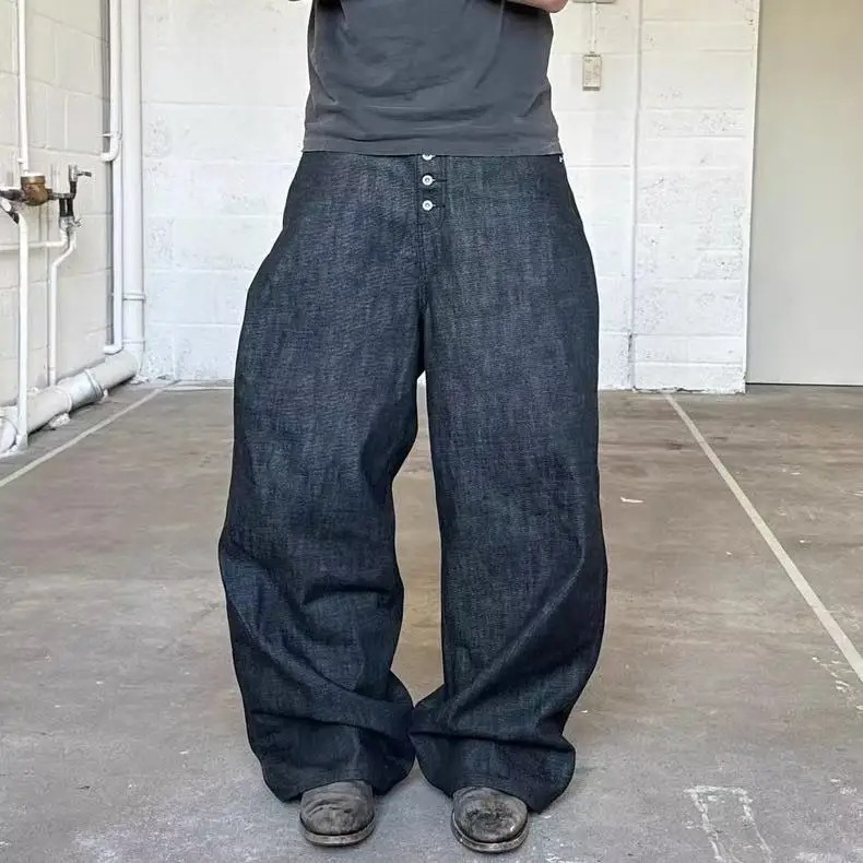 Europa y Estados Unidos transfronterizos retro estilo americano alta tendencia de la calle botones personales jeans de color sólido casual pantalones de piernas largas