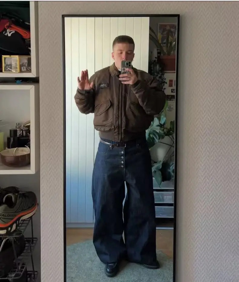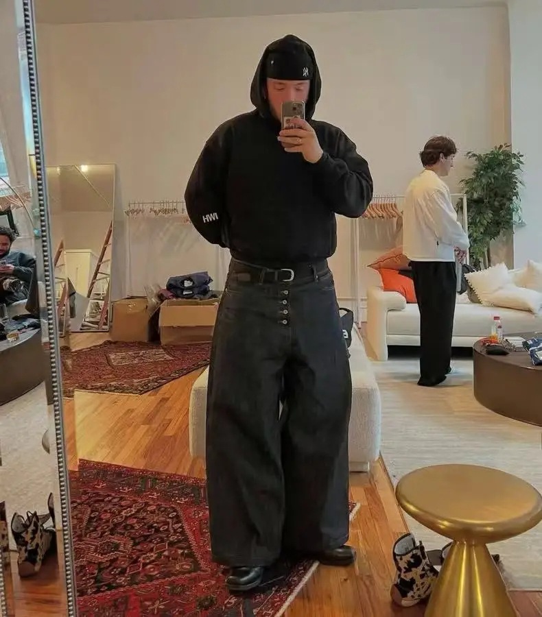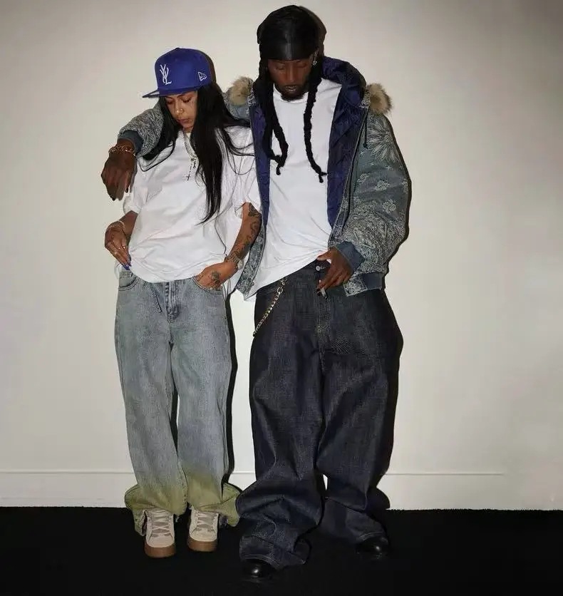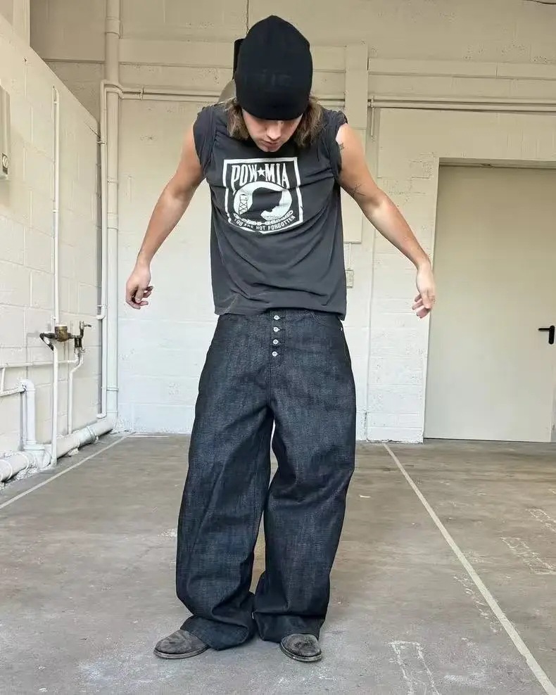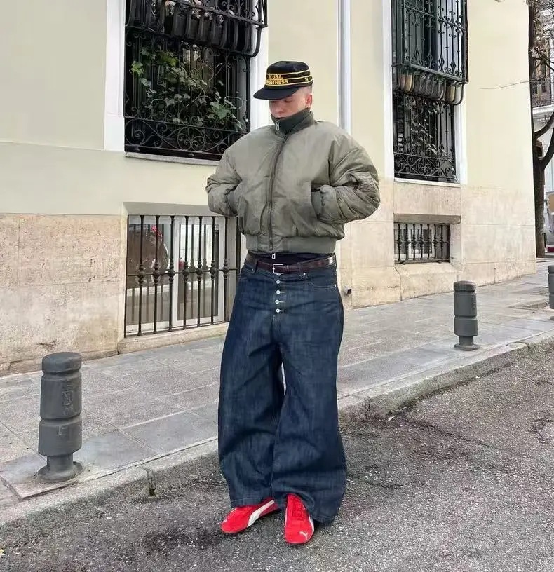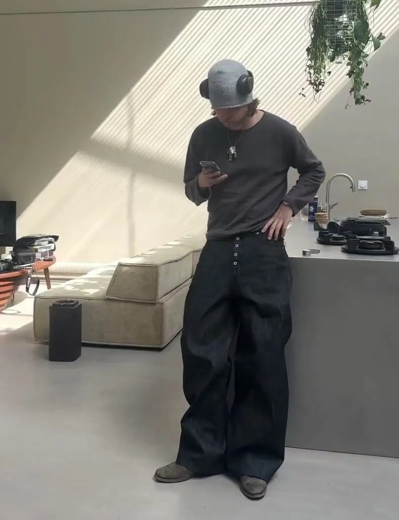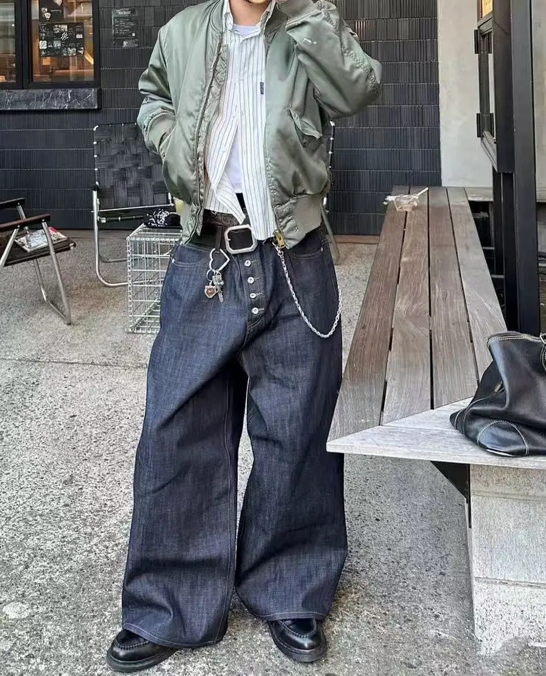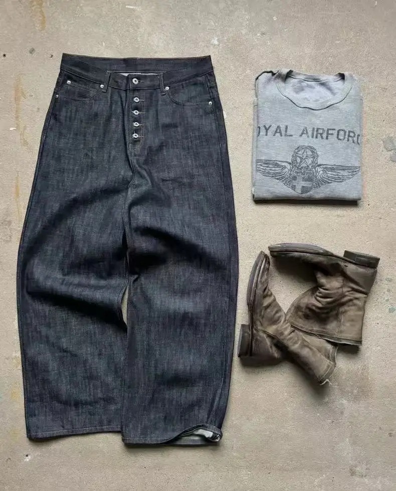 Europa y Estados Unidos transfronterizos retro estilo americano alta tendencia de la calle botones personales jeans de color sólido casual pantalones de piernas largas