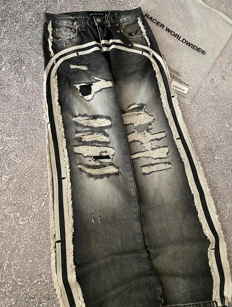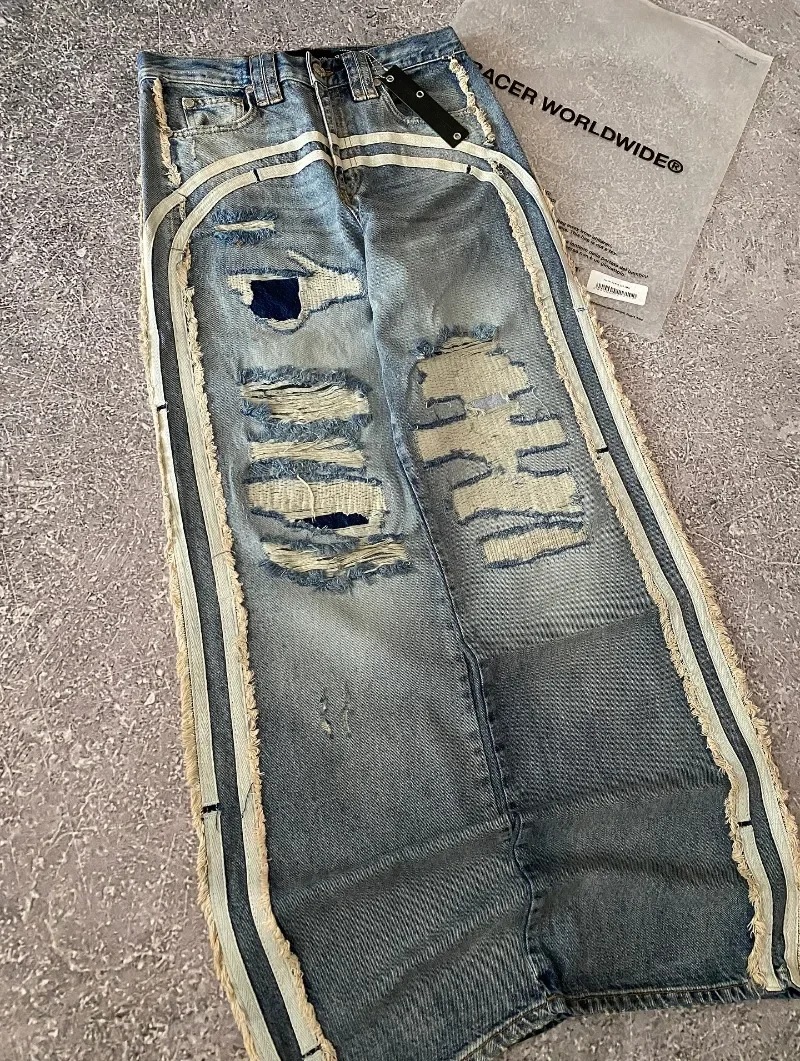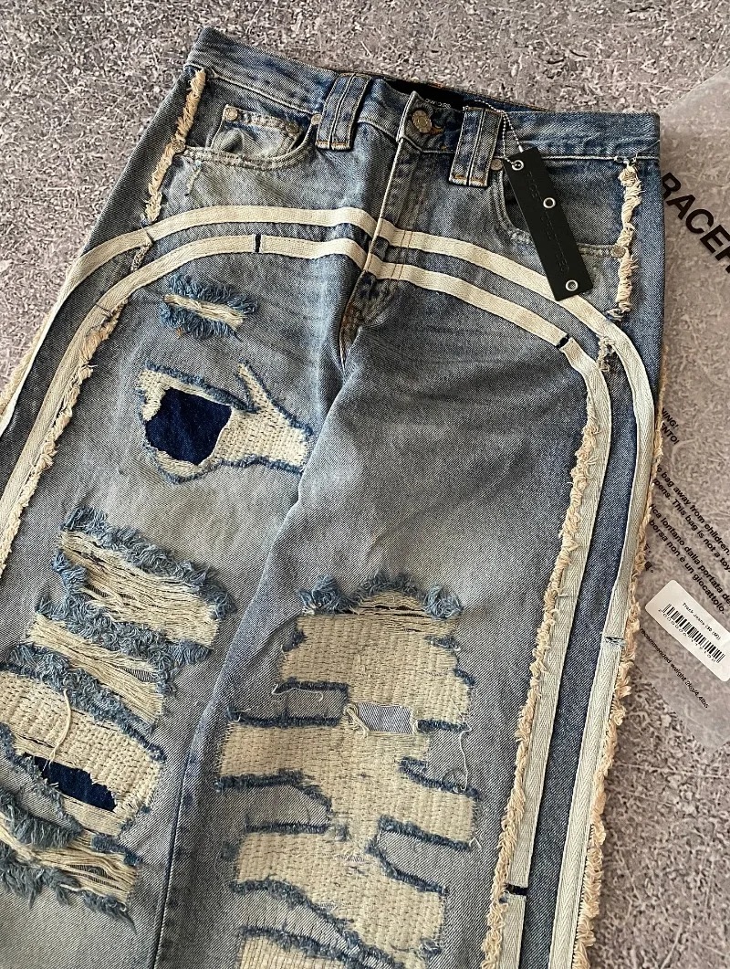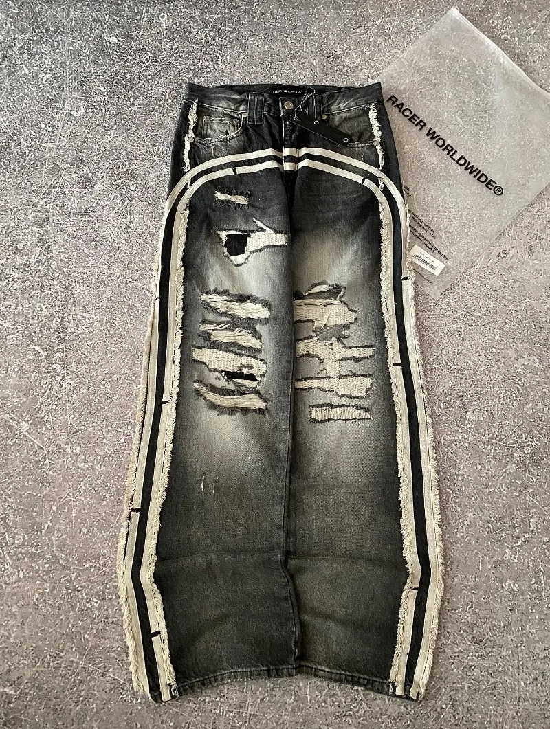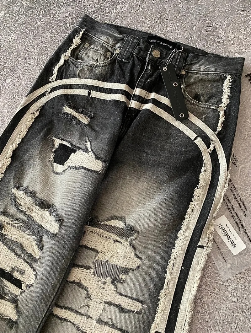 Europa y Estados Unidos transfronterizos retro gótico americano Harajuku y2k personalidad estilo callejero agujeros jeans casuales pantalones de piernas