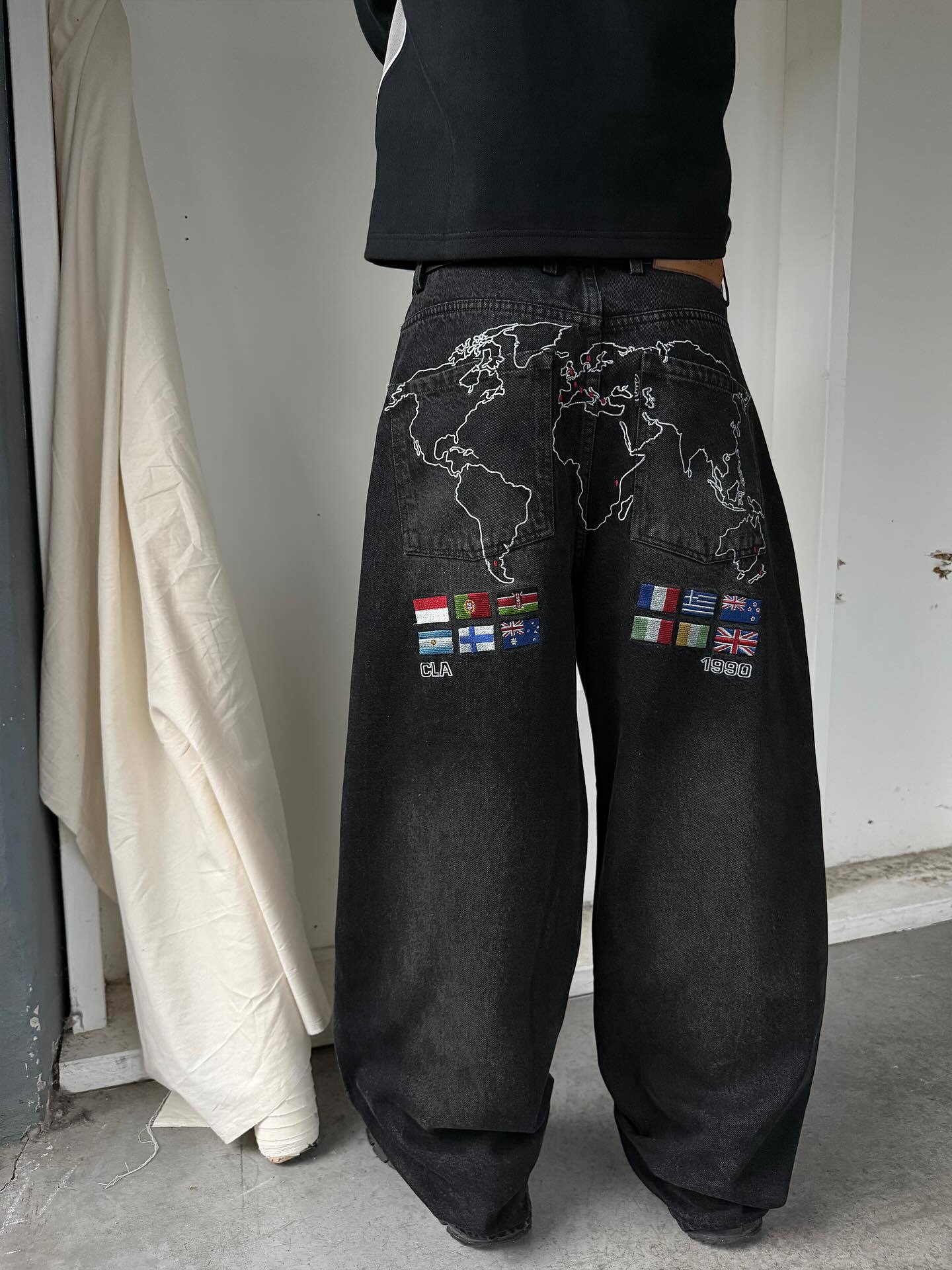 Europa y Estados Unidos transfronterizos estilo americano de la personalidad de la calle alta tendencia retro bordado jeans de moda y2k pantalones relajados casuales