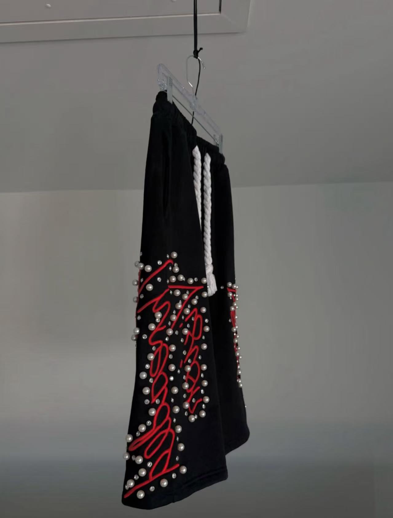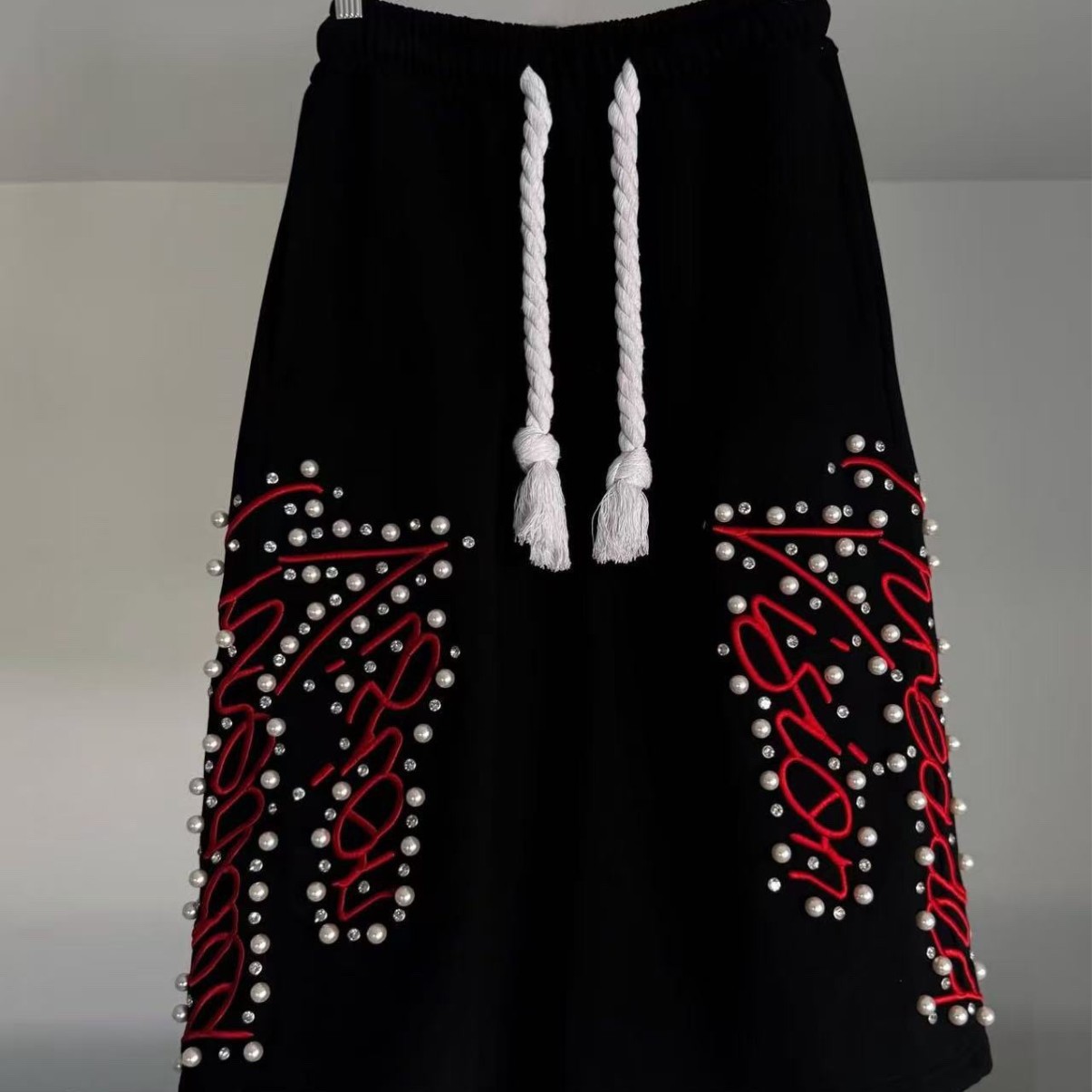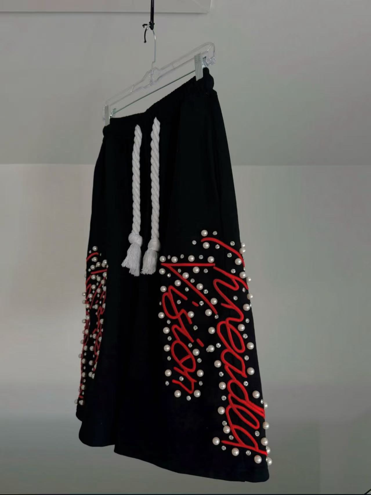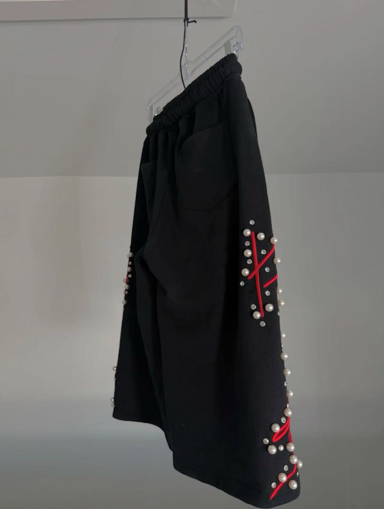Pantalones cortos transfronterizos europeos y americanos, artesanía pesada de calle alta, bordados con cuentas, pantalones cortos casuales sueltos de moda, estilos calientes para hombres y mujeres