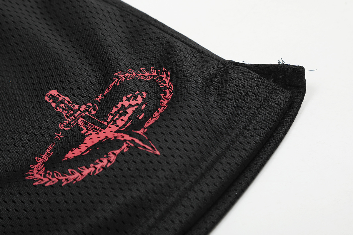Corteiz retro transpirable verano con cordón de malla pantalones de cinco puntos pantalones cortos sueltos casuales de pierna ancha para hombre 2025