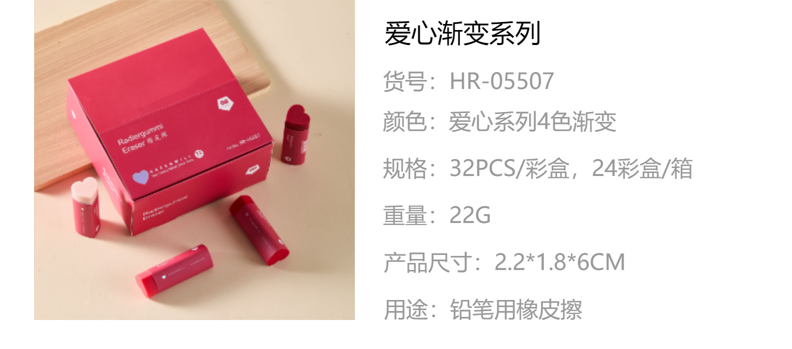 Eraser de San Valentín Eraser creativo Eraser de lápiz para estudiantes de escuela primaria sin marcas ECO PVC arte amor gradiente