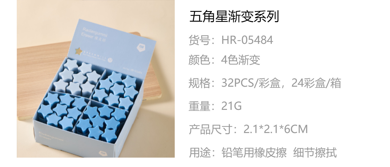 El pegamento de la estrella de pentagrama es bueno, la goma de borrar de color gradiente de los estudiantes de jardín de infantes con un conjunto real de goma de borrar limpia y sin marcas.