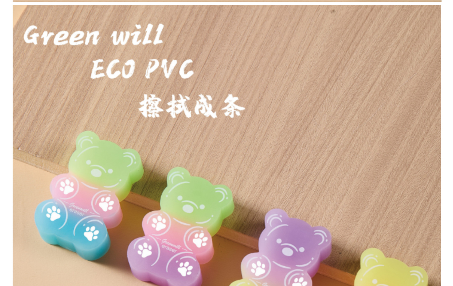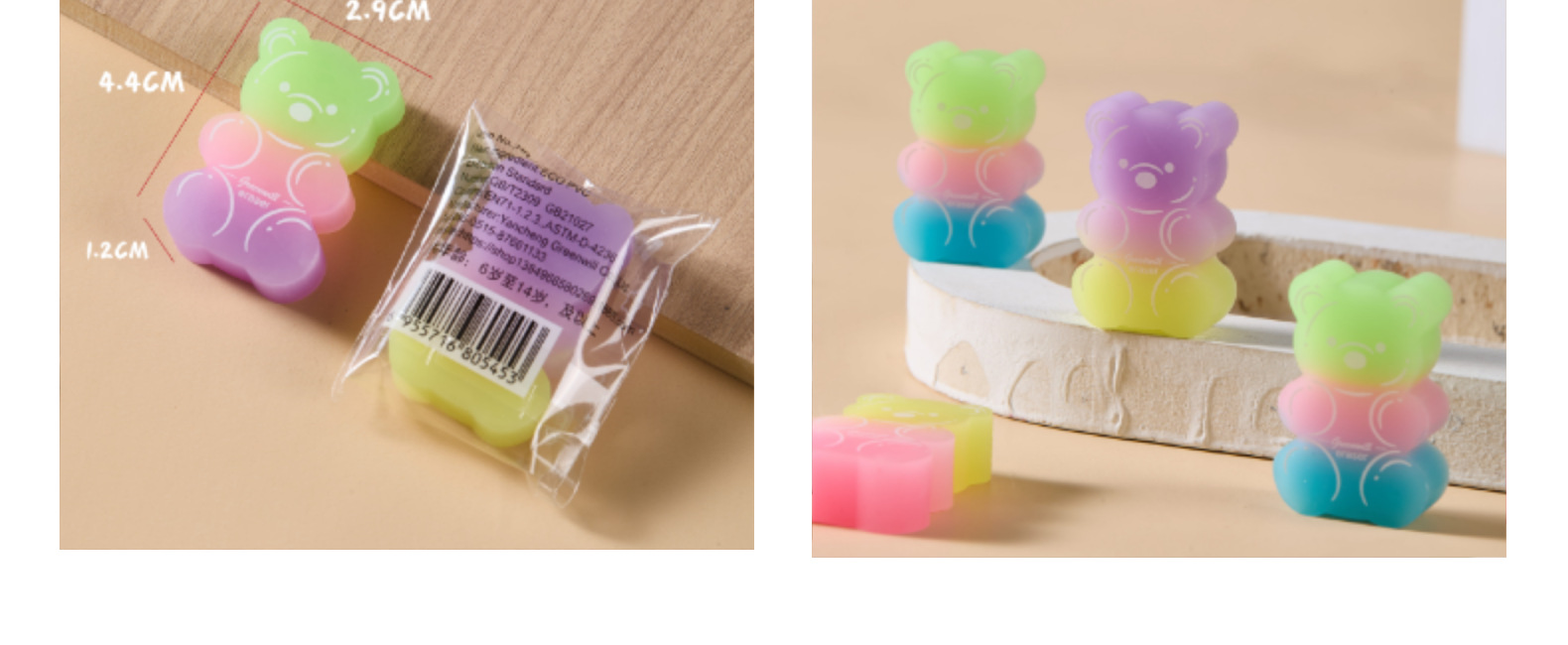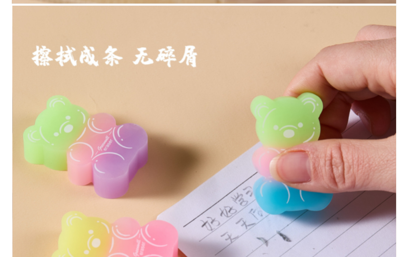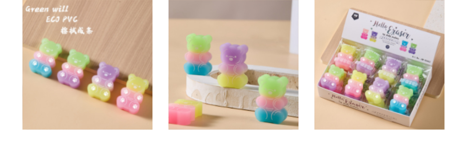 Borrador de oso Borrador de PVC ECO Limpiar sin caspa en tiras de color caramelo Borrador de arte para estudiantes