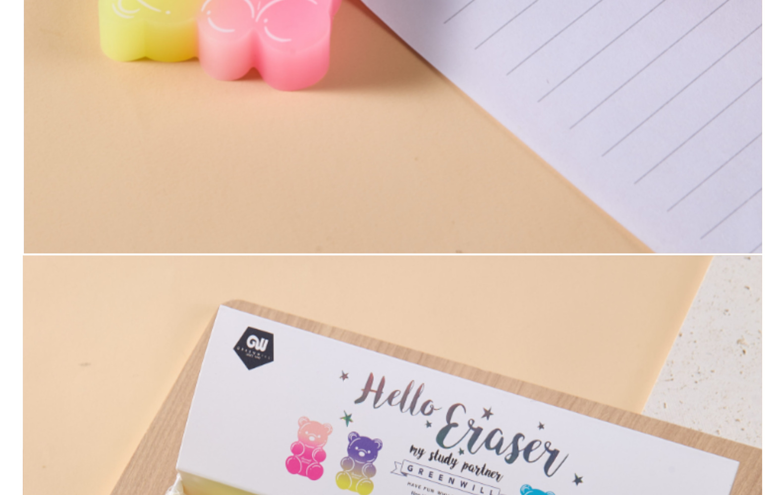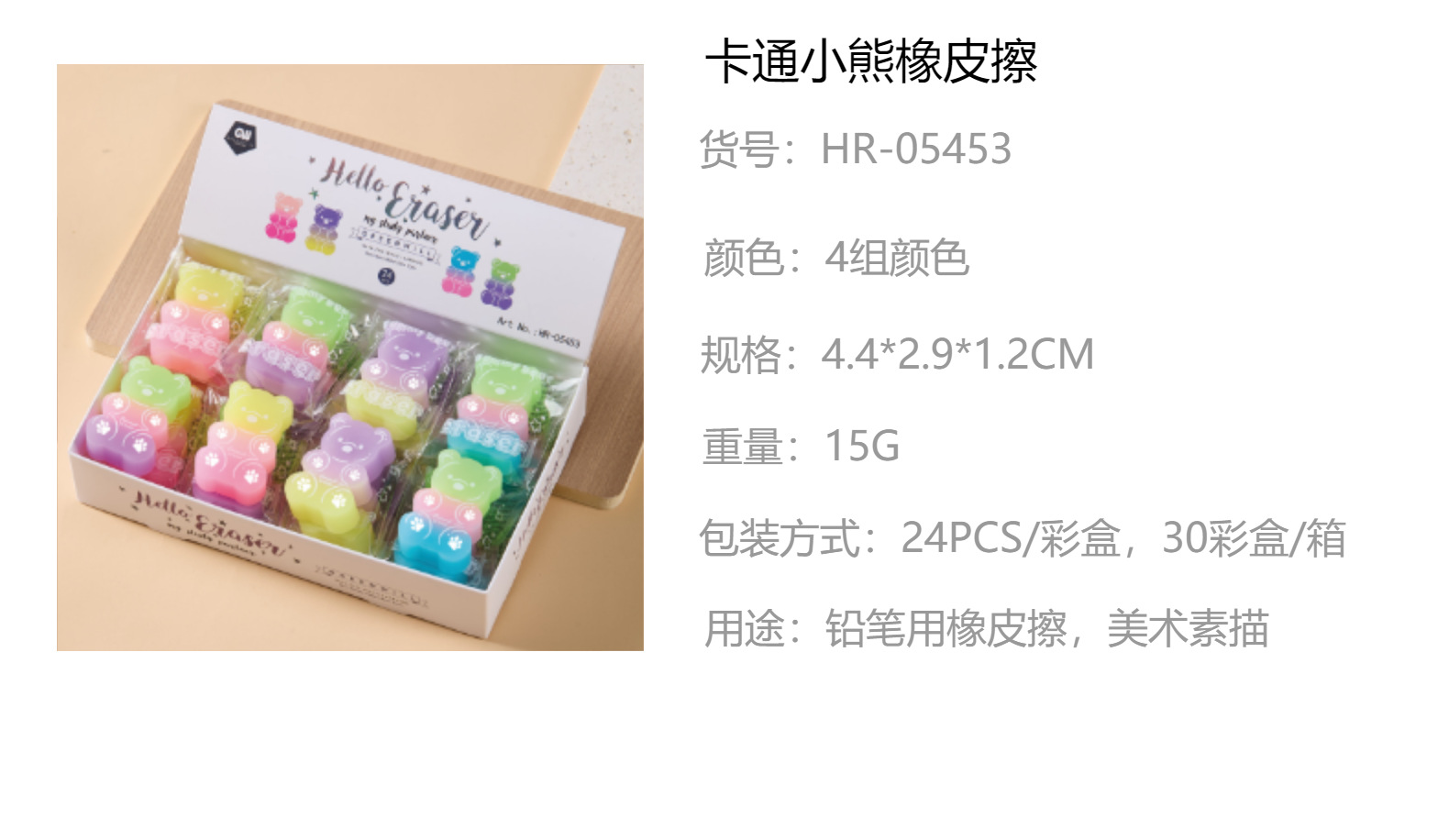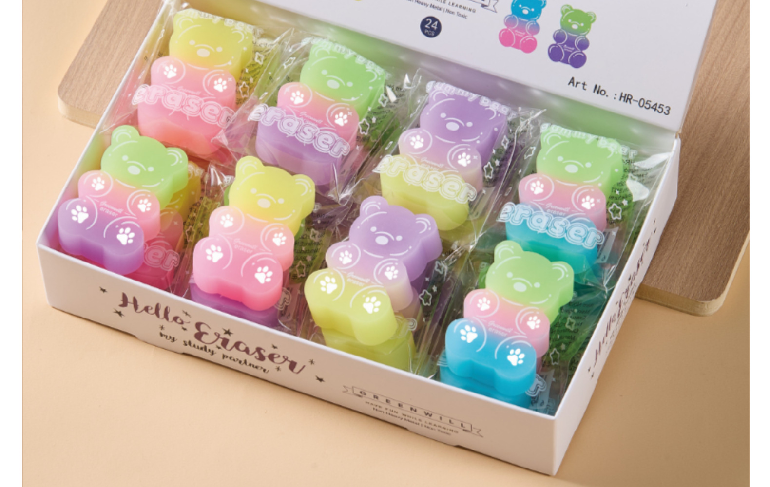 Borrador de oso Borrador de PVC ECO Limpiar sin caspa en tiras de color caramelo Borrador de arte para estudiantes