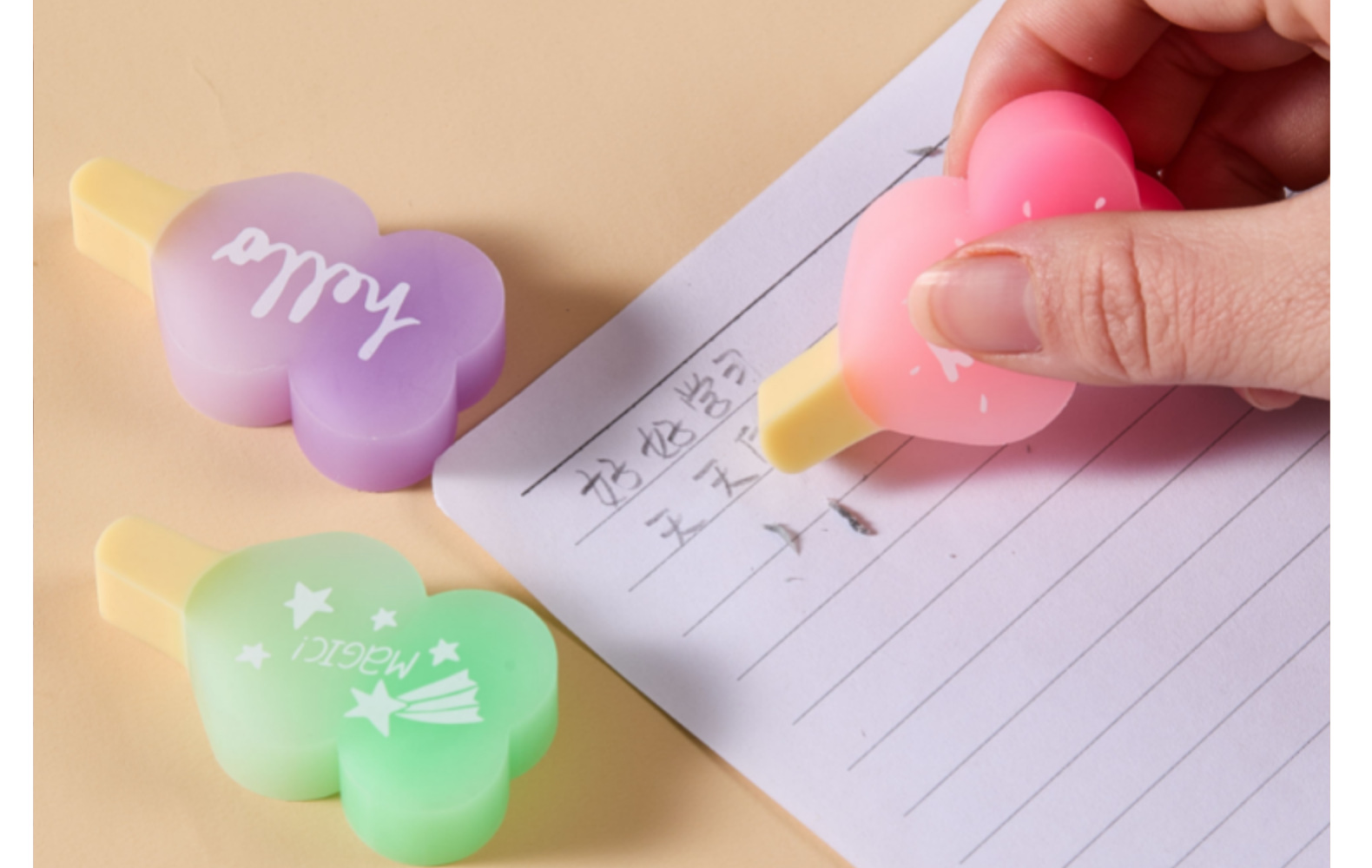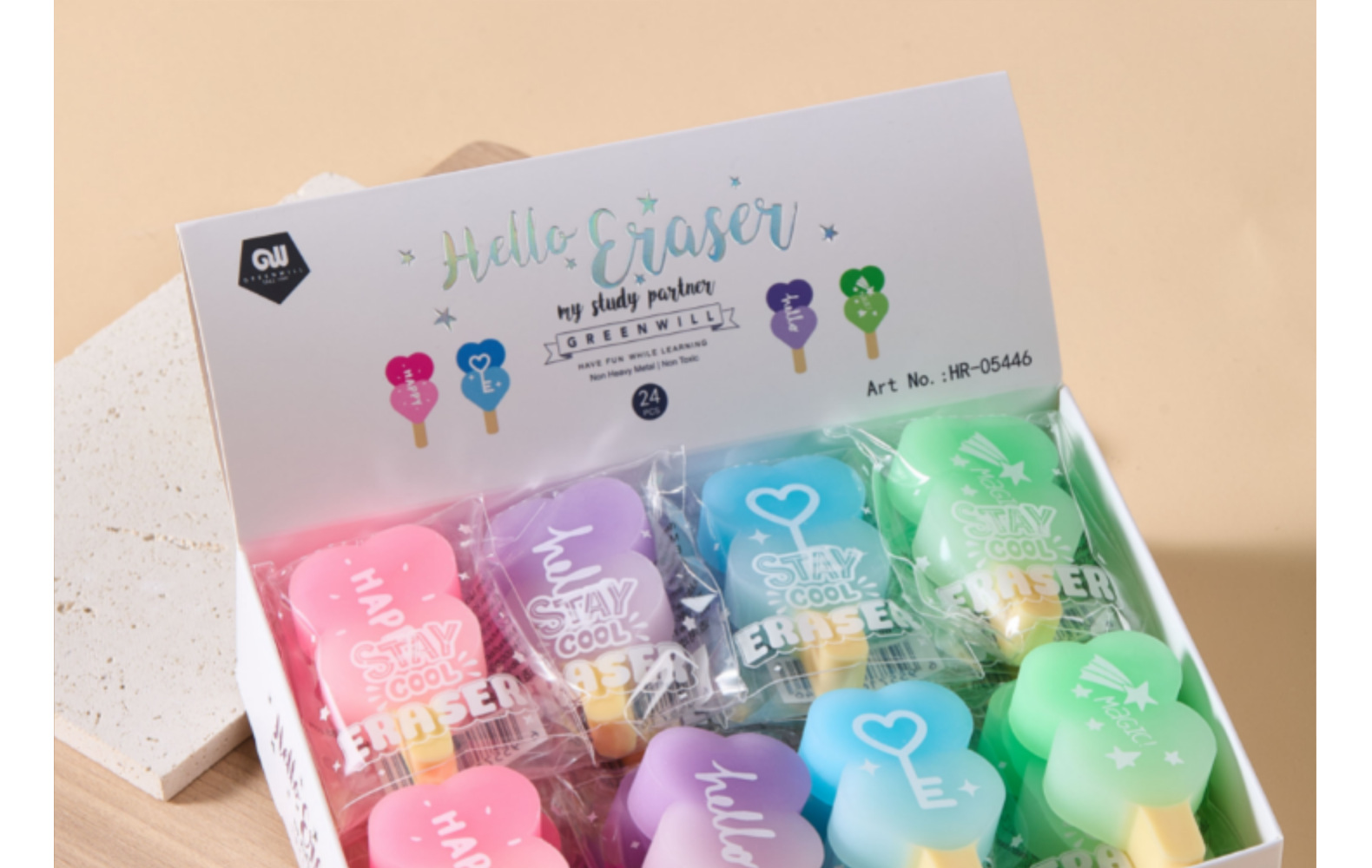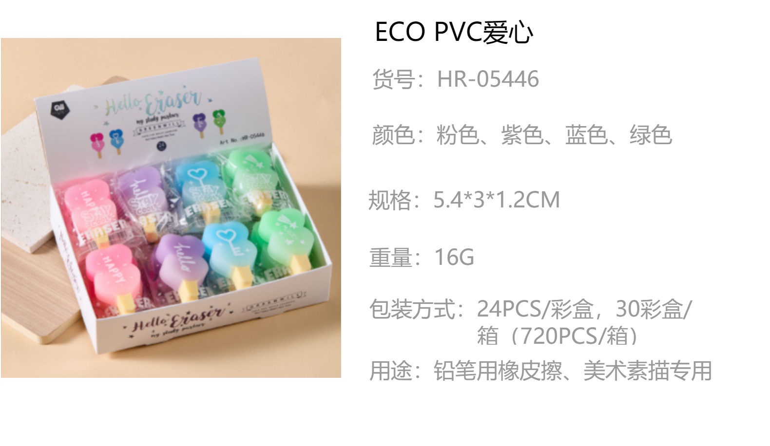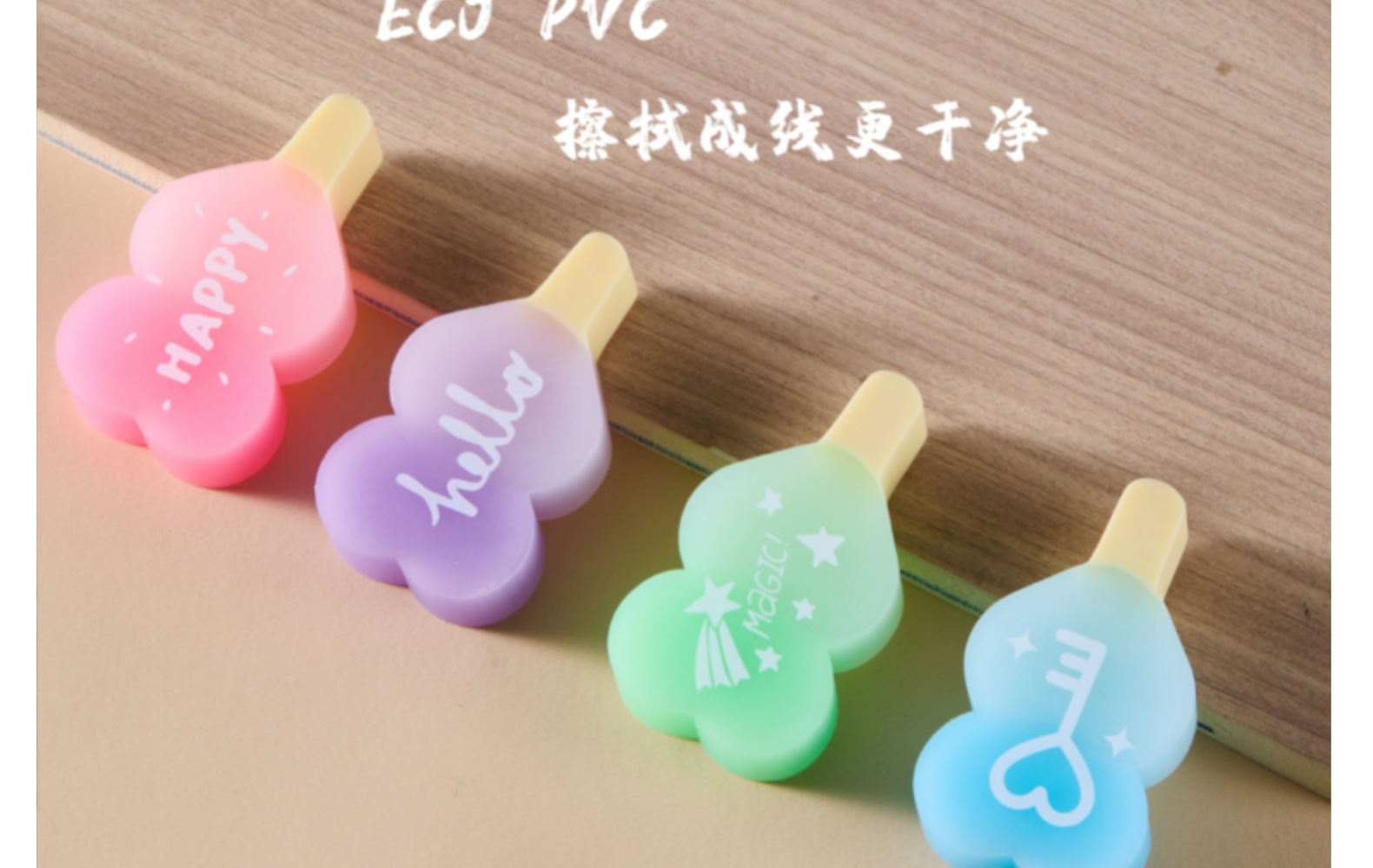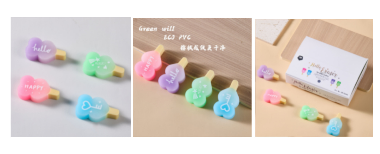 Borrador de amor de PVC ECO, menos migajas, dibujo de examen limpio, borrador de dibujo de arte para niños, color caramelo