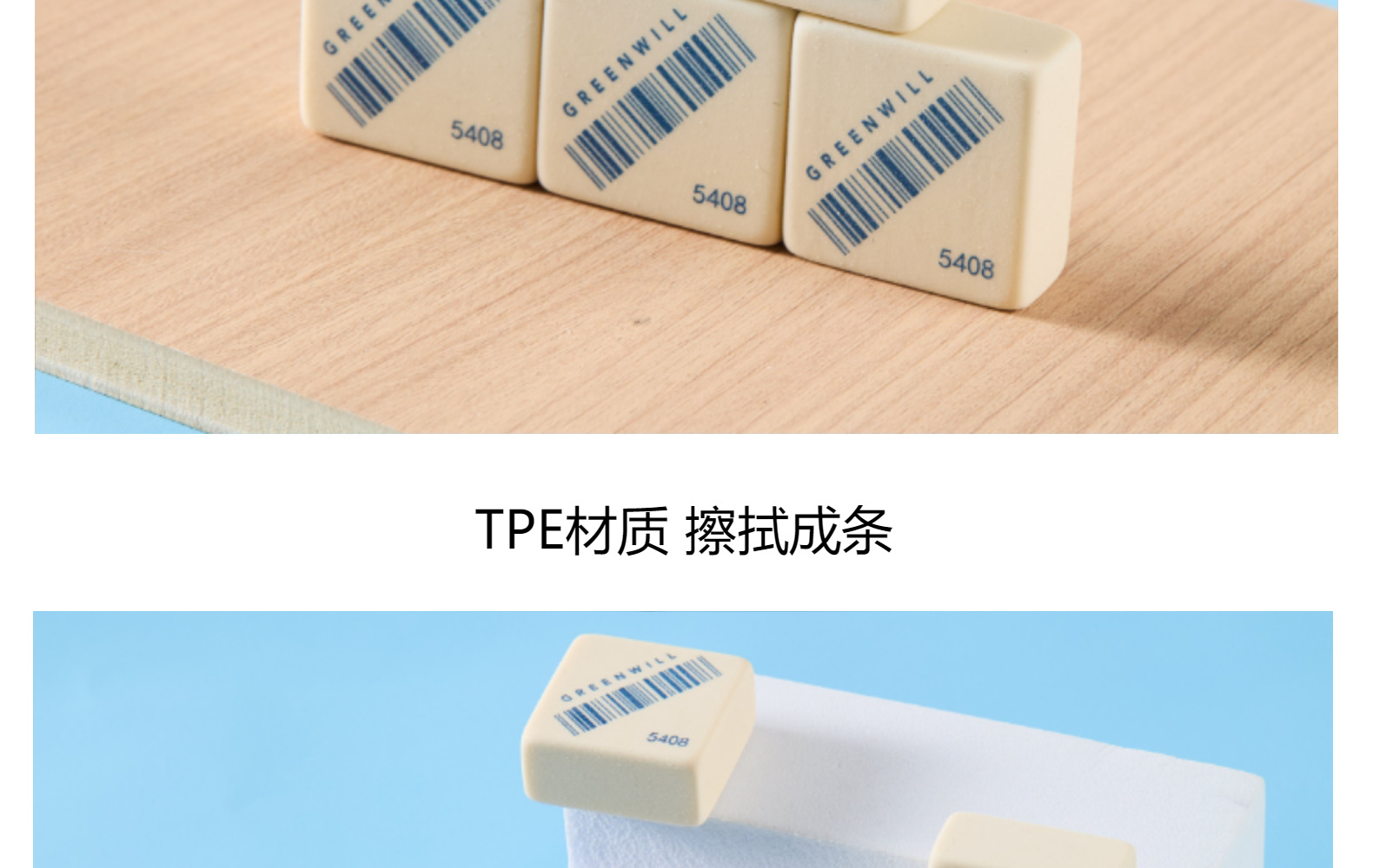 El cuadrado TPE es como una toallita para estudiantes, un borrador limpio, papelería al por mayor, una toallita sin caspa en una tira de arte