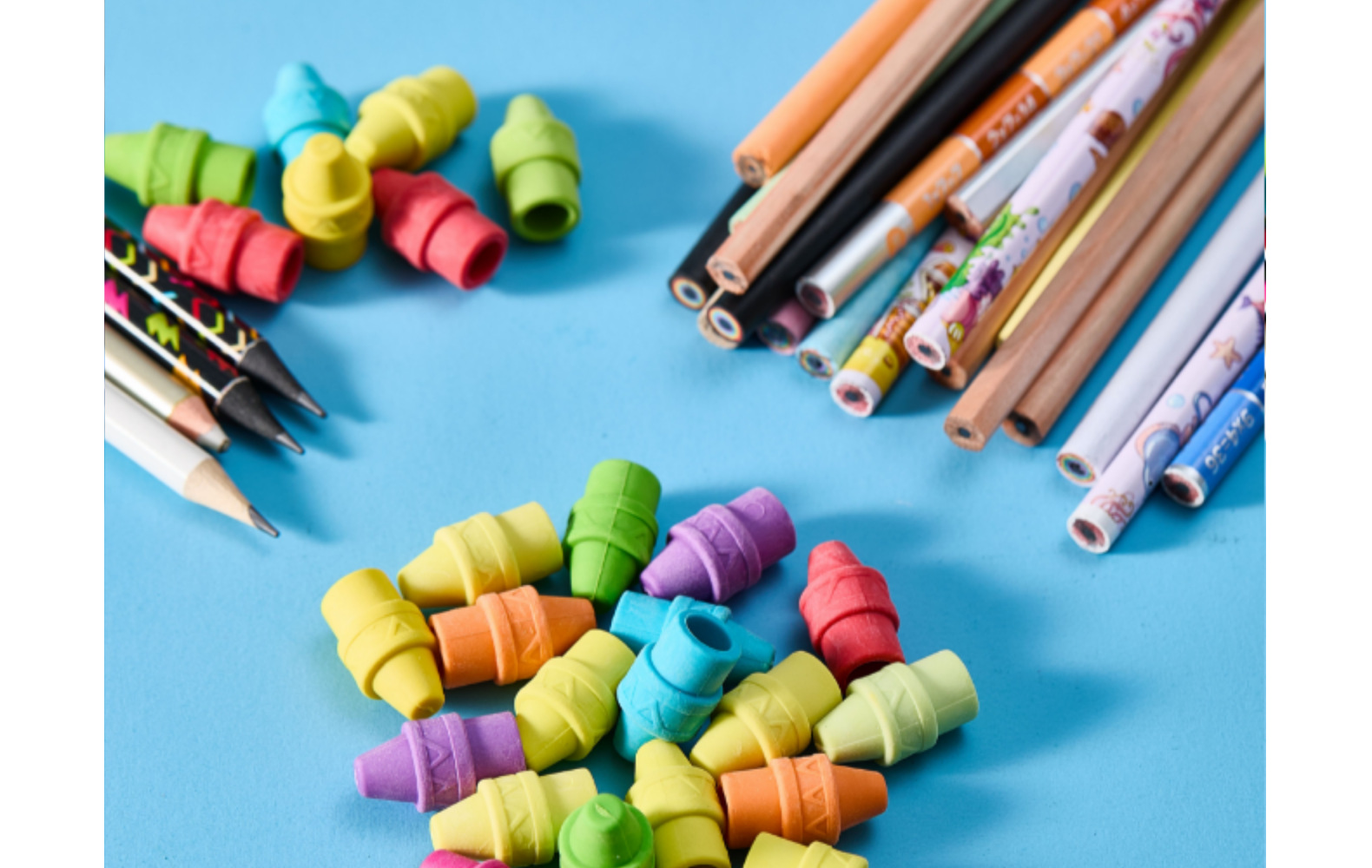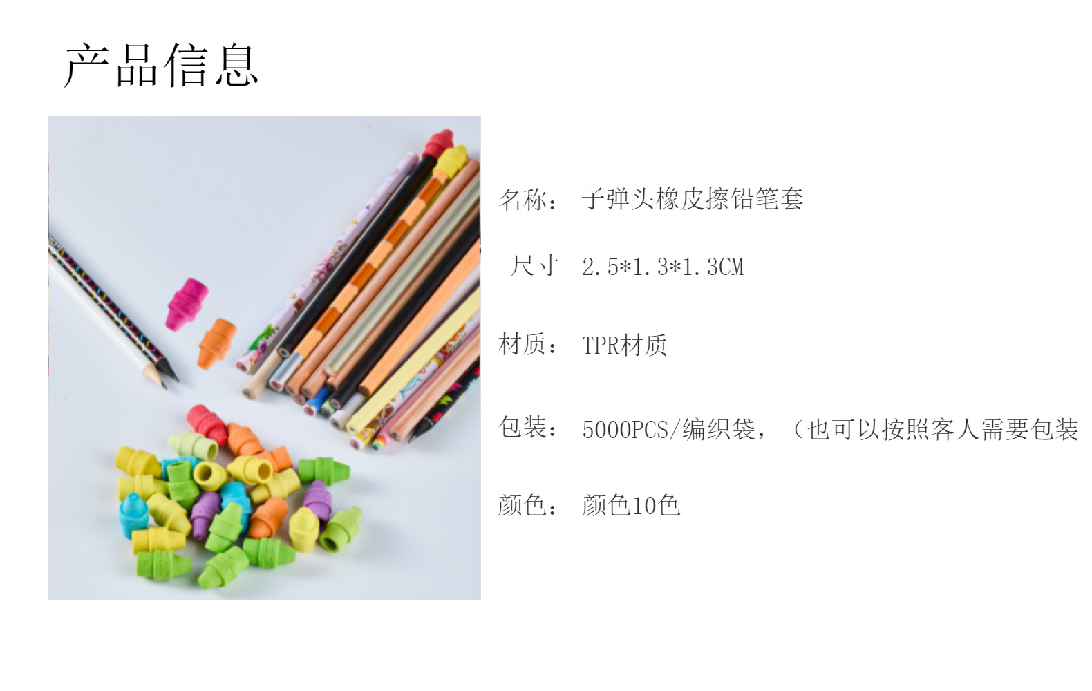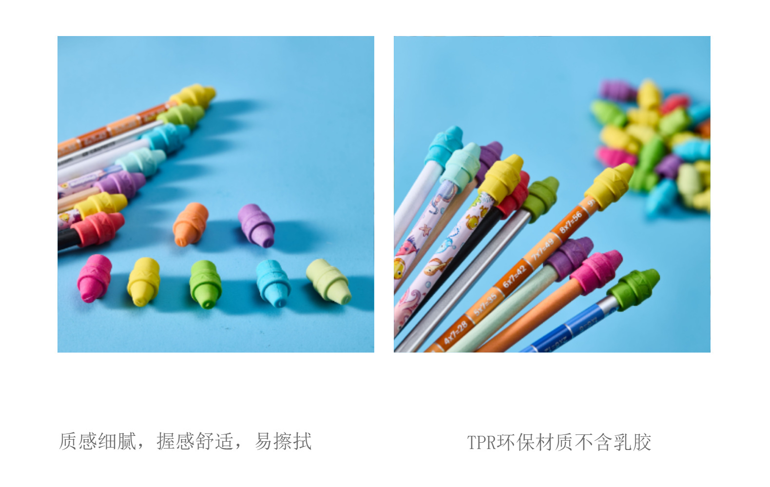 Cubierta de goma de cabeza de bala de color sin látex suave borracha cubierta de lápiz cubierta de lápiz cubierta de goma de cabeza de lápiz regalo