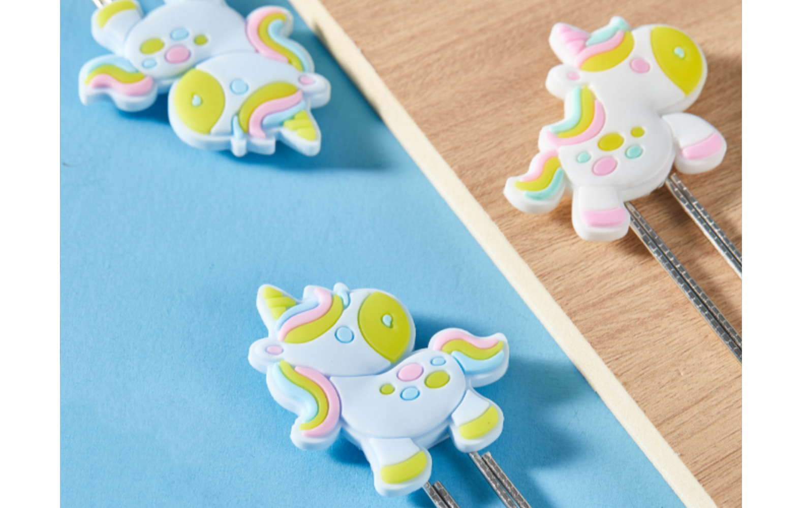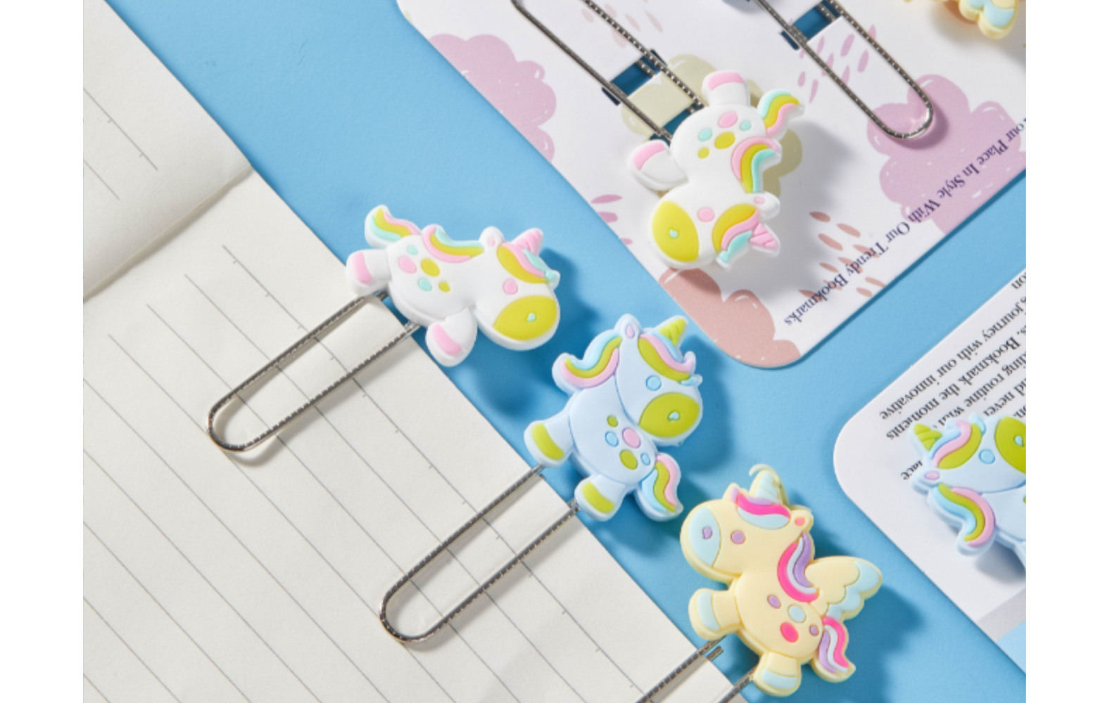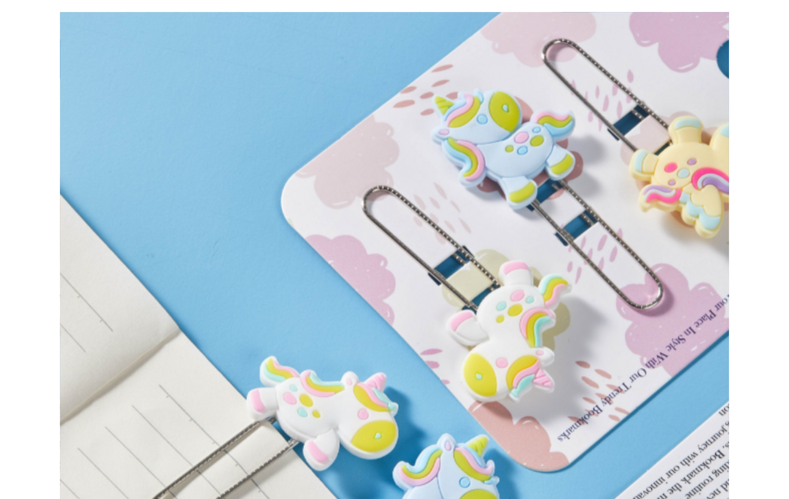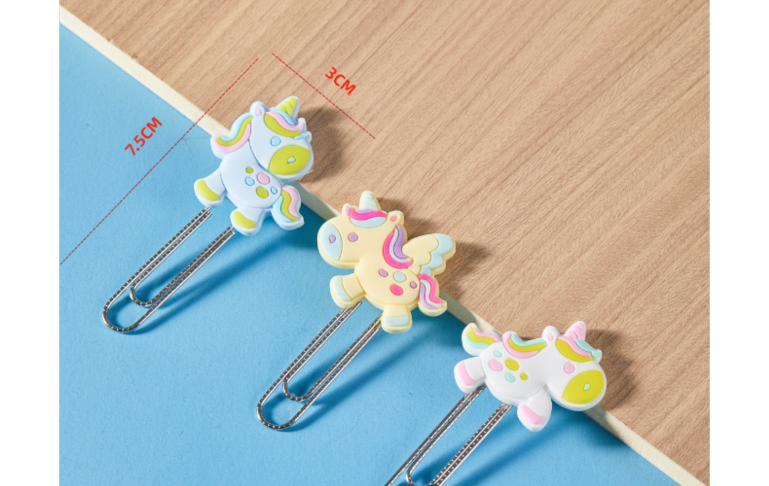 Unicornio de dibujos animados PVC pegamento blando clips de papel de prueba de estudiantes clips de marcadores clips para suministros de oficina clips de metal