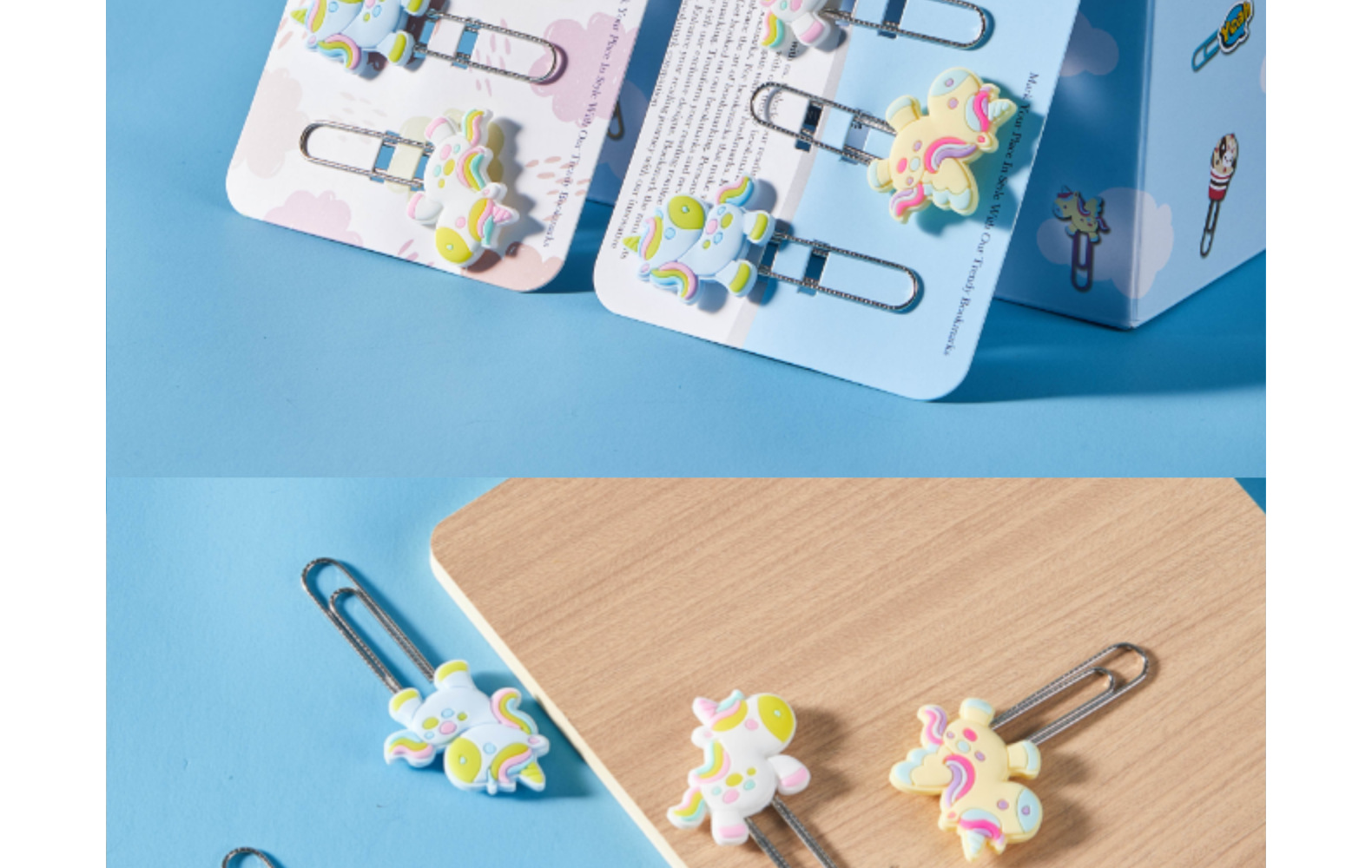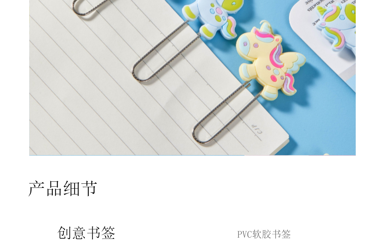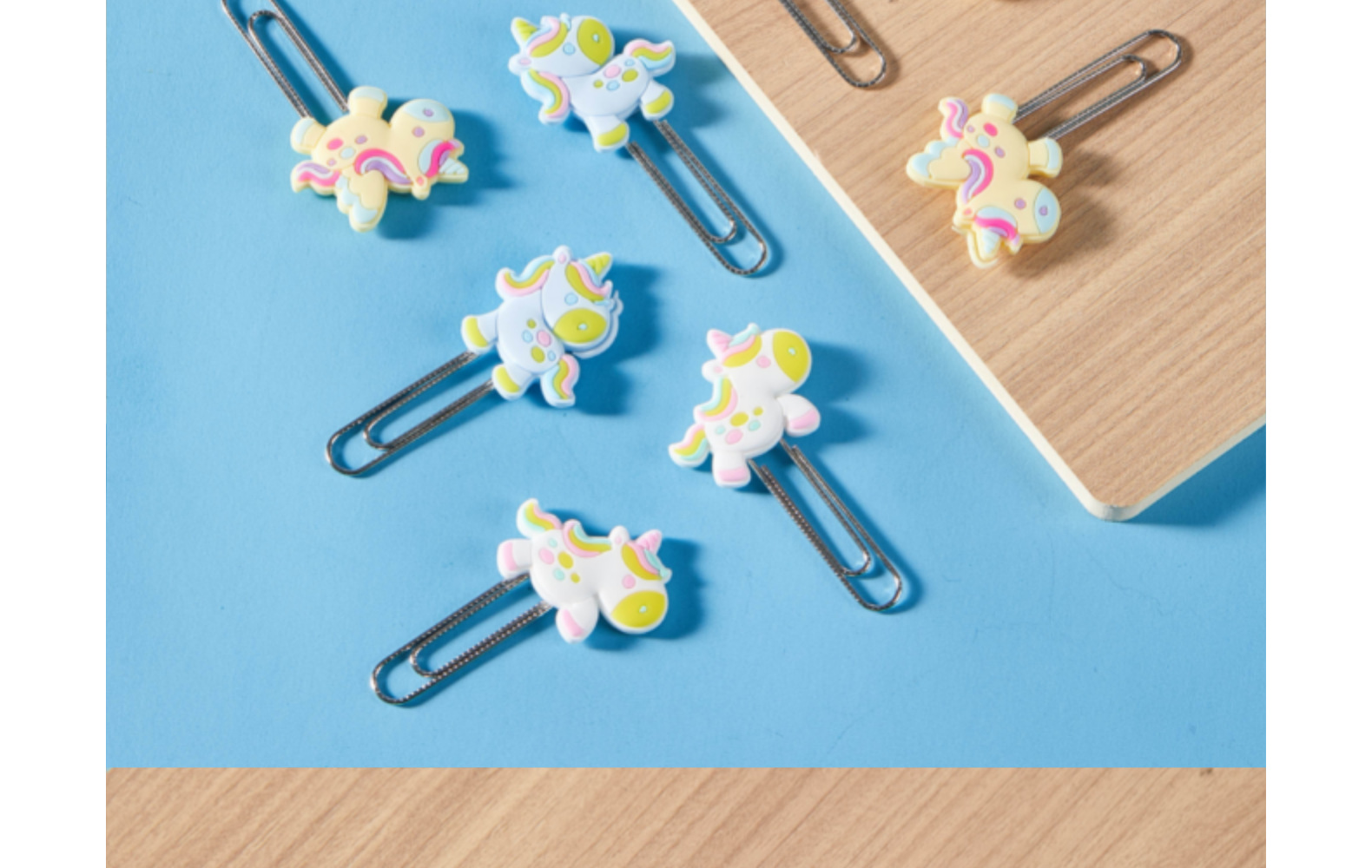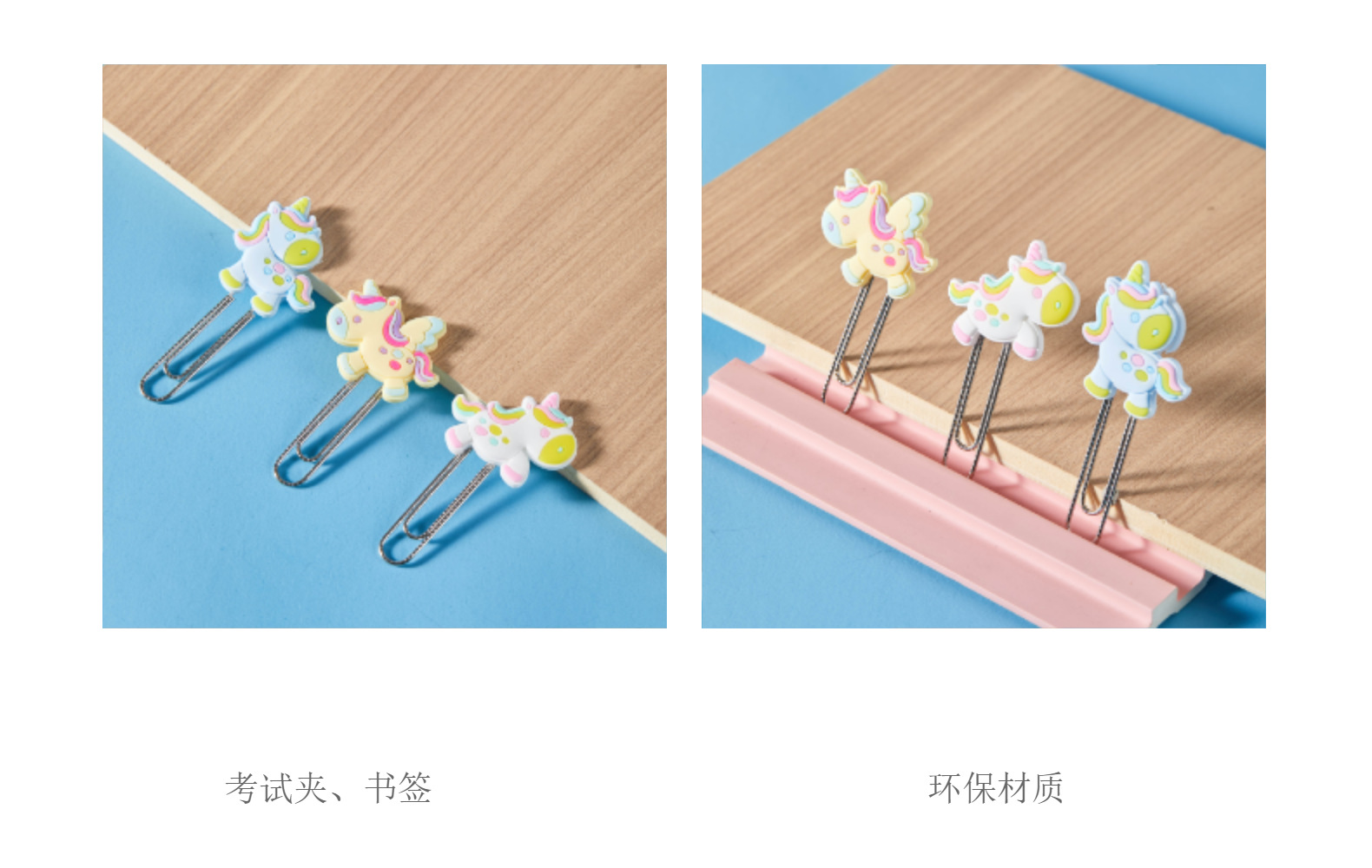 Unicornio de dibujos animados PVC pegamento blando clips de papel de prueba de estudiantes clips de marcadores clips para suministros de oficina clips de metal