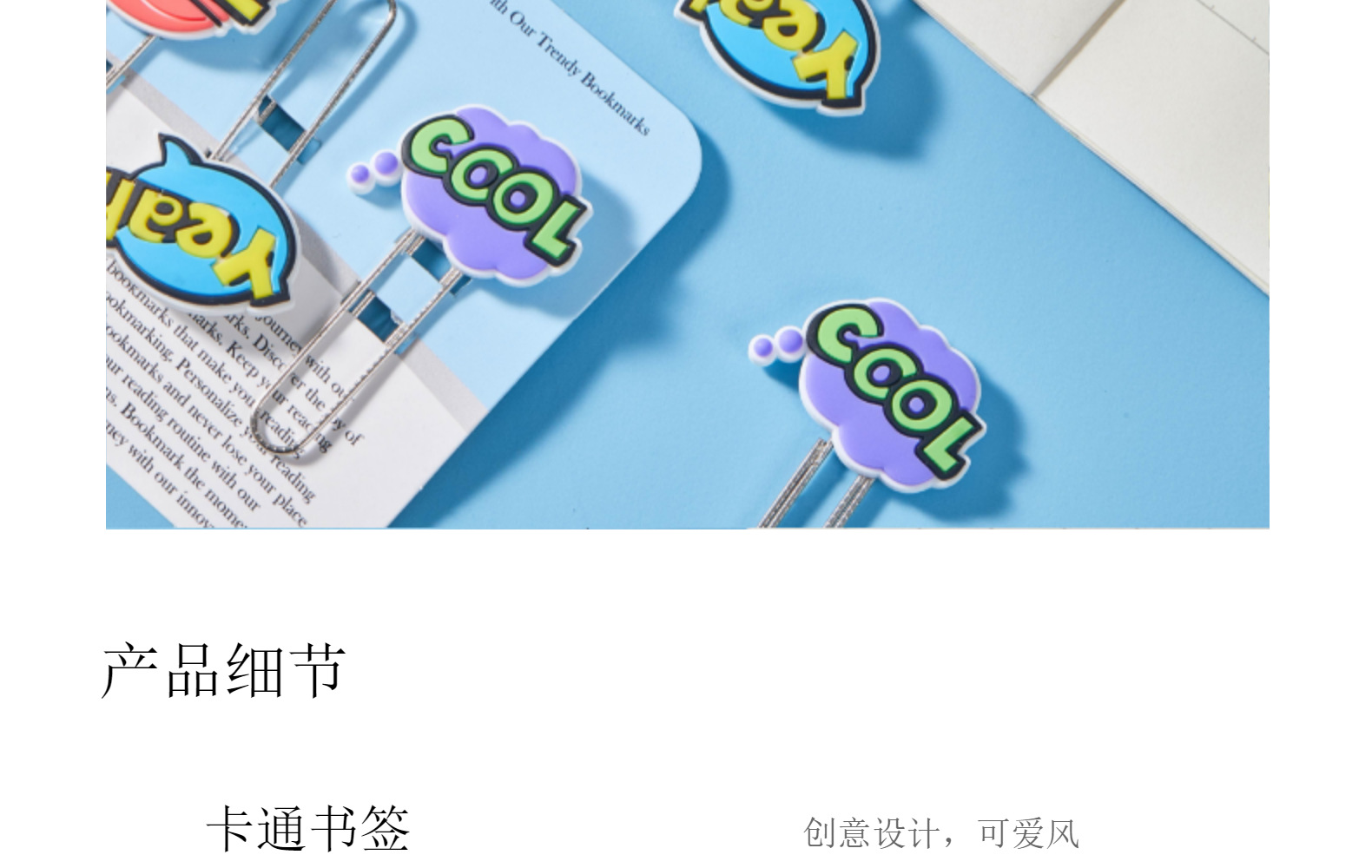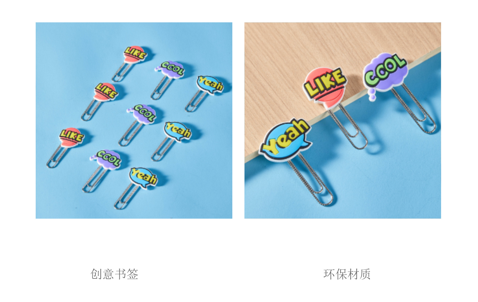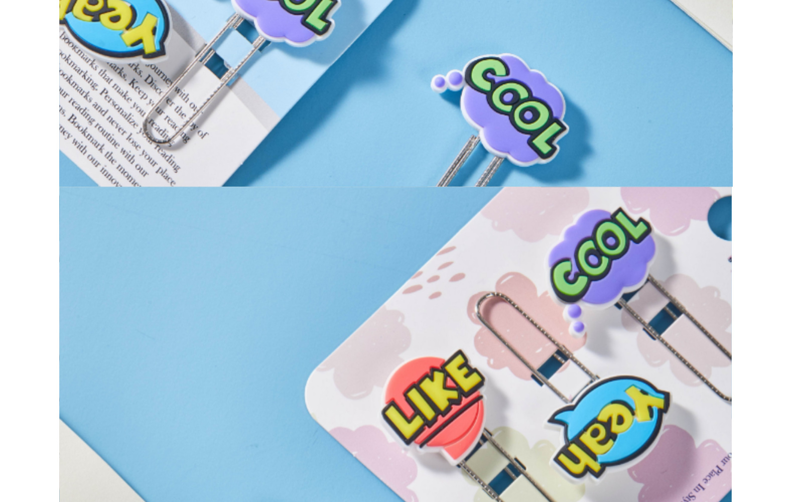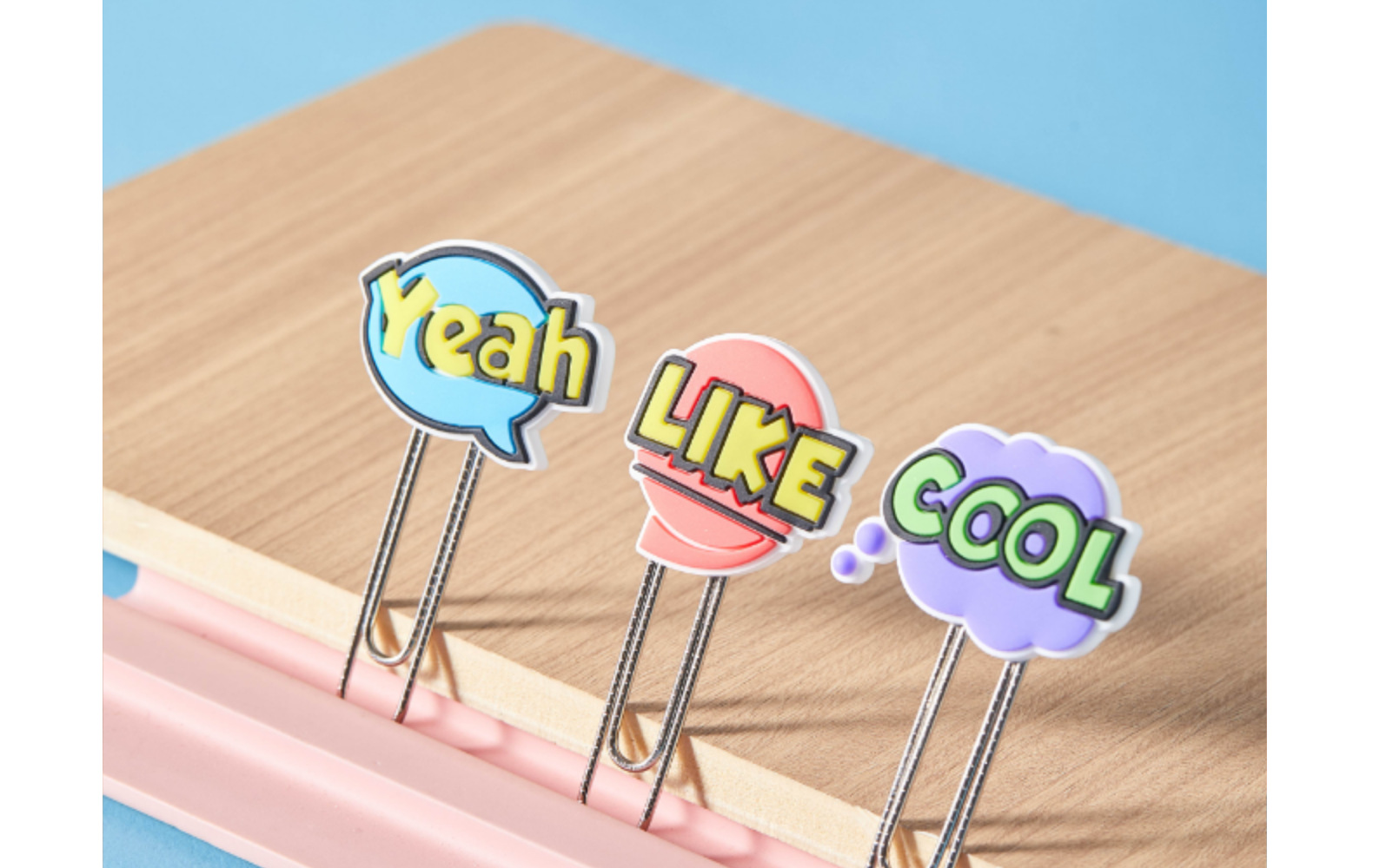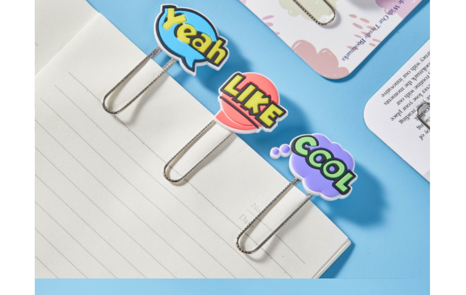 Caricaturas palabras inglesas PVC pegamento blando clips de papel de prueba de estudiantes clips de marcadores clips de oficina clip de metal
