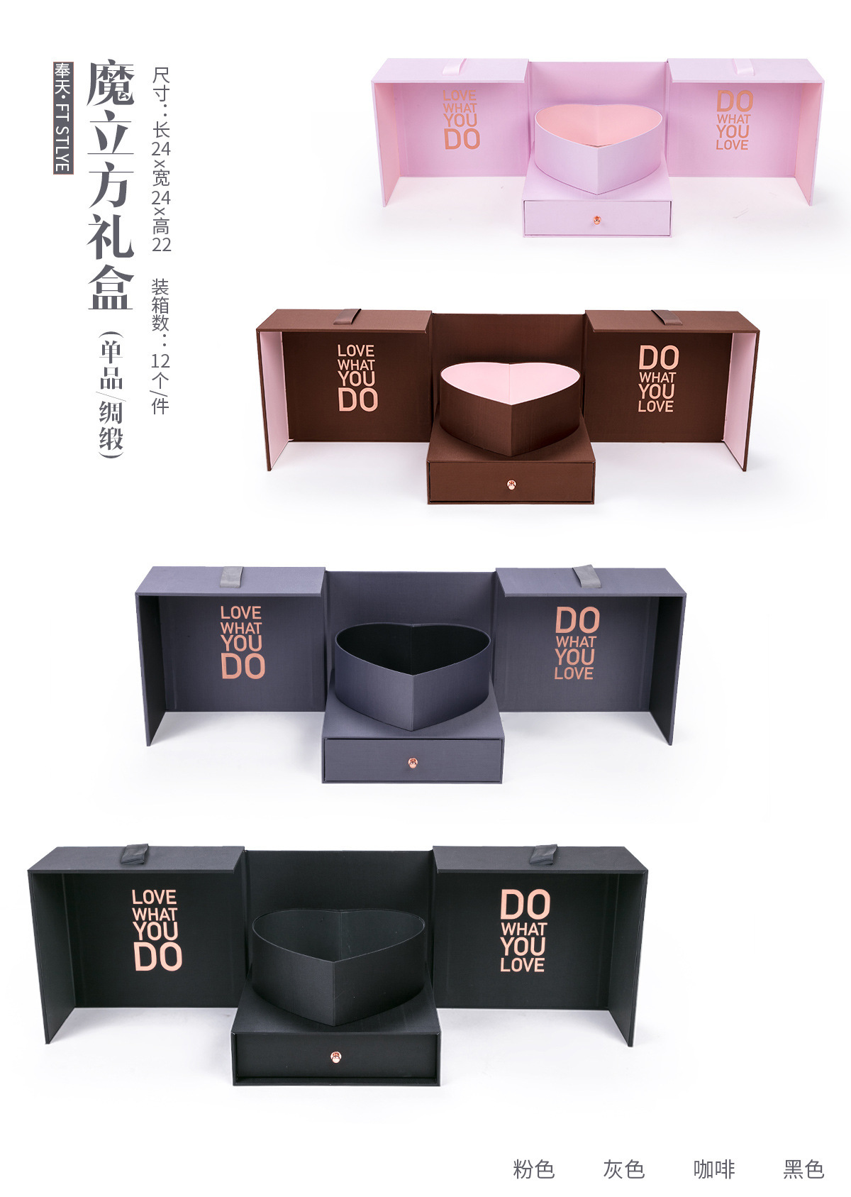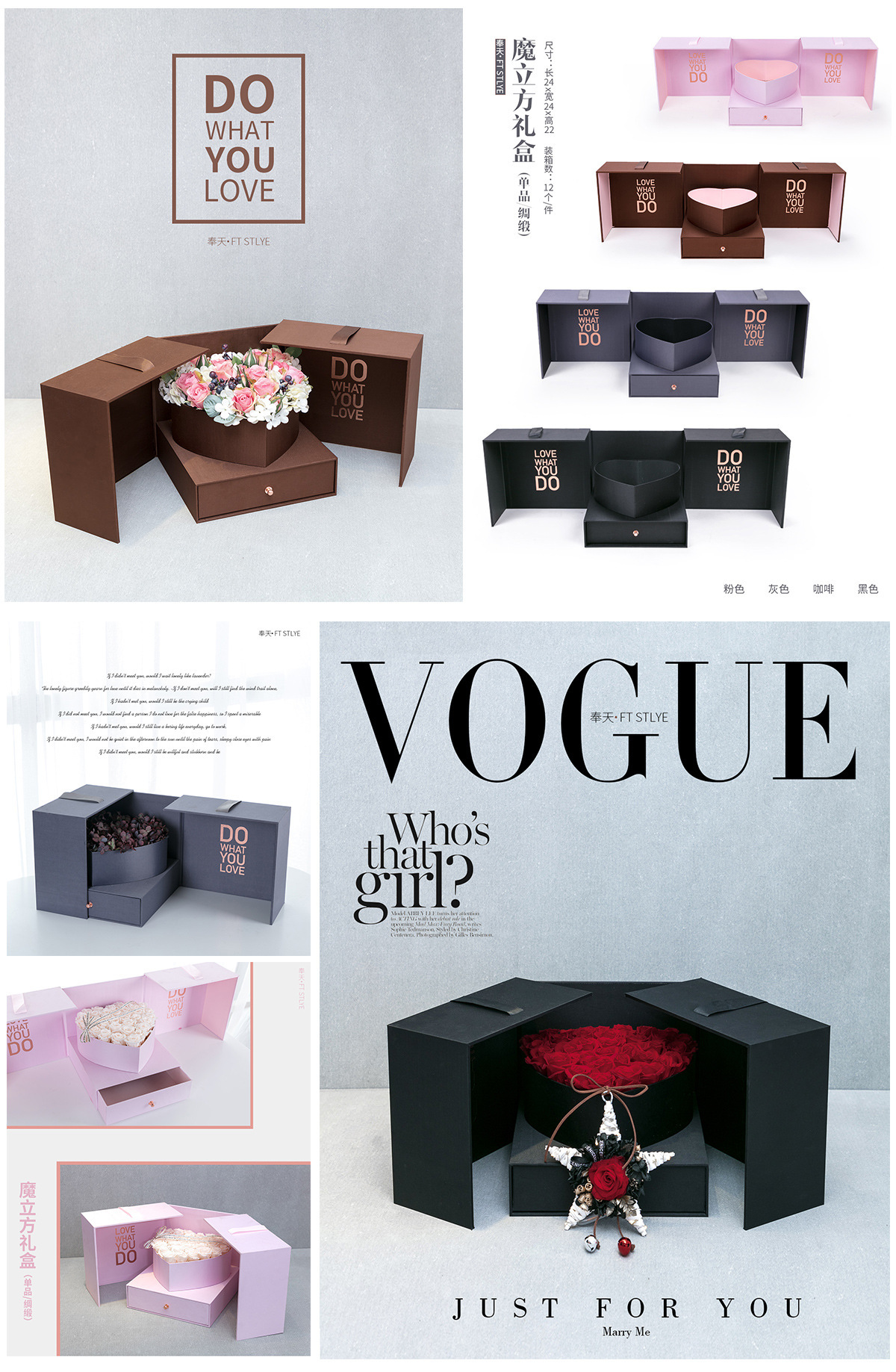 Qixi cubo mágico caja de regalo de flor rosa de gama alta caja de regalo de San Valentín caja de regalo de cajón de doble puerta