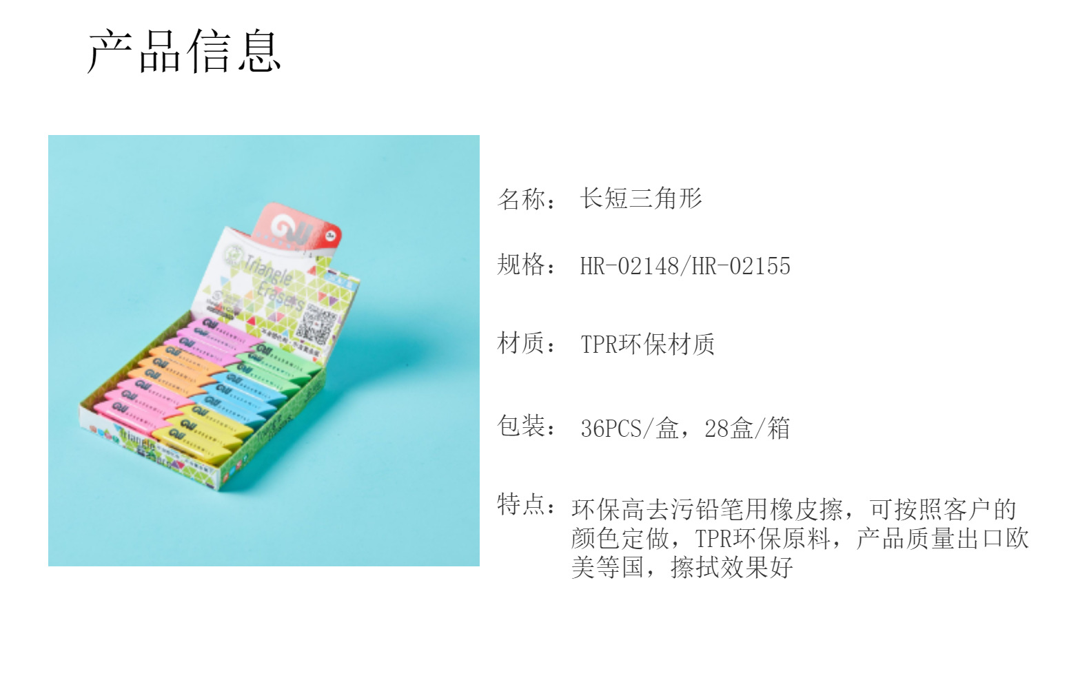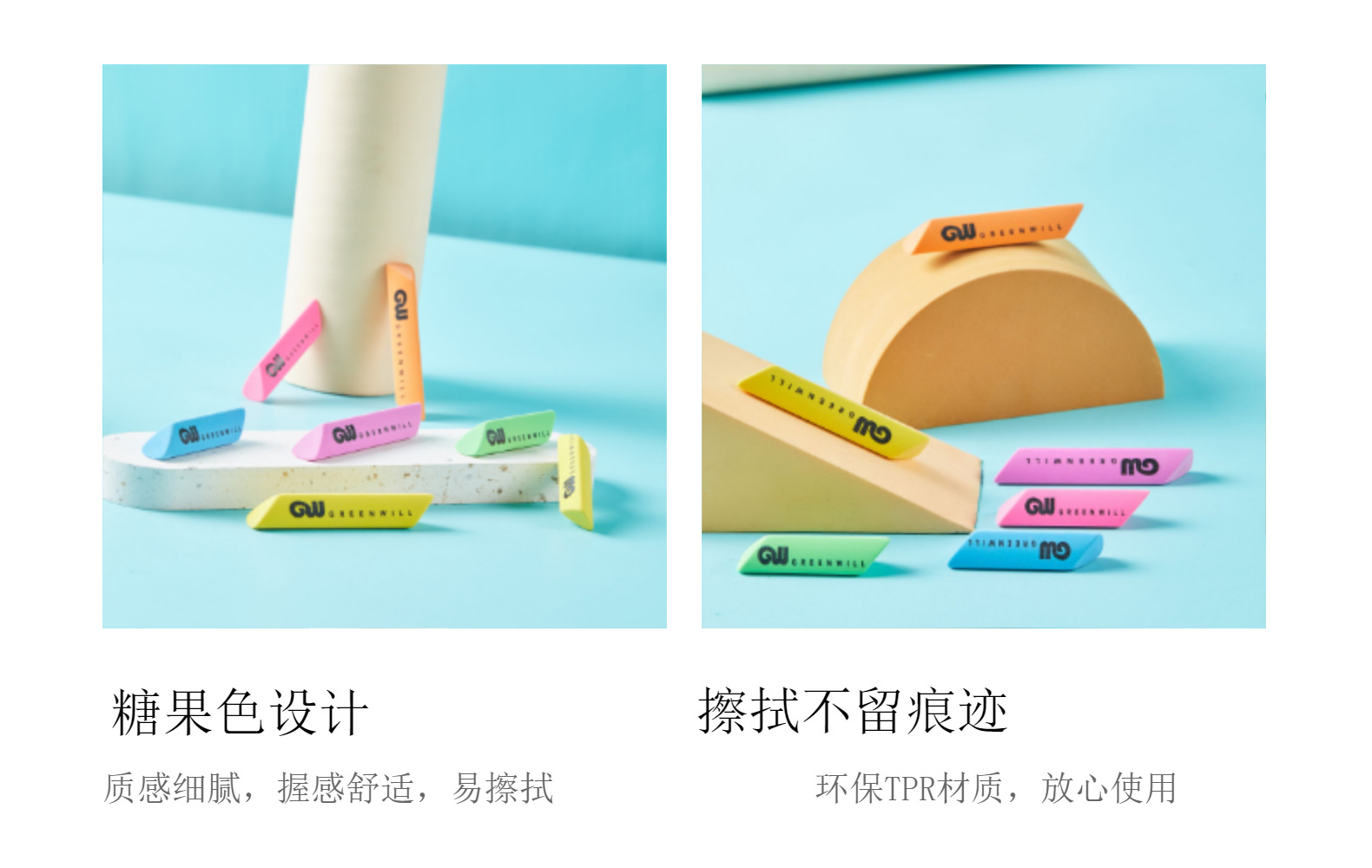 Borradores de color caramelo, productos escolares, borradores de venta al por mayor, borradores de triángulo diagonal para bocetos de arte