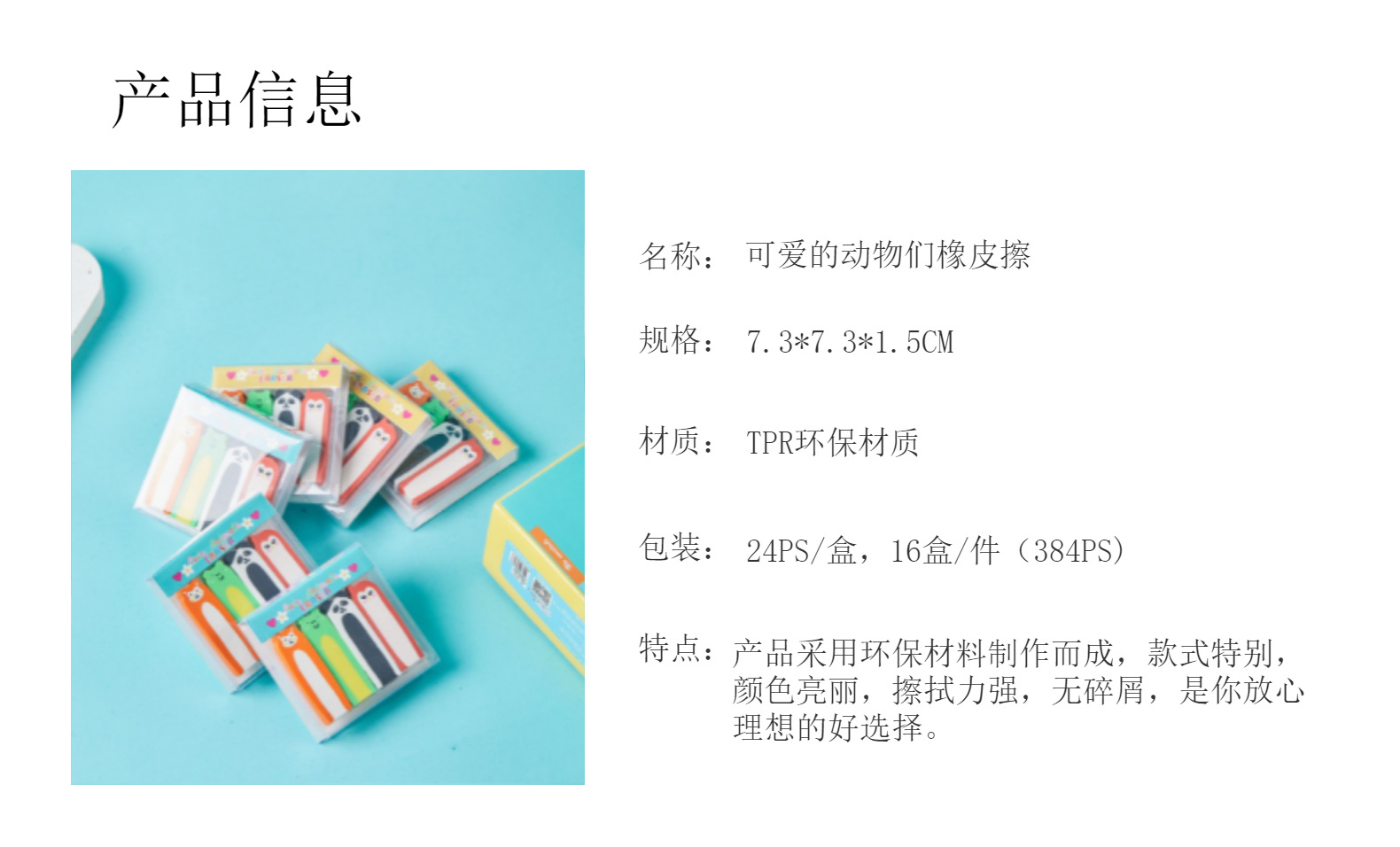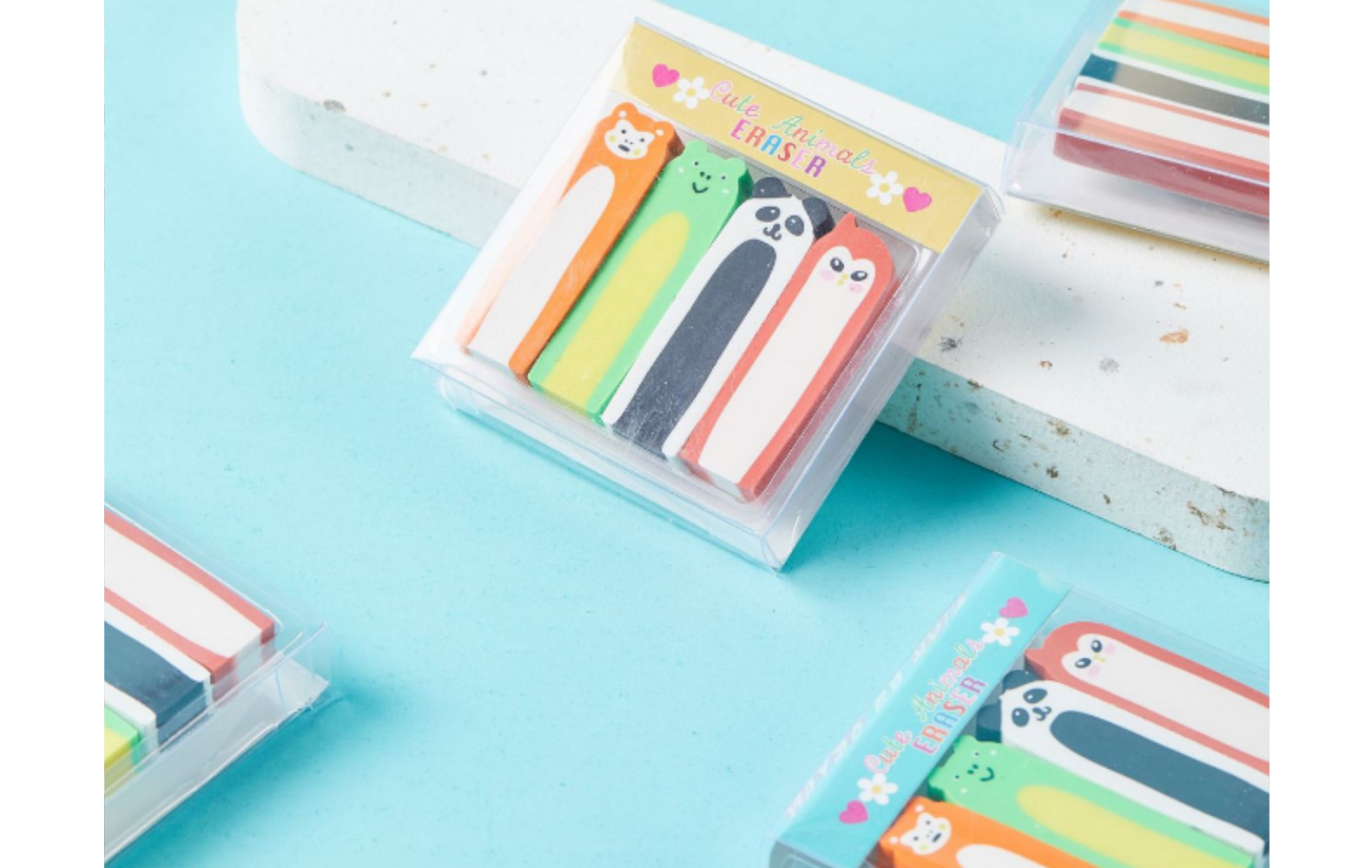 Cute animal conjunto de borracha dibujos animados creativos papelería estudiantes premios borracha mayorista