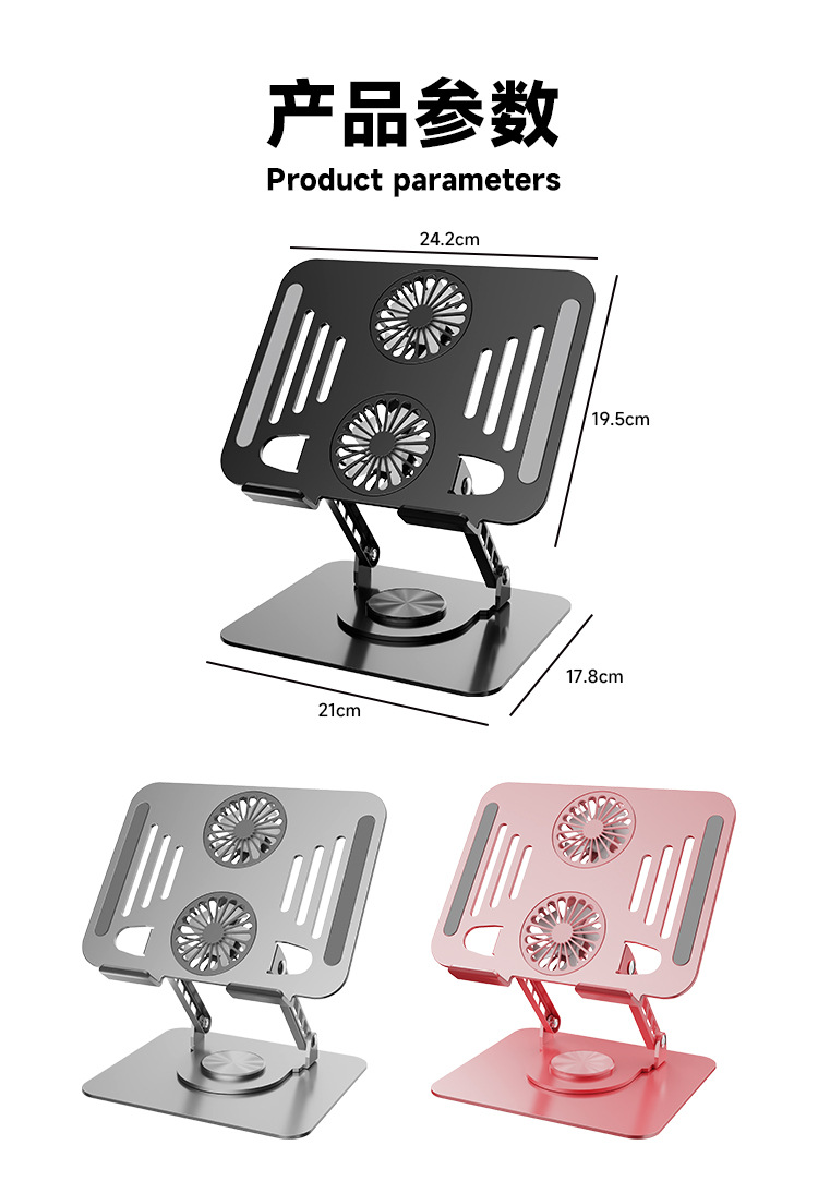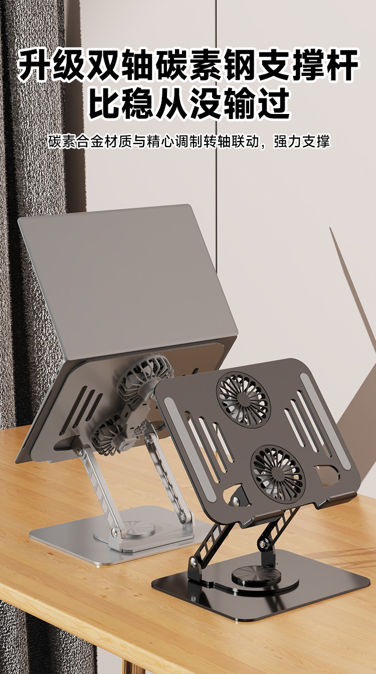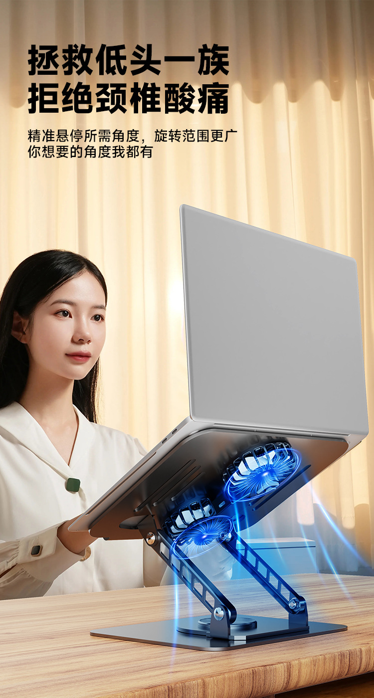 360 grados de rotación metal portátil soporte de disipación de calor con ventilador de escritorio soporte plano elevar artefacto