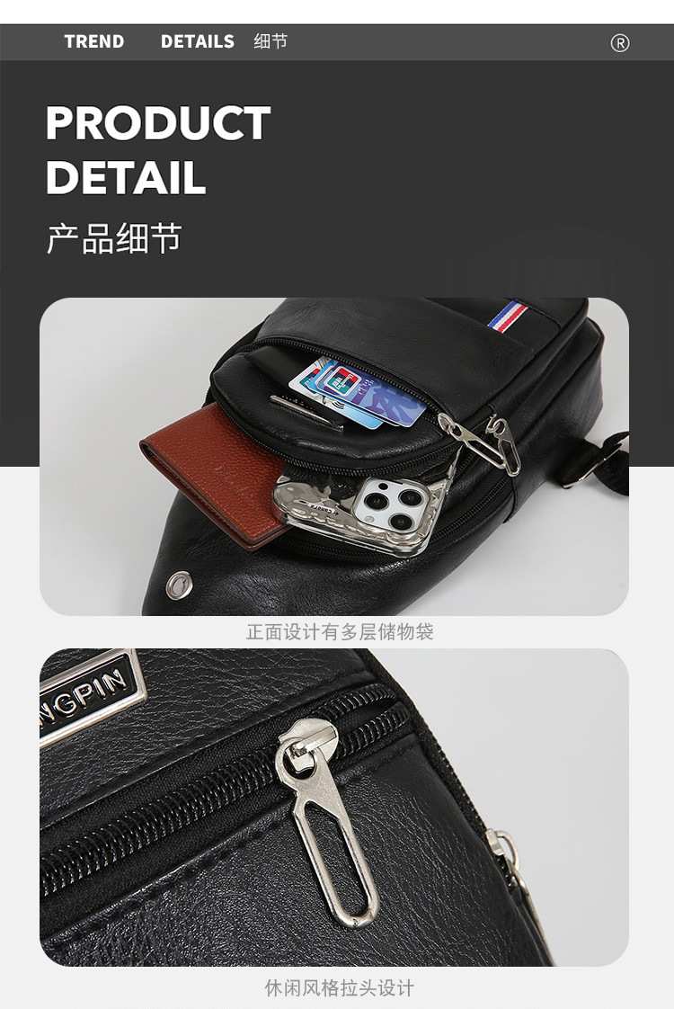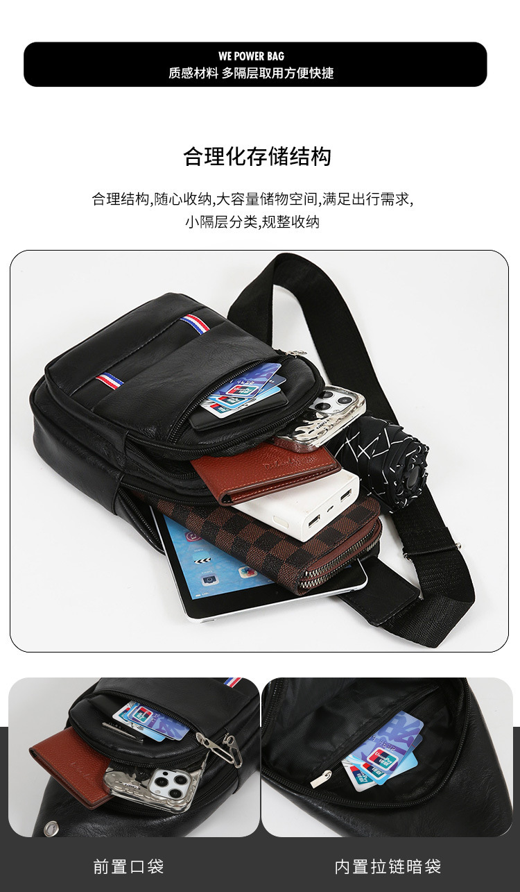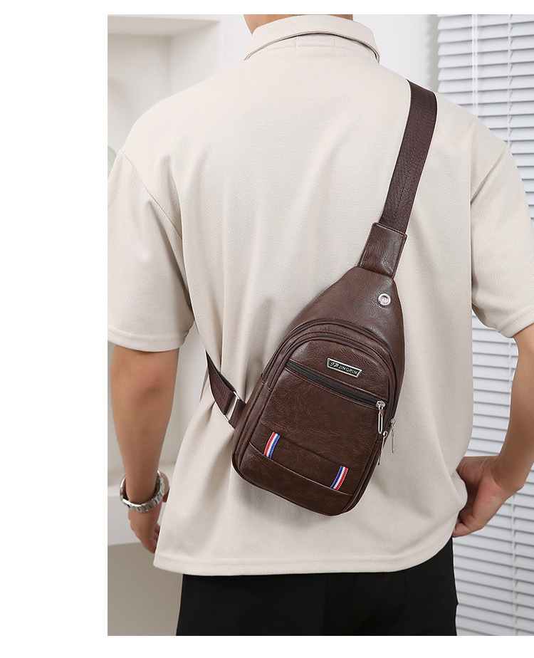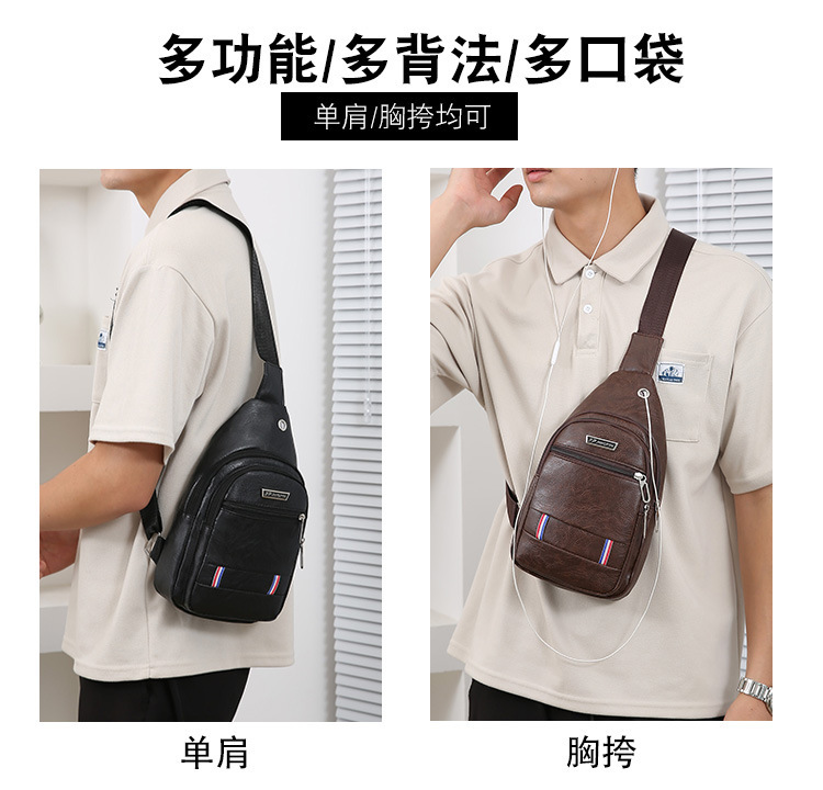 Nueva moda de hombre PU bolso de pecho de cuero suave simple bolso de hombro bolso de mochila de negocios casuales bolso de pecho de hombre de bicicleta