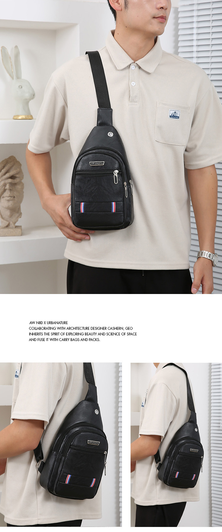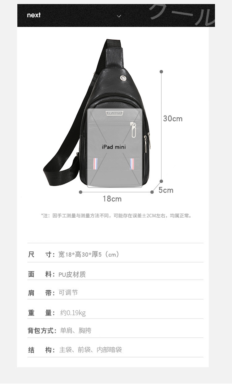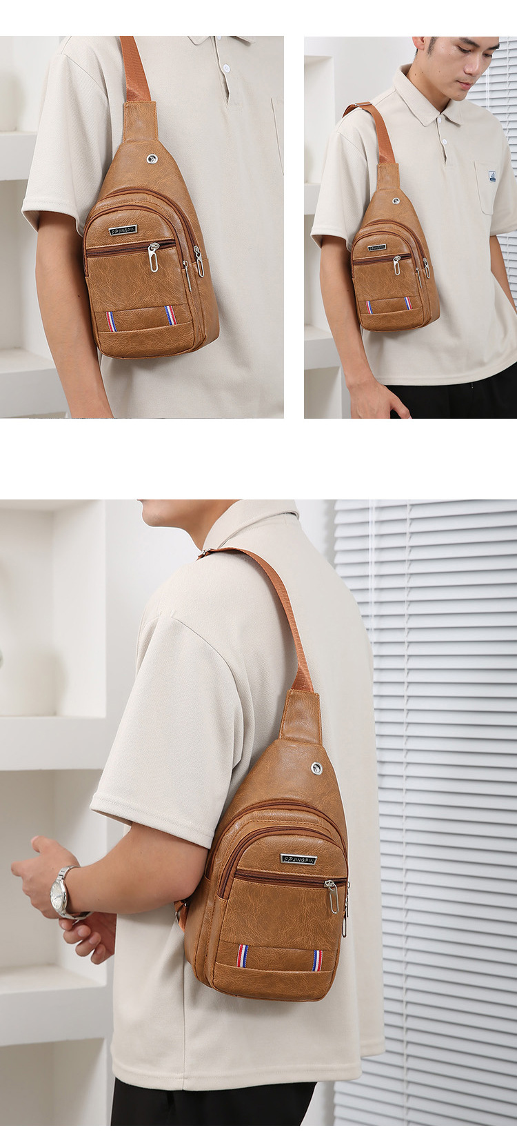 Nueva moda de hombre PU bolso de pecho de cuero suave simple bolso de hombro bolso de mochila de negocios casuales bolso de pecho de hombre de bicicleta